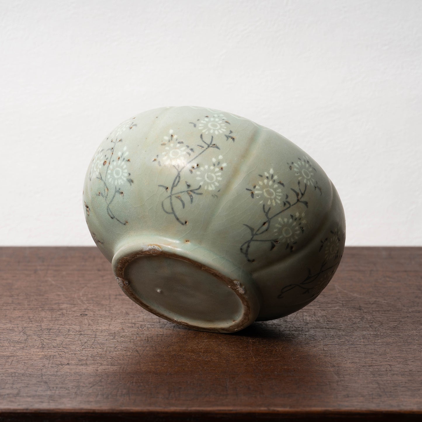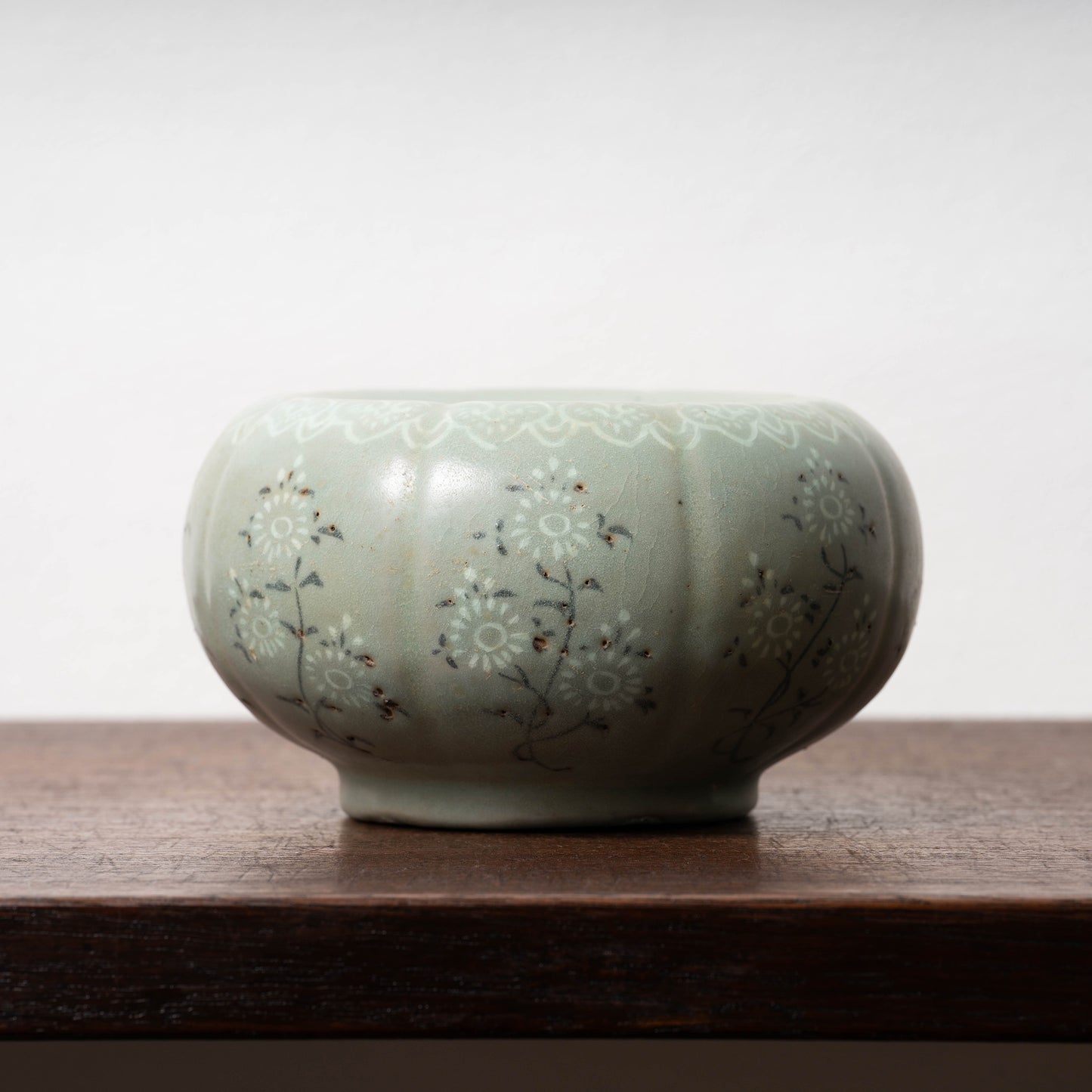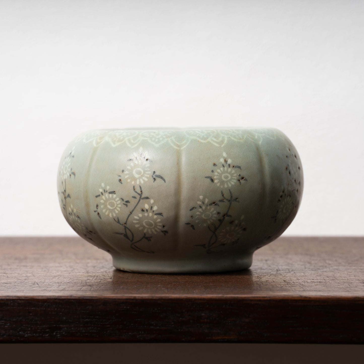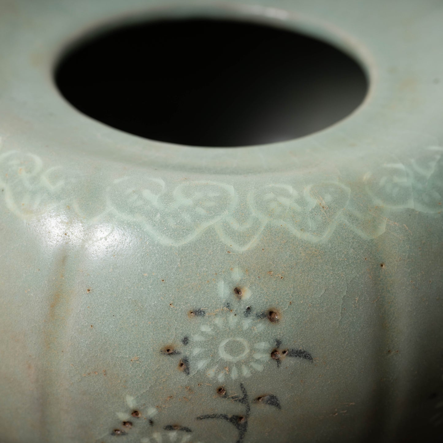 Goryeo Dynasty Celadon Melon-shaped Jar with Inlaid chrysanthemum Design