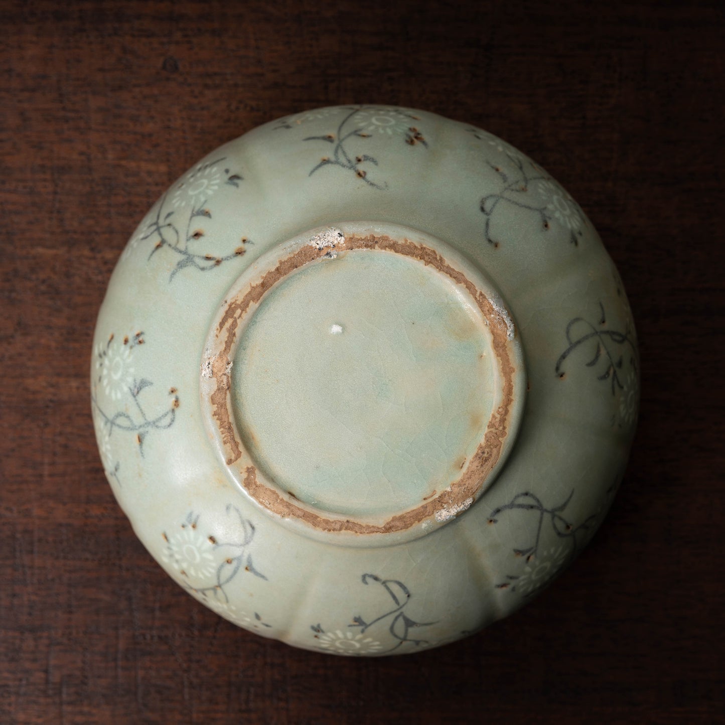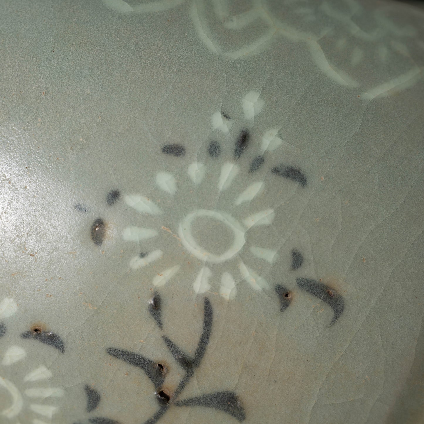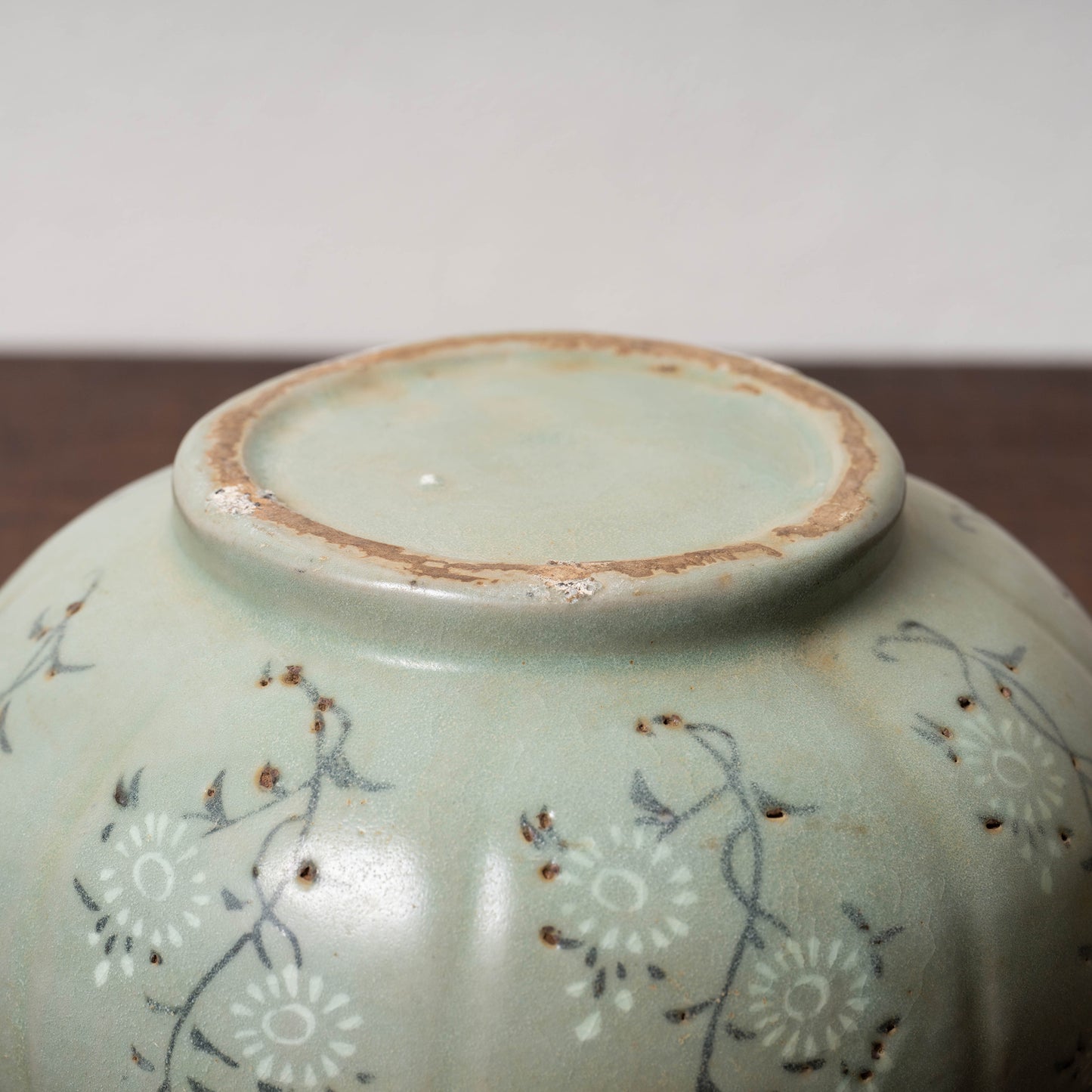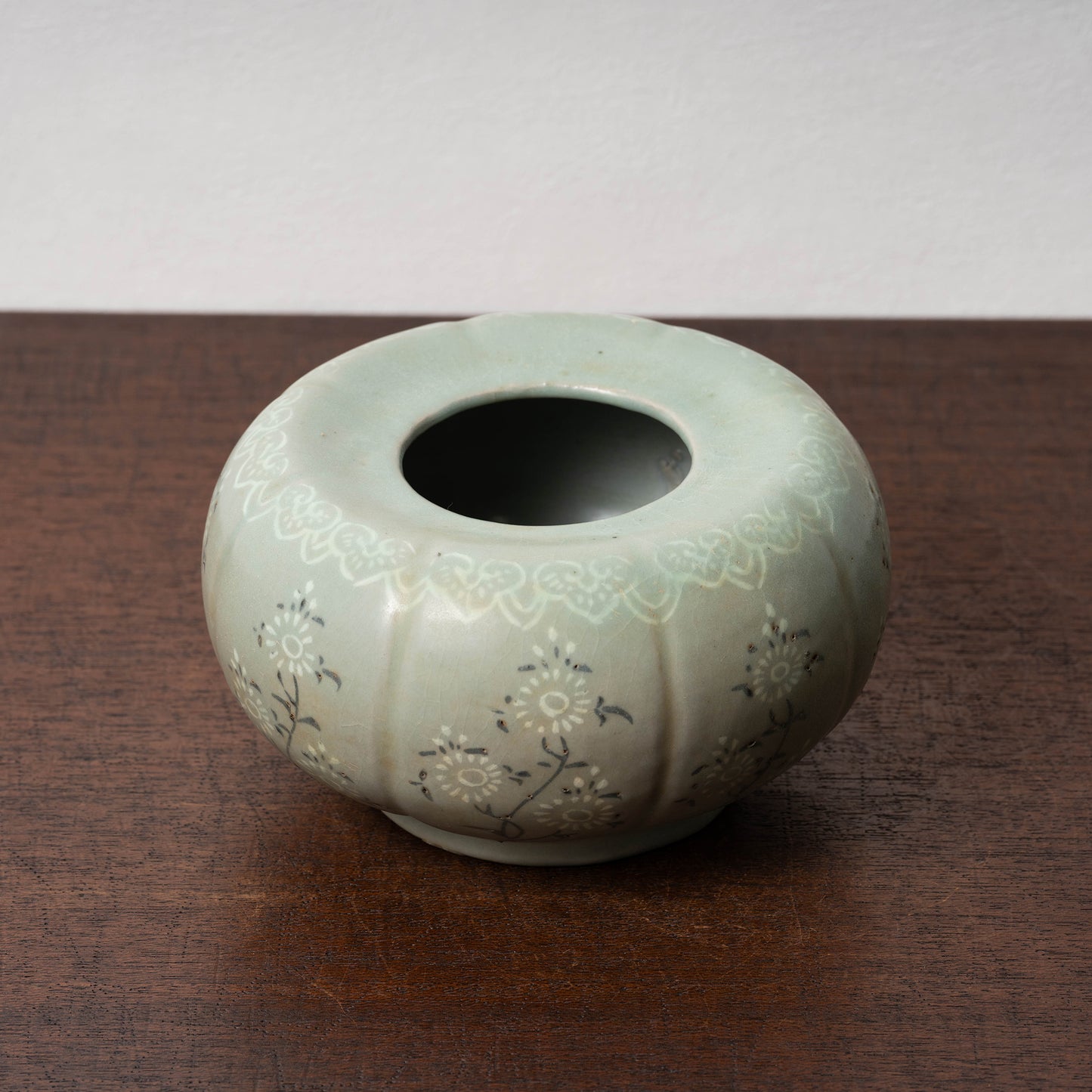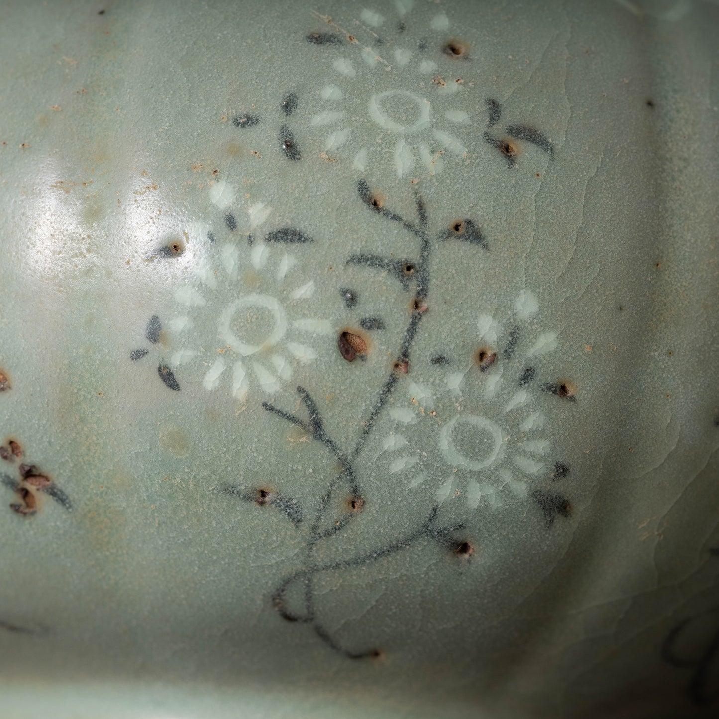 Goryeo Dynasty Celadon Melon-shaped Jar with Inlaid chrysanthemum Design