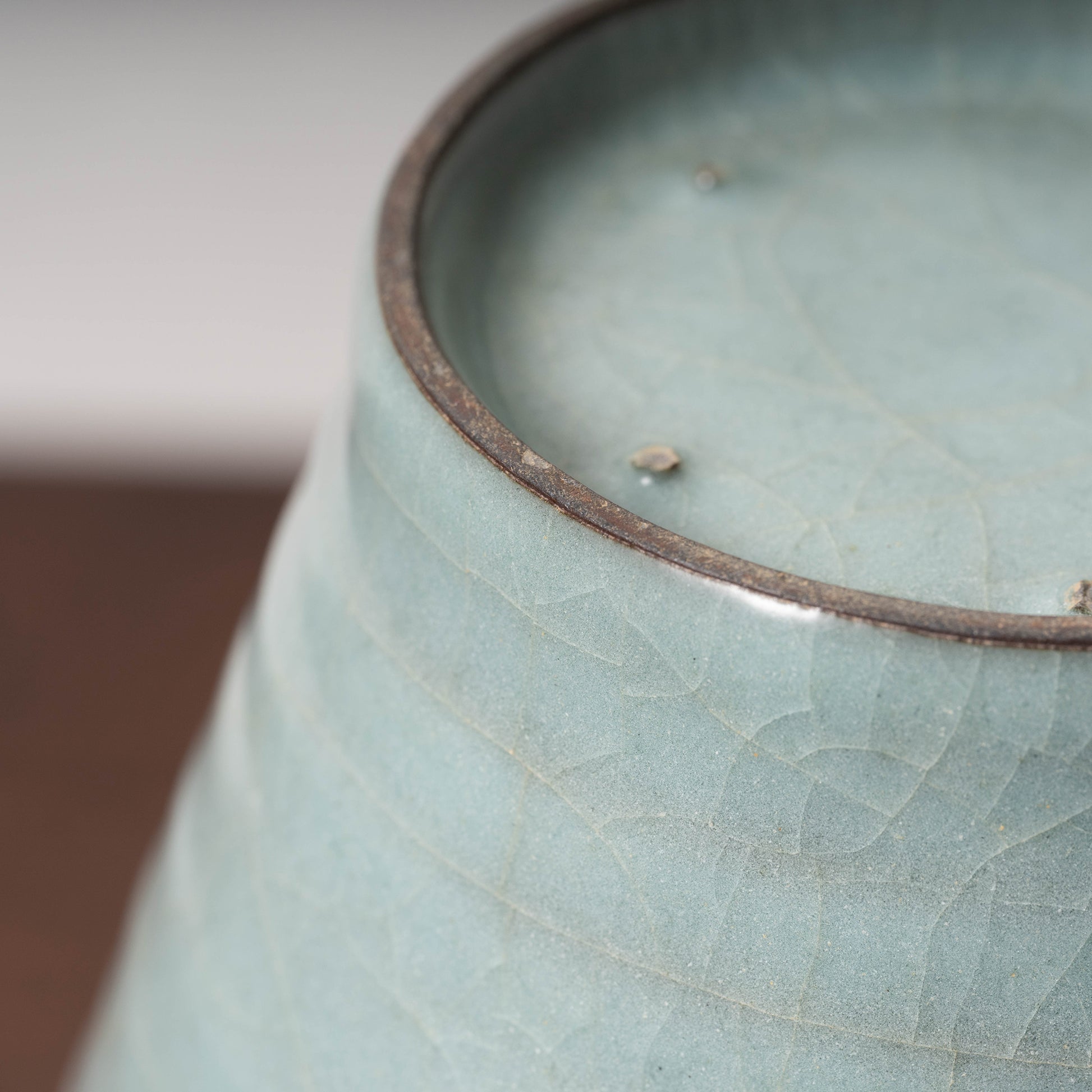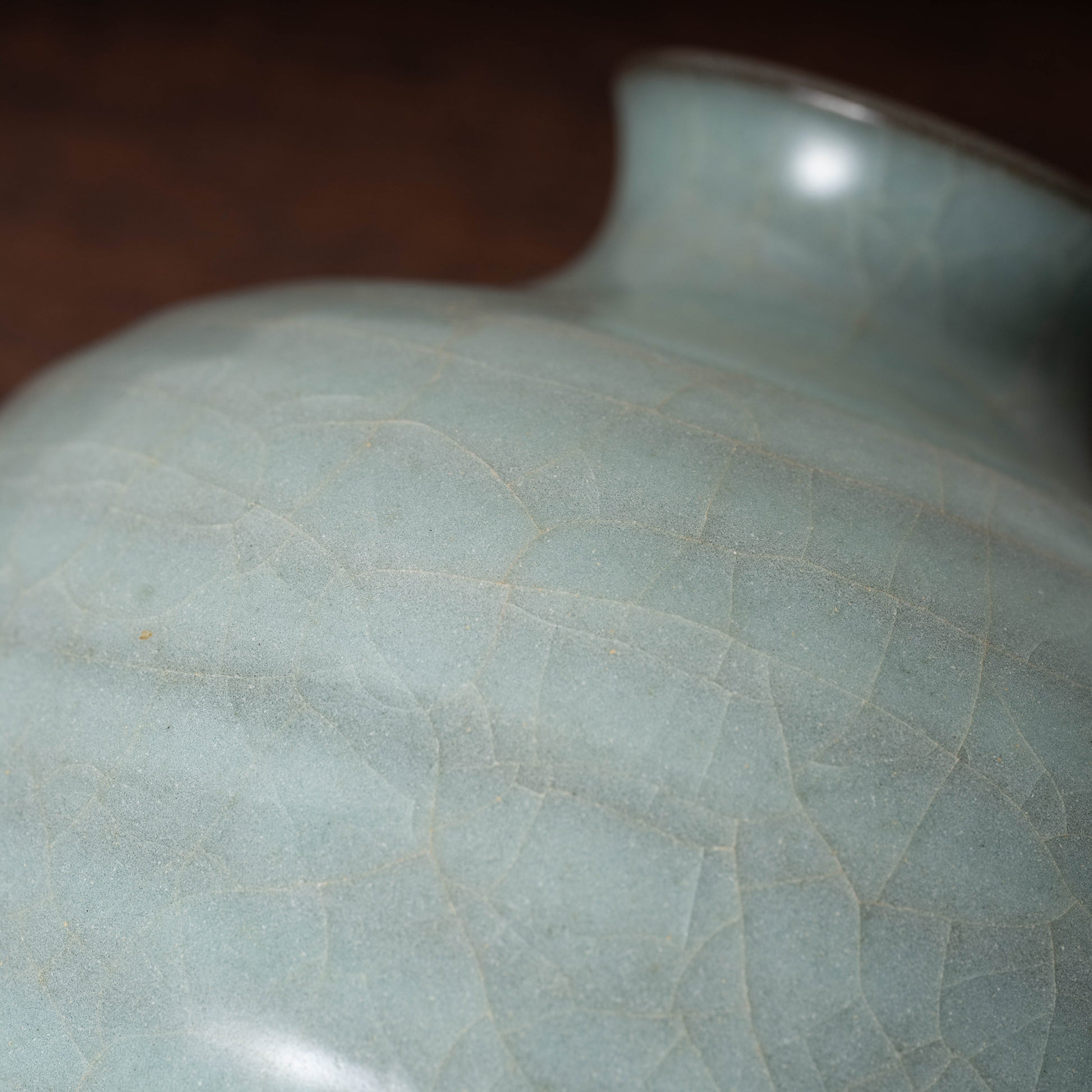 This celadon bottle was fired at an Guan ware during the Southern Song dynasty.