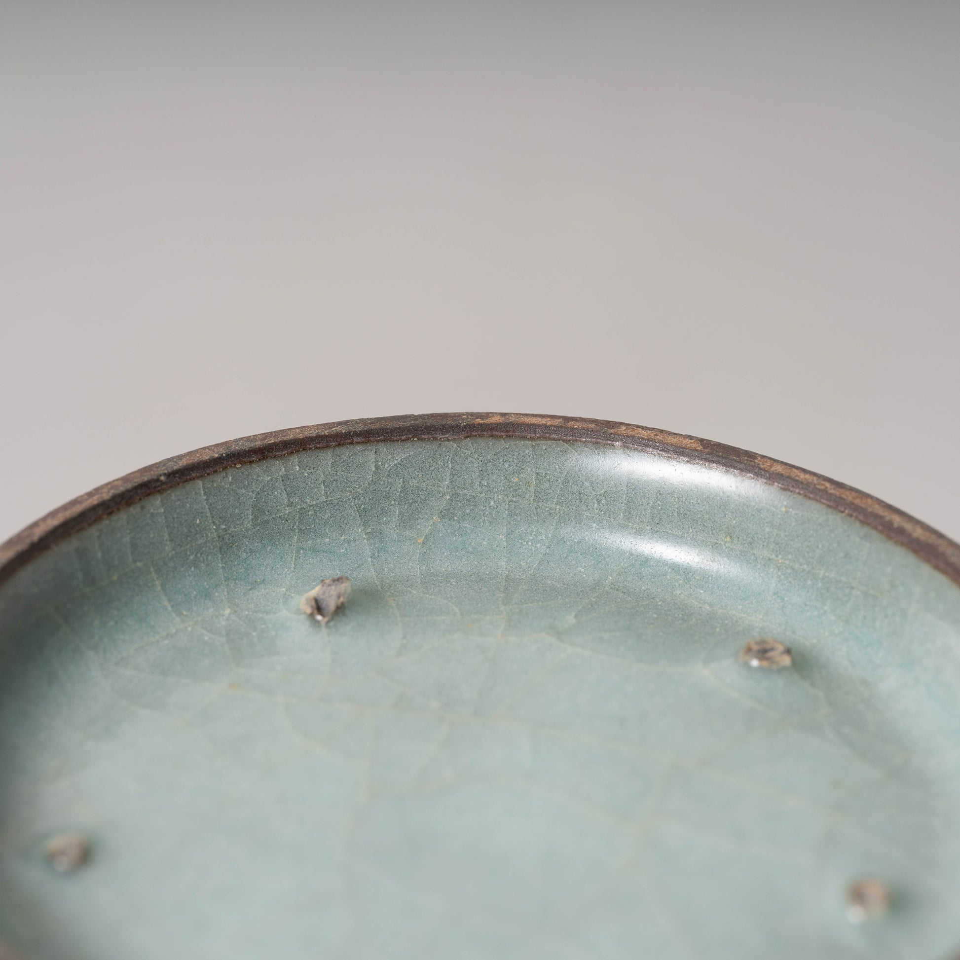 The foot is uniformly carved, exposing the black clay typical of Southern Song Guan ware.