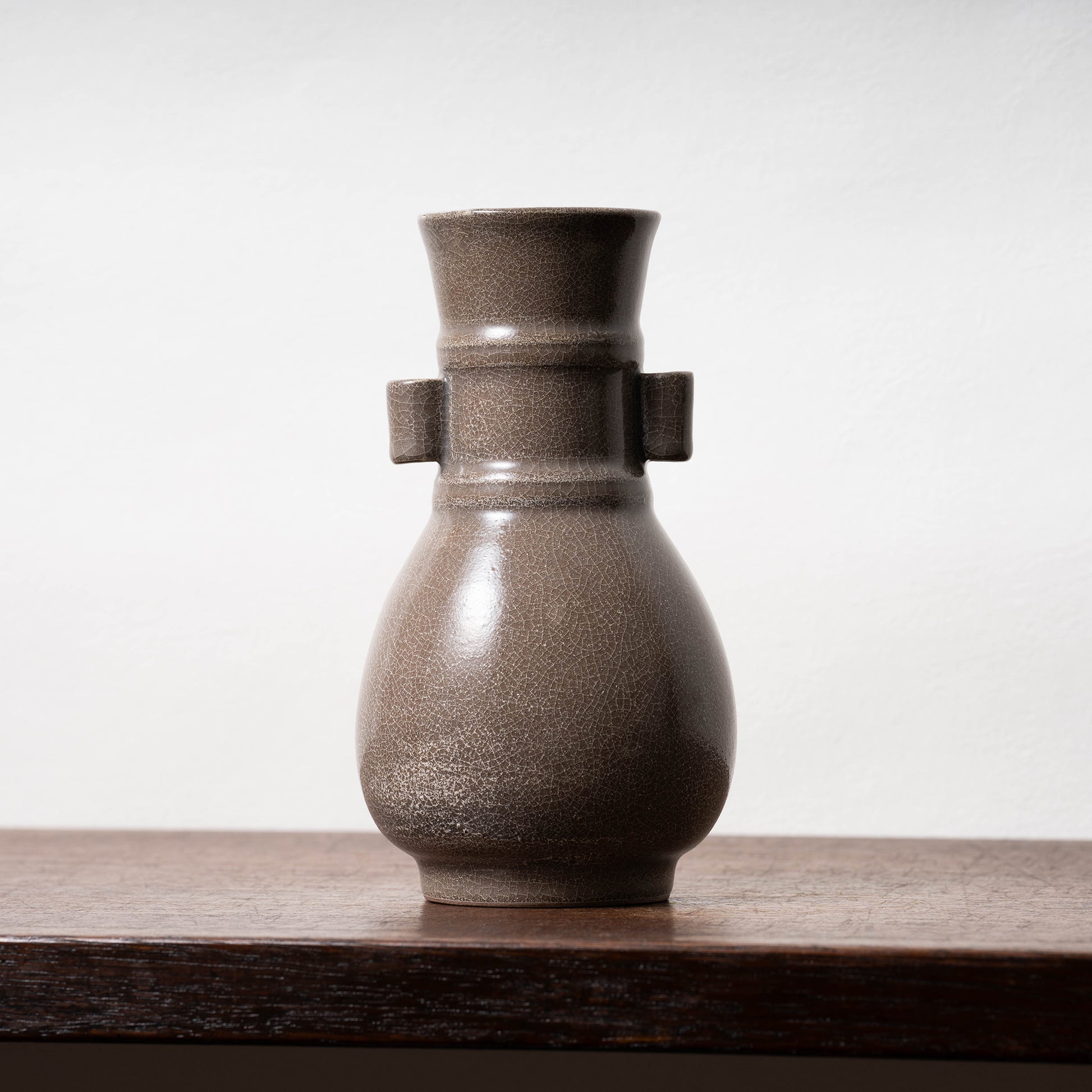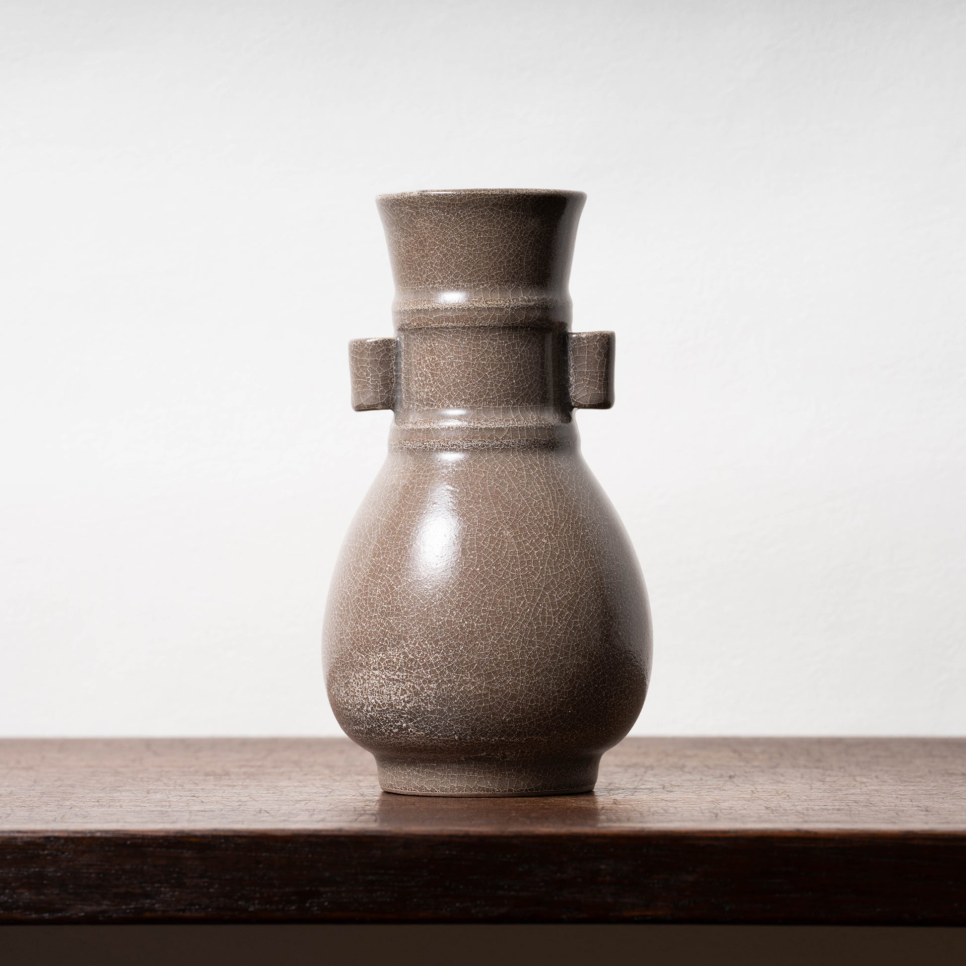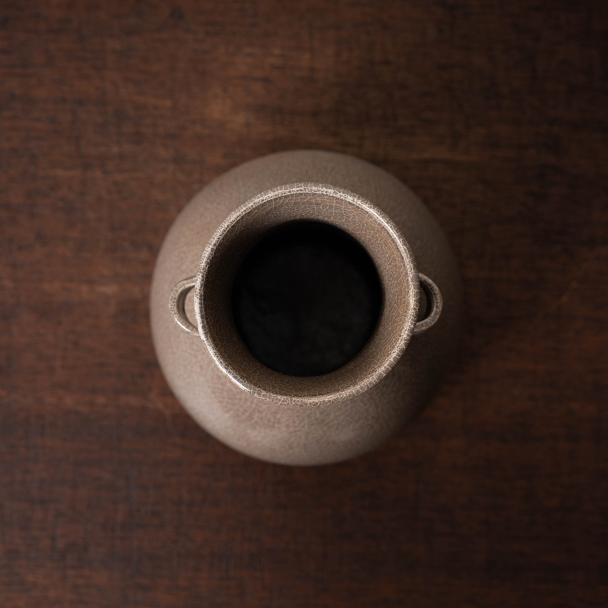 Southern Song Dynasty Ge ware Rice-colored Celadon Bottle with Two Cylinder Ears
