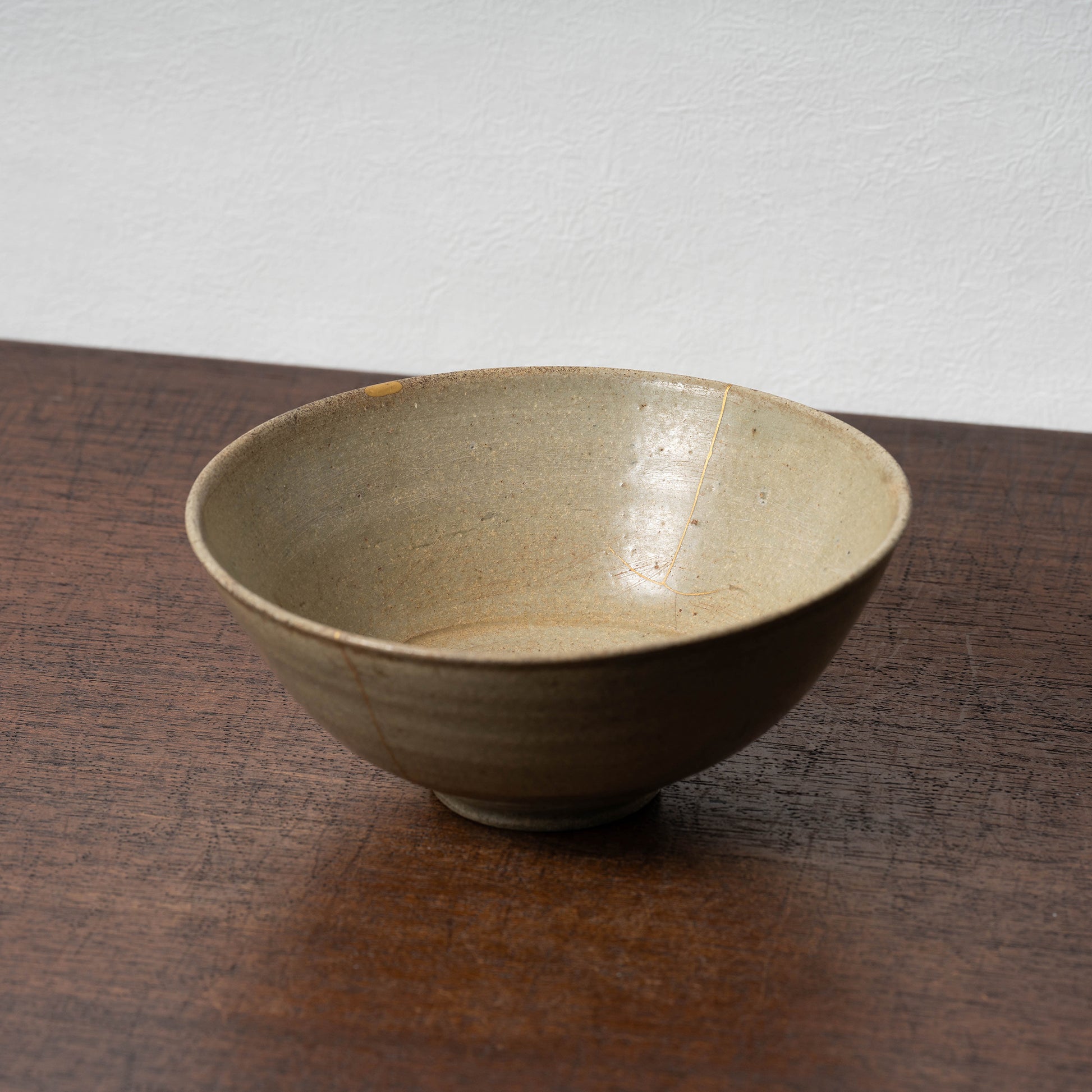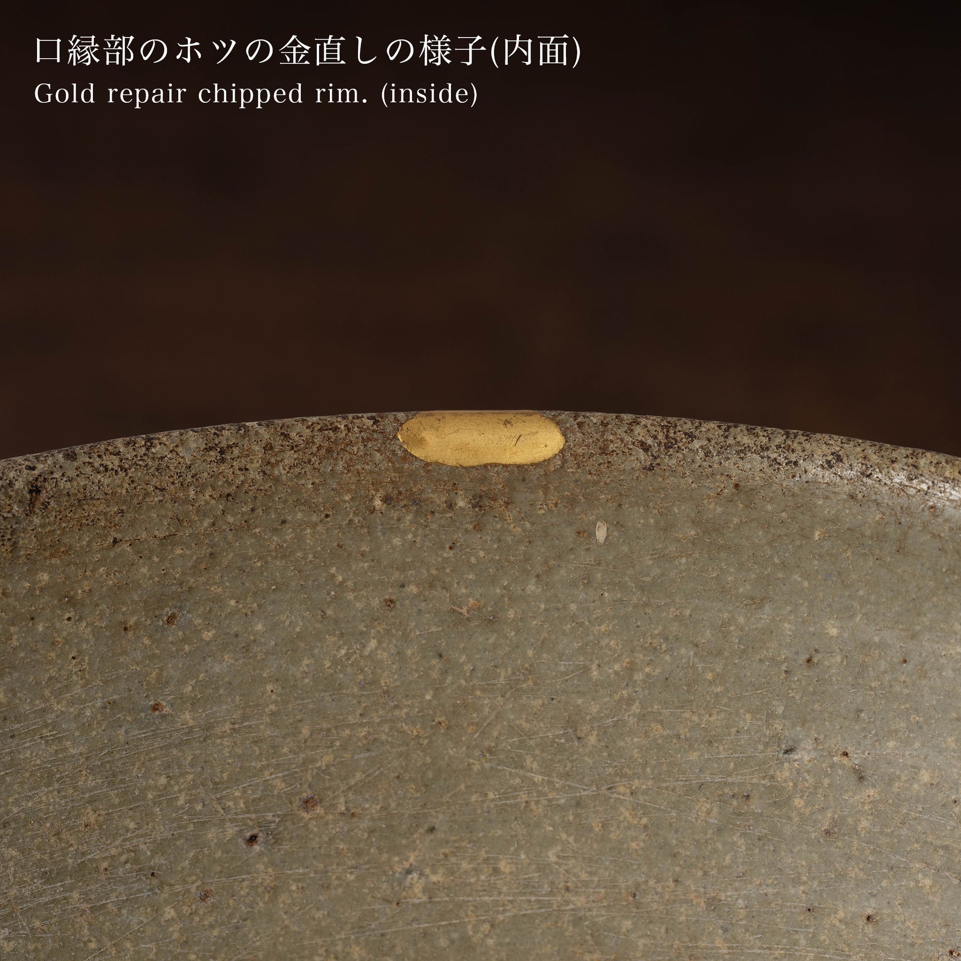 口縁の1箇所ホツの金直しと合わせ、シンプルな器面に景色を生み出します。