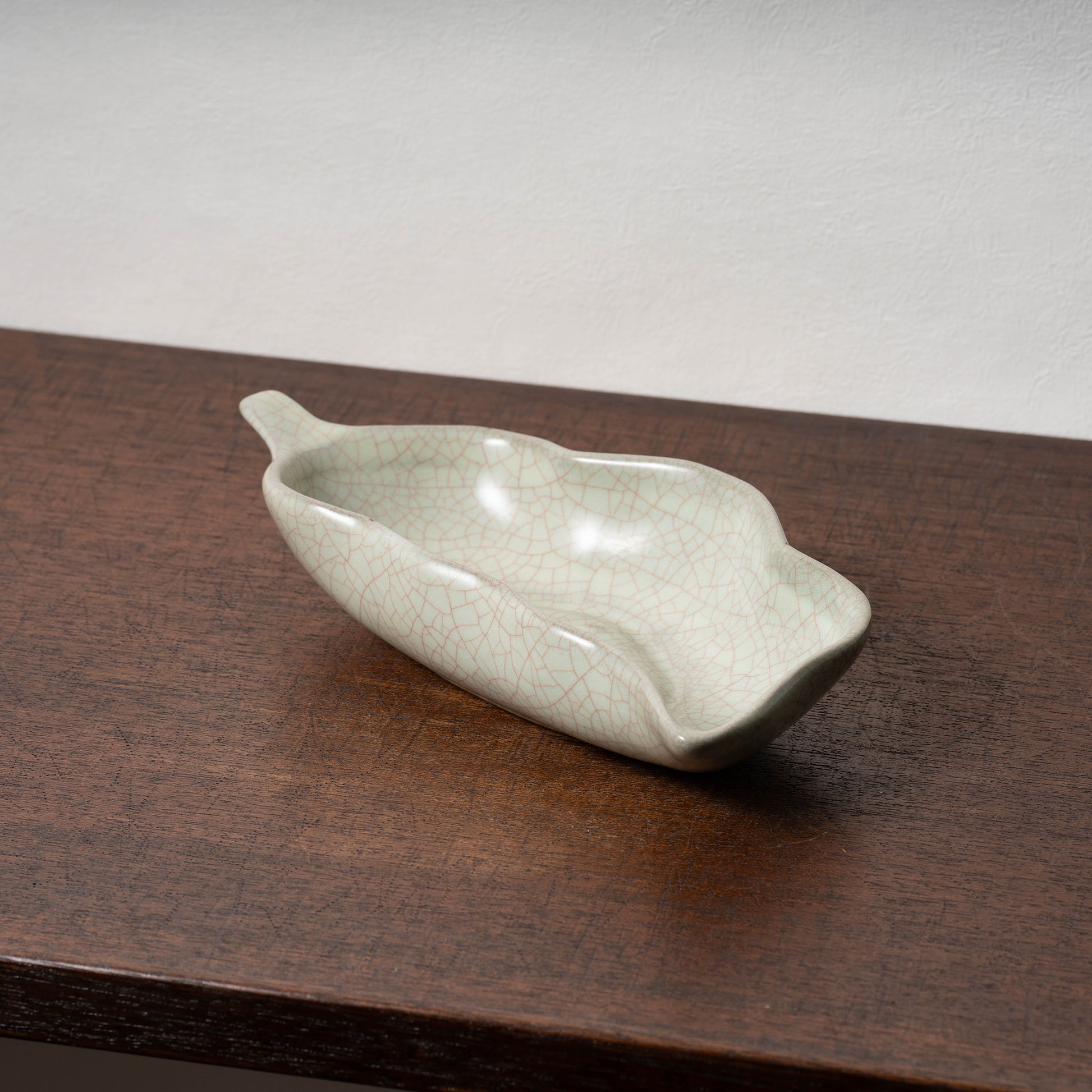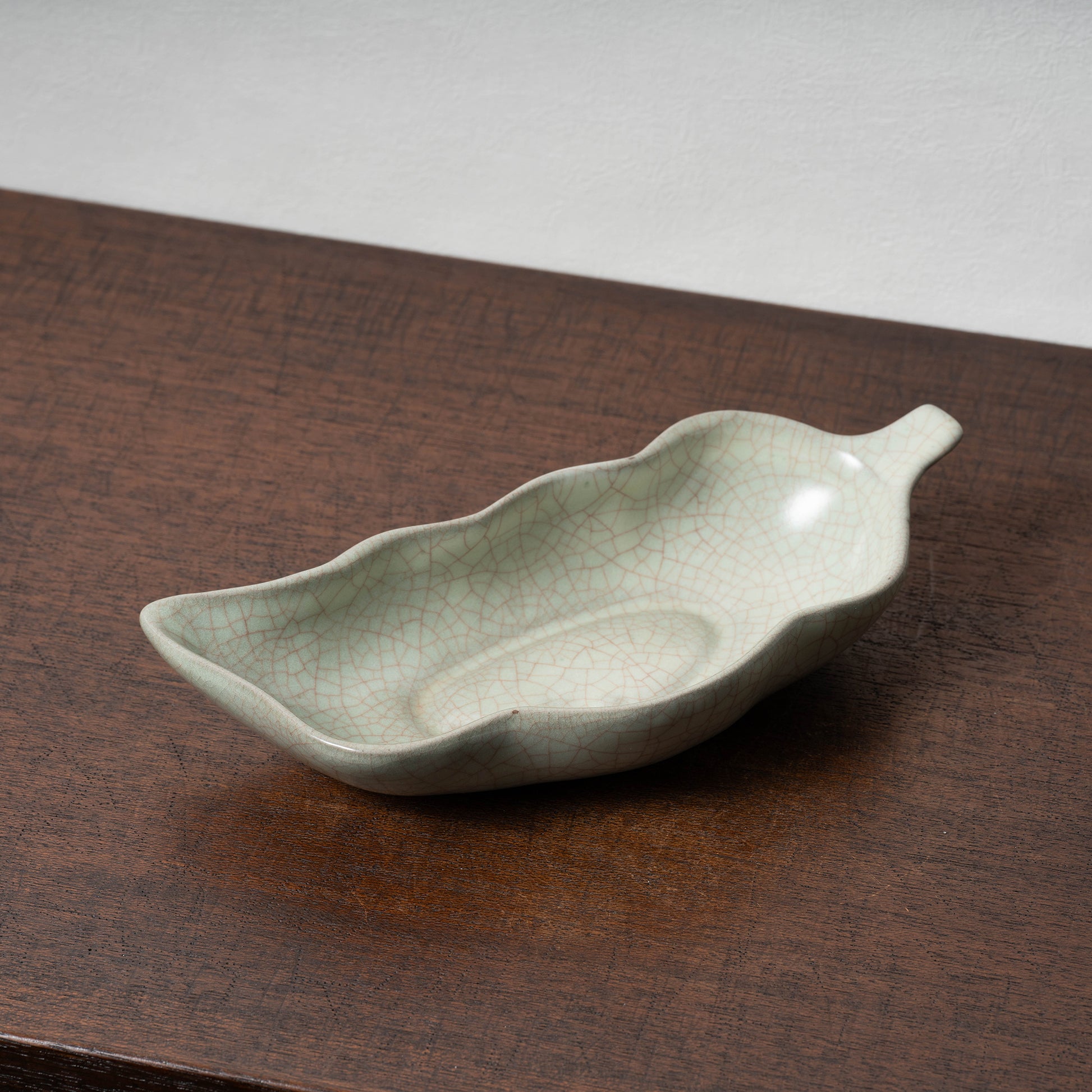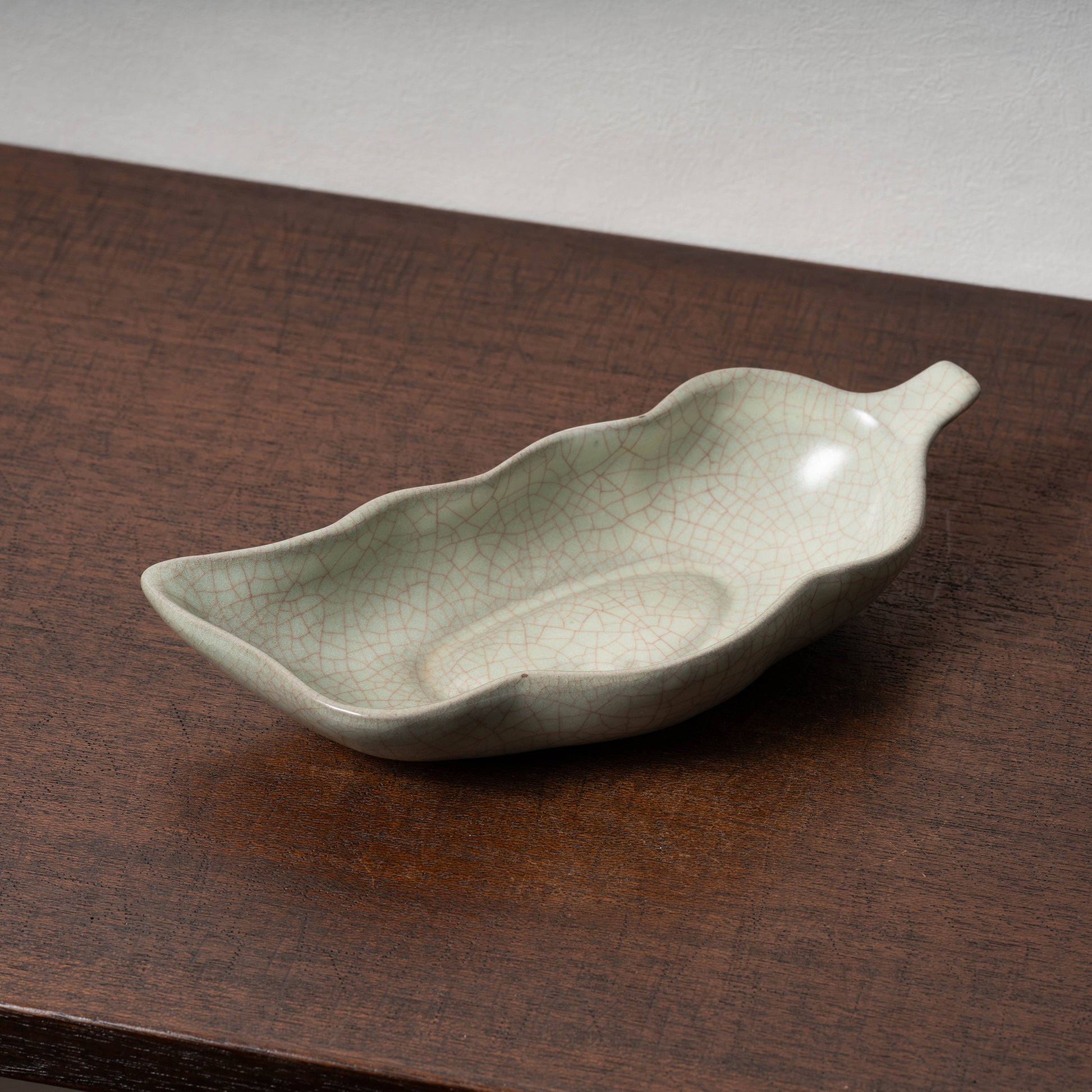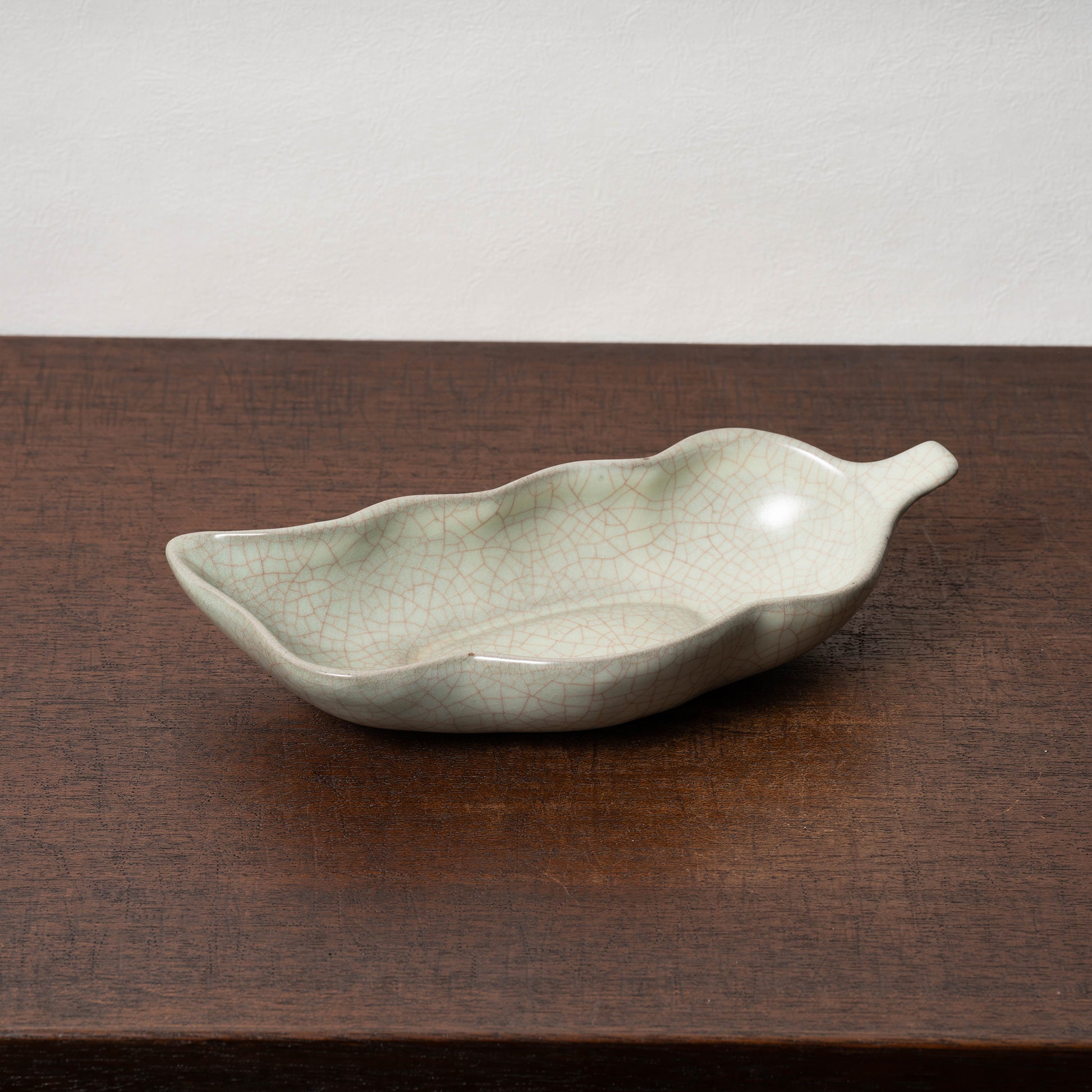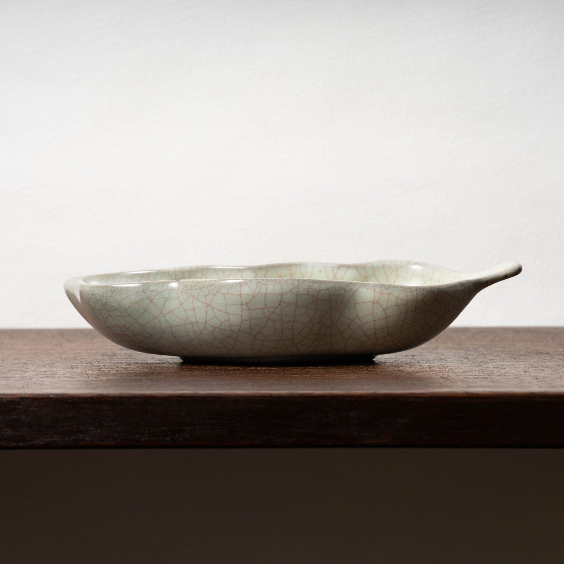 全体には宋代哥窯に倣った哥釉掛かり、柔らかな淡い緑色の釉調です。
