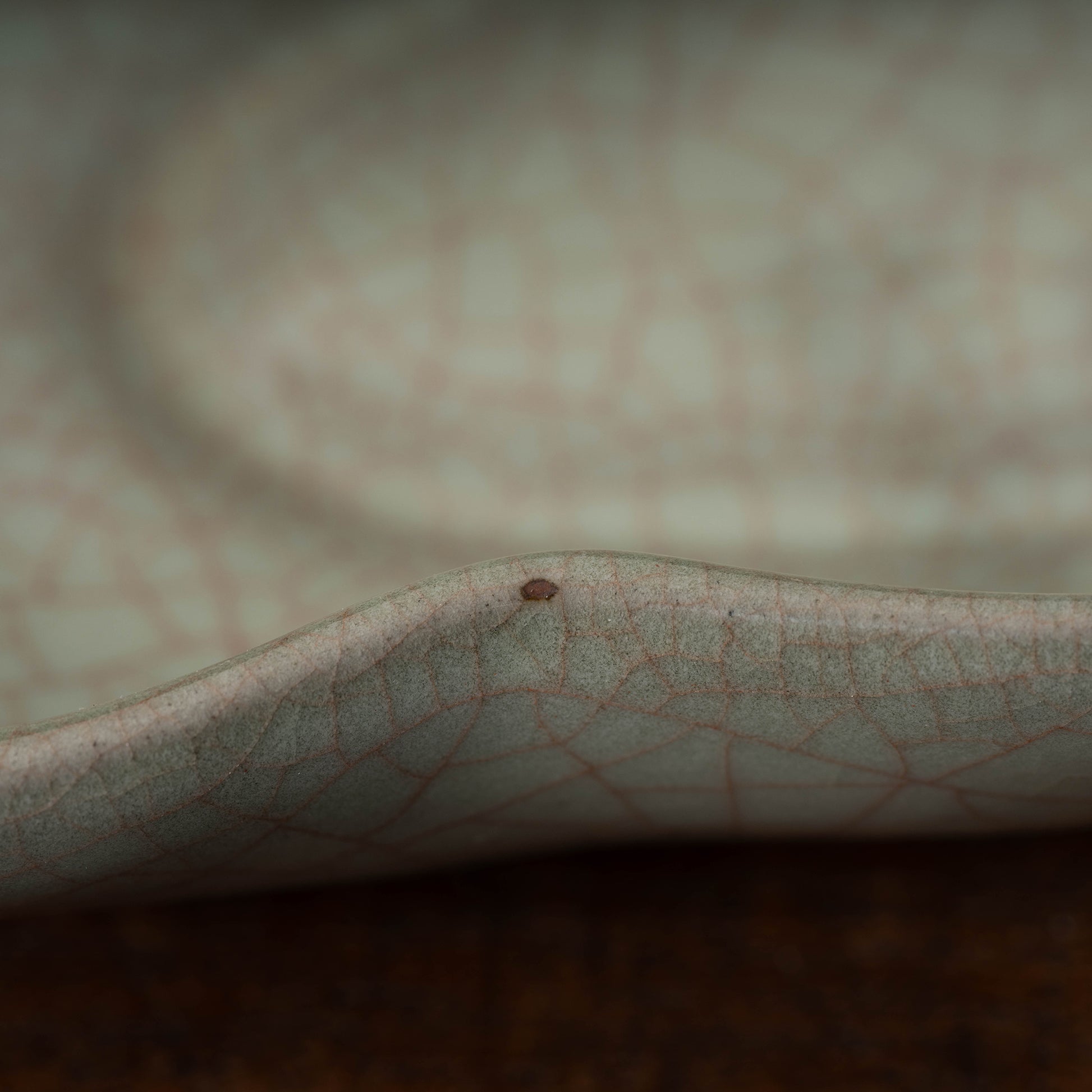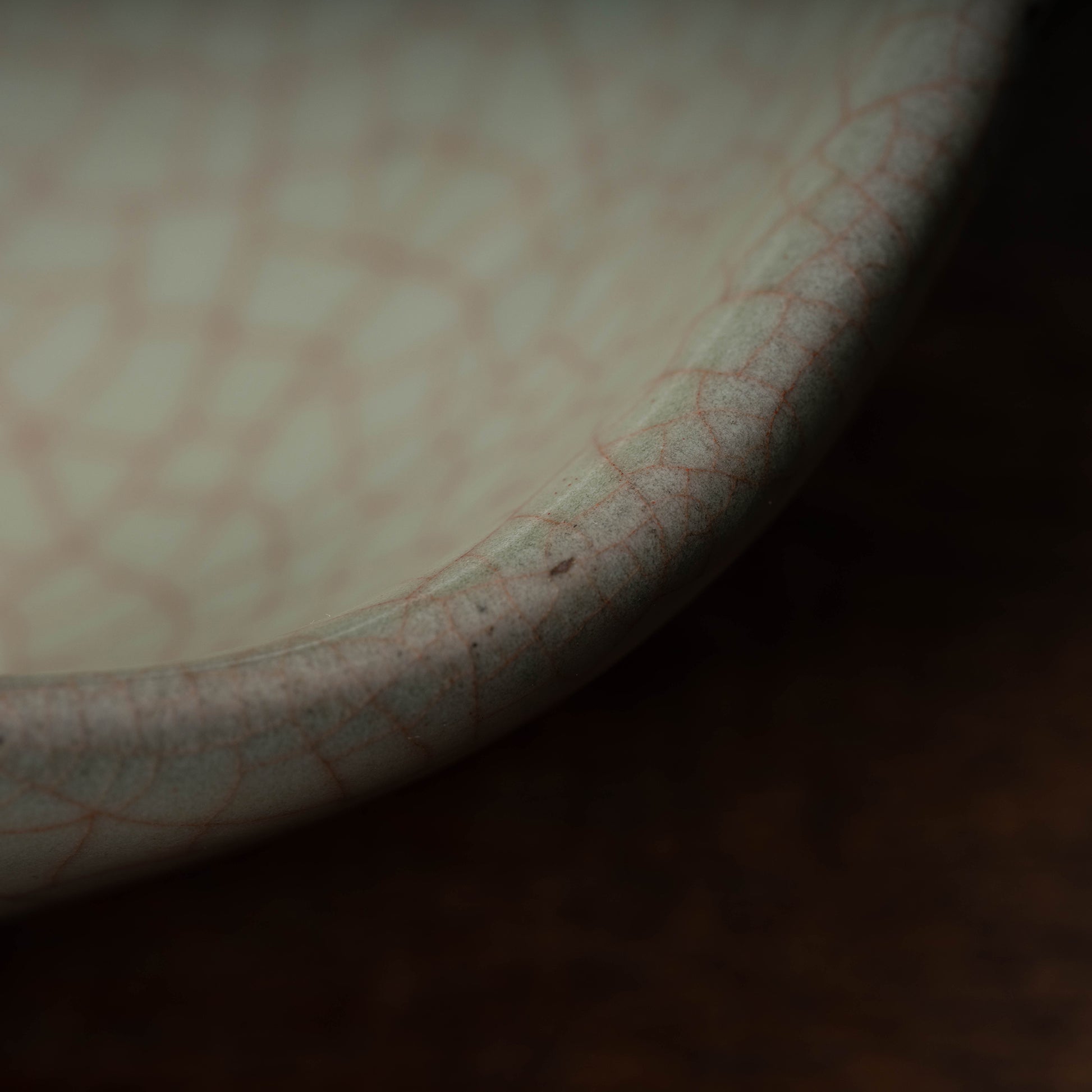 内底の中央に溝を設け、上に膨らむように作られているのは哥窯の特徴です。