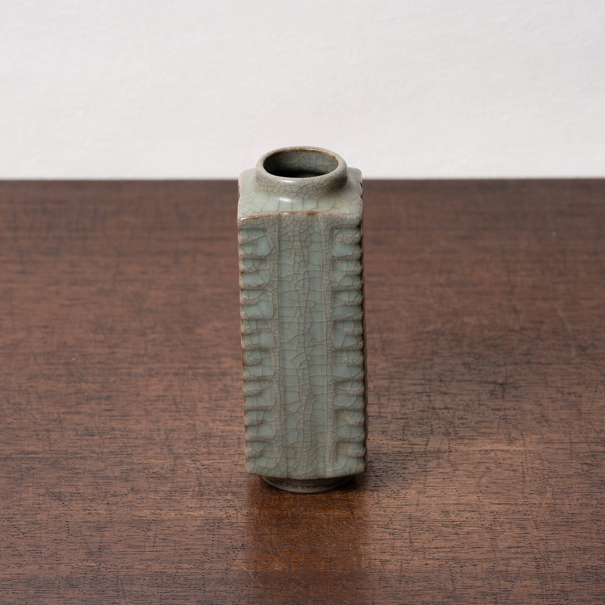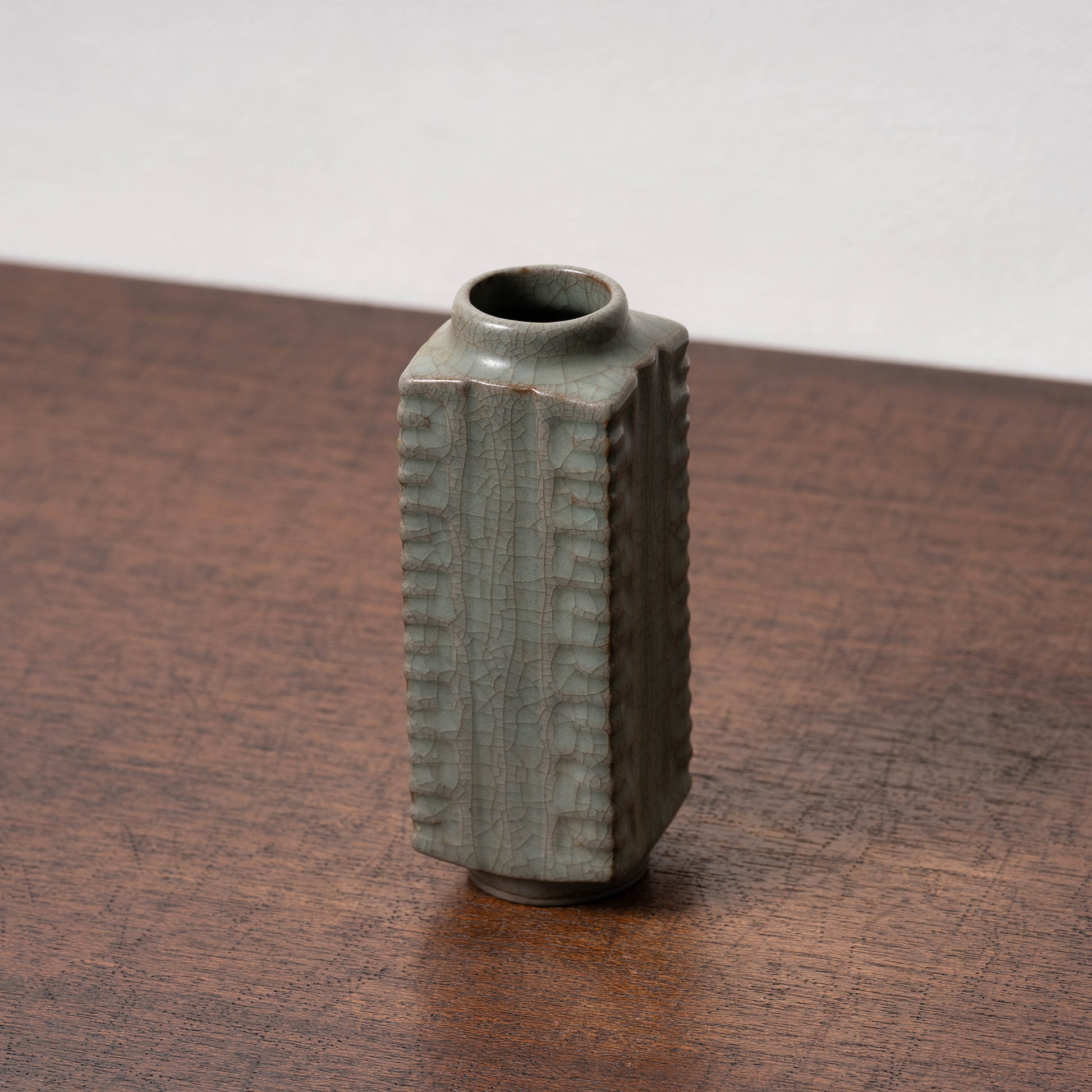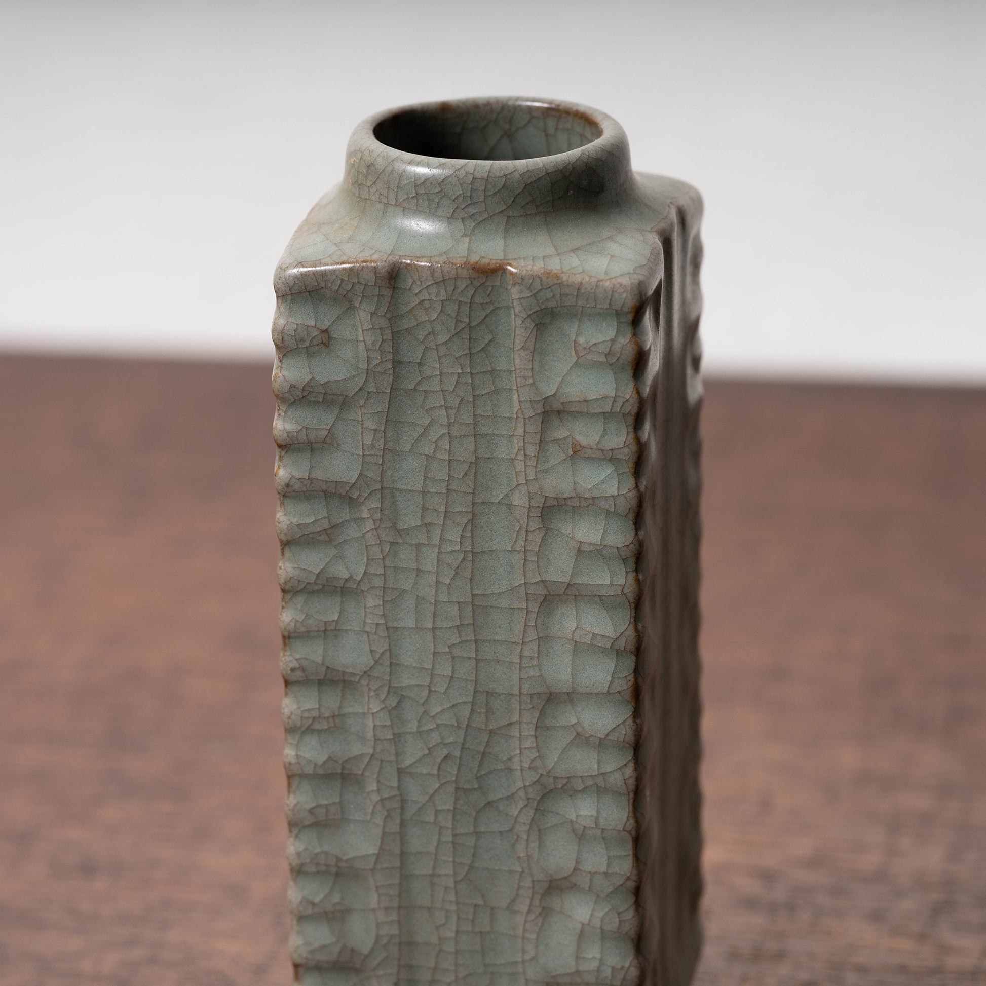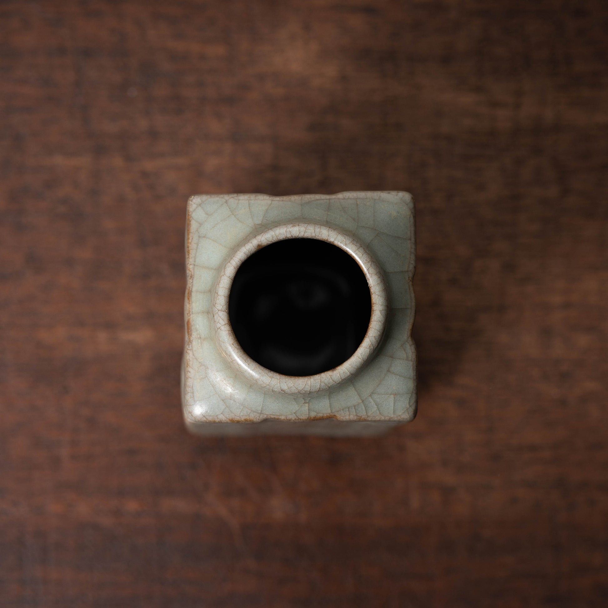 この形は瓶は玉器の琮(そう)を模しており、元々は石を削ってつくられた品です。