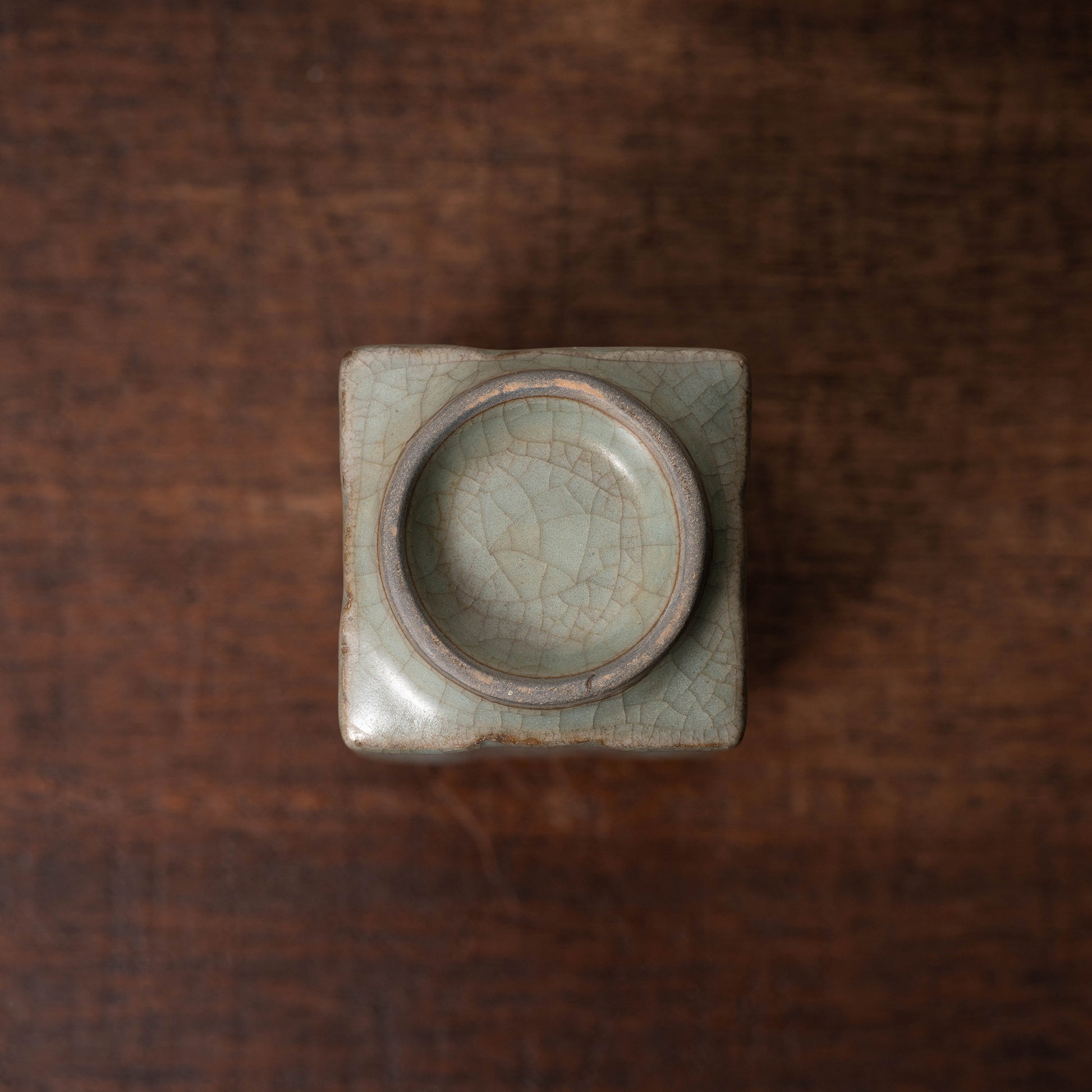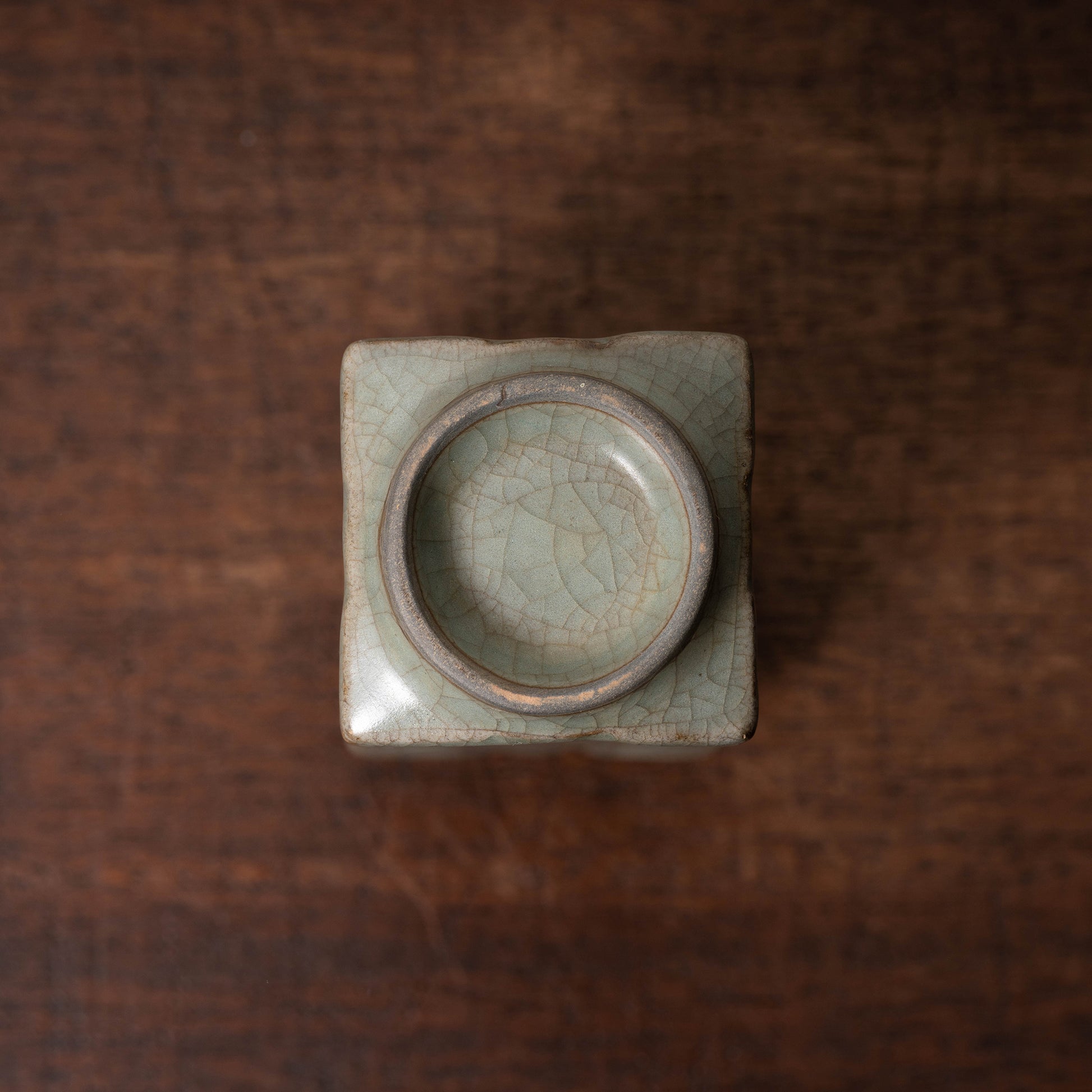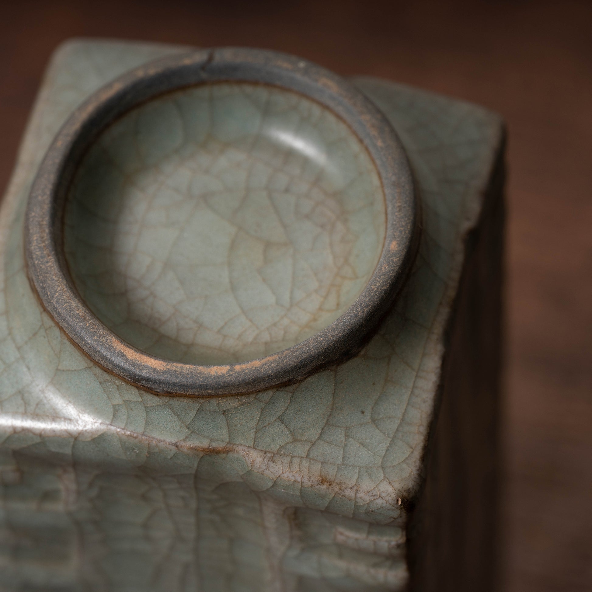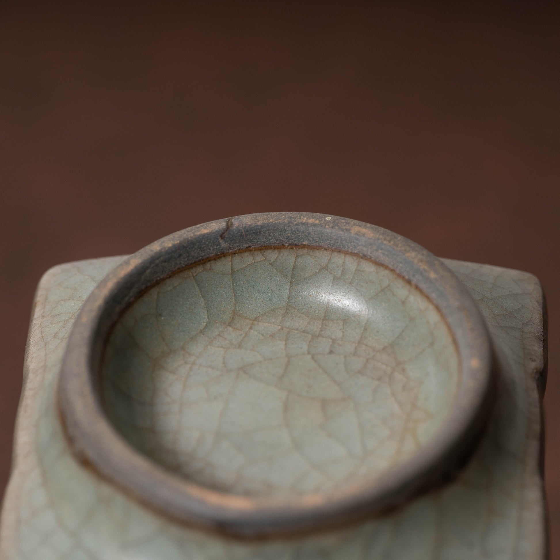 南宋官窯系らしい灰青色の釉薬はやや緑色が強く元代の初期の品であると考えられます。