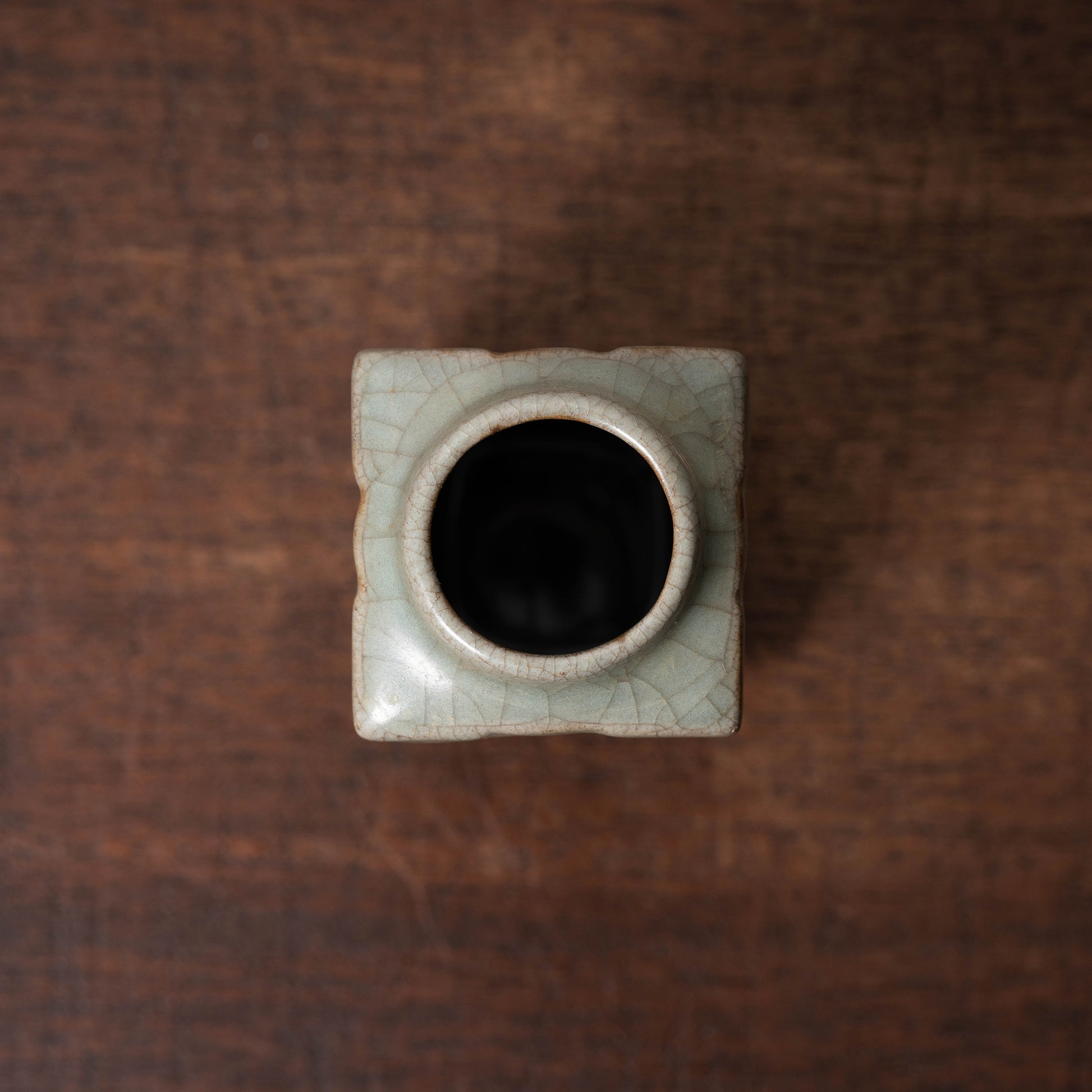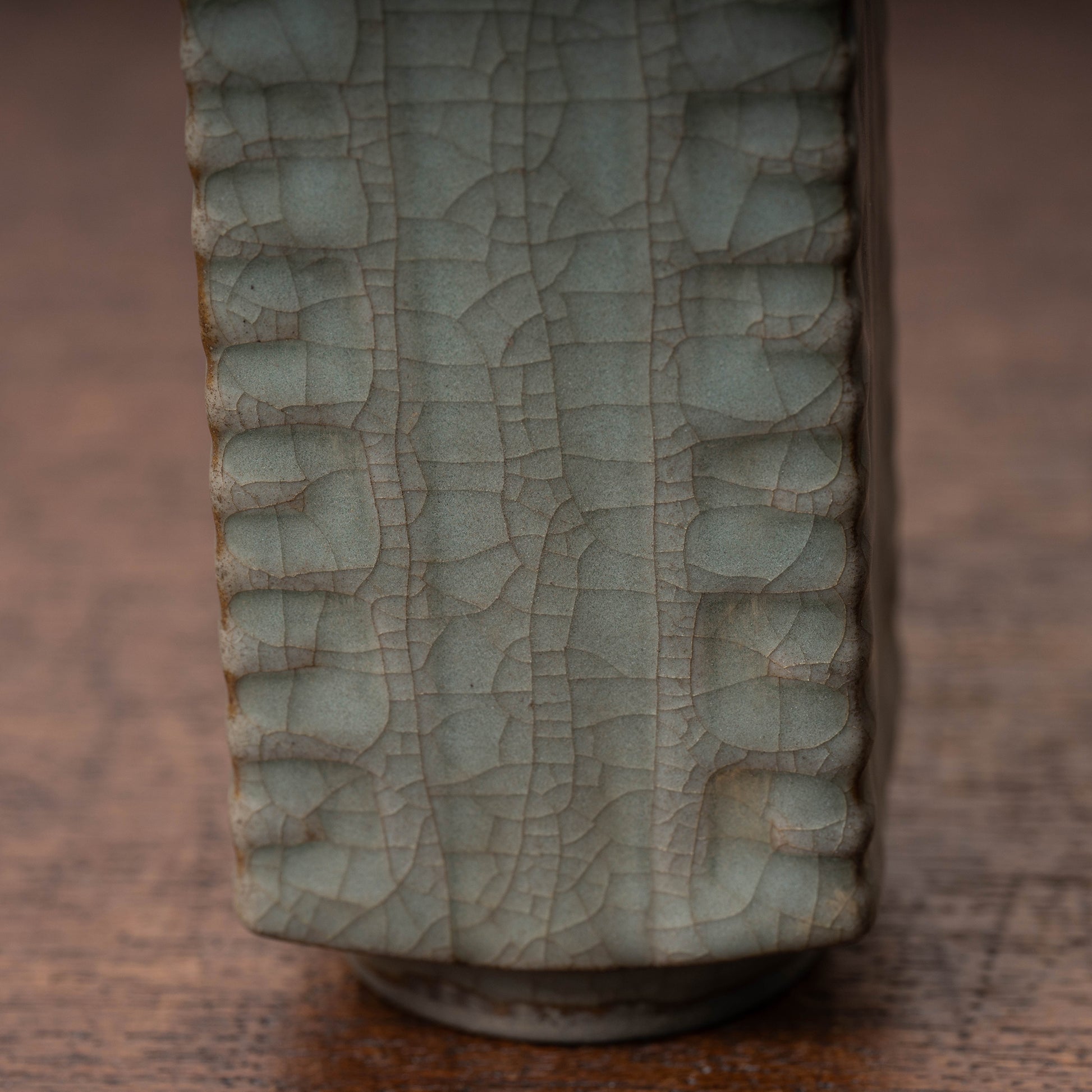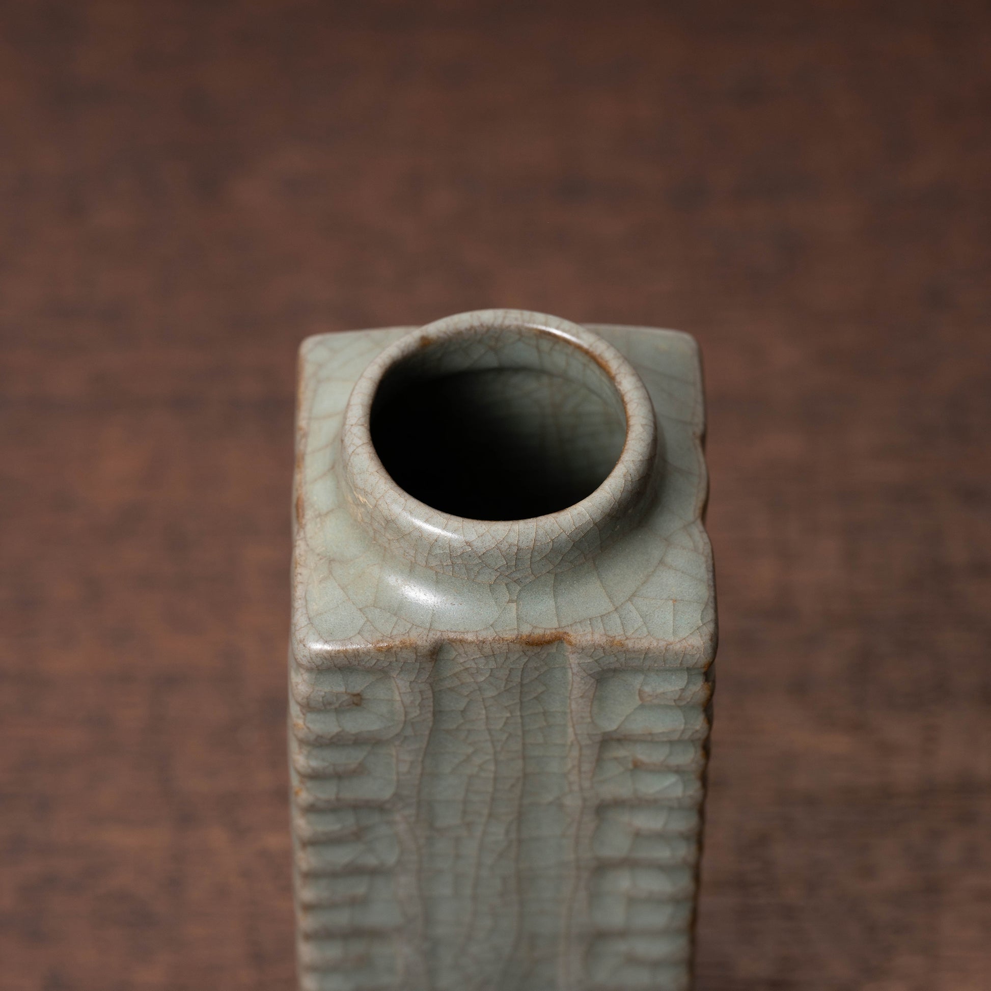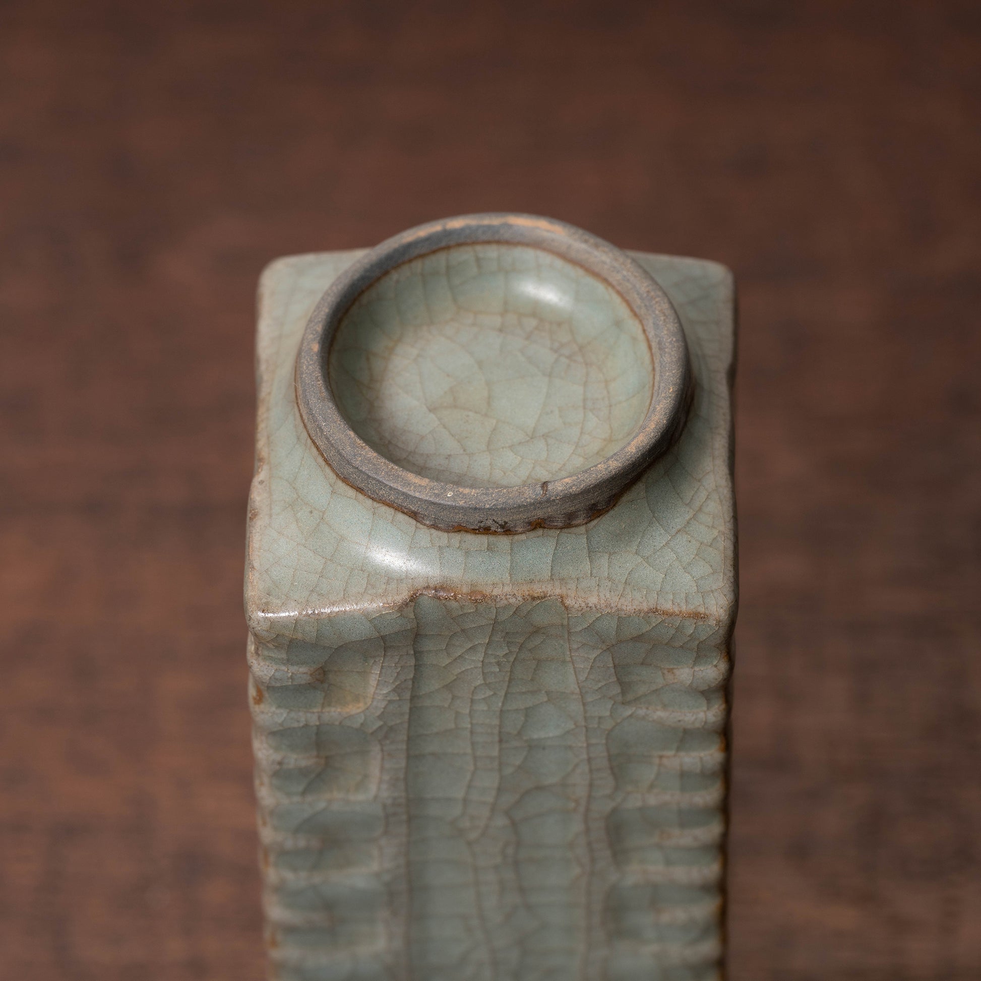 南宋官窯系らしい灰青色の釉薬はやや緑色が強く元代の初期の品であると考えられます。