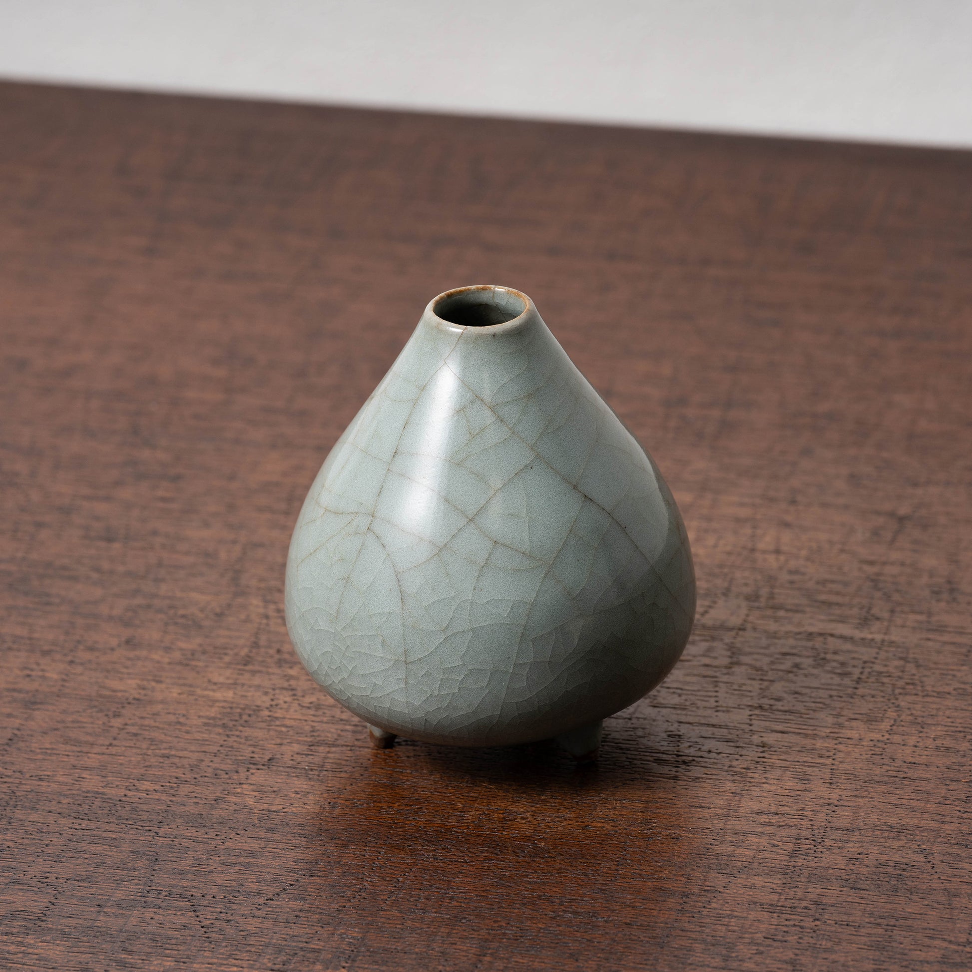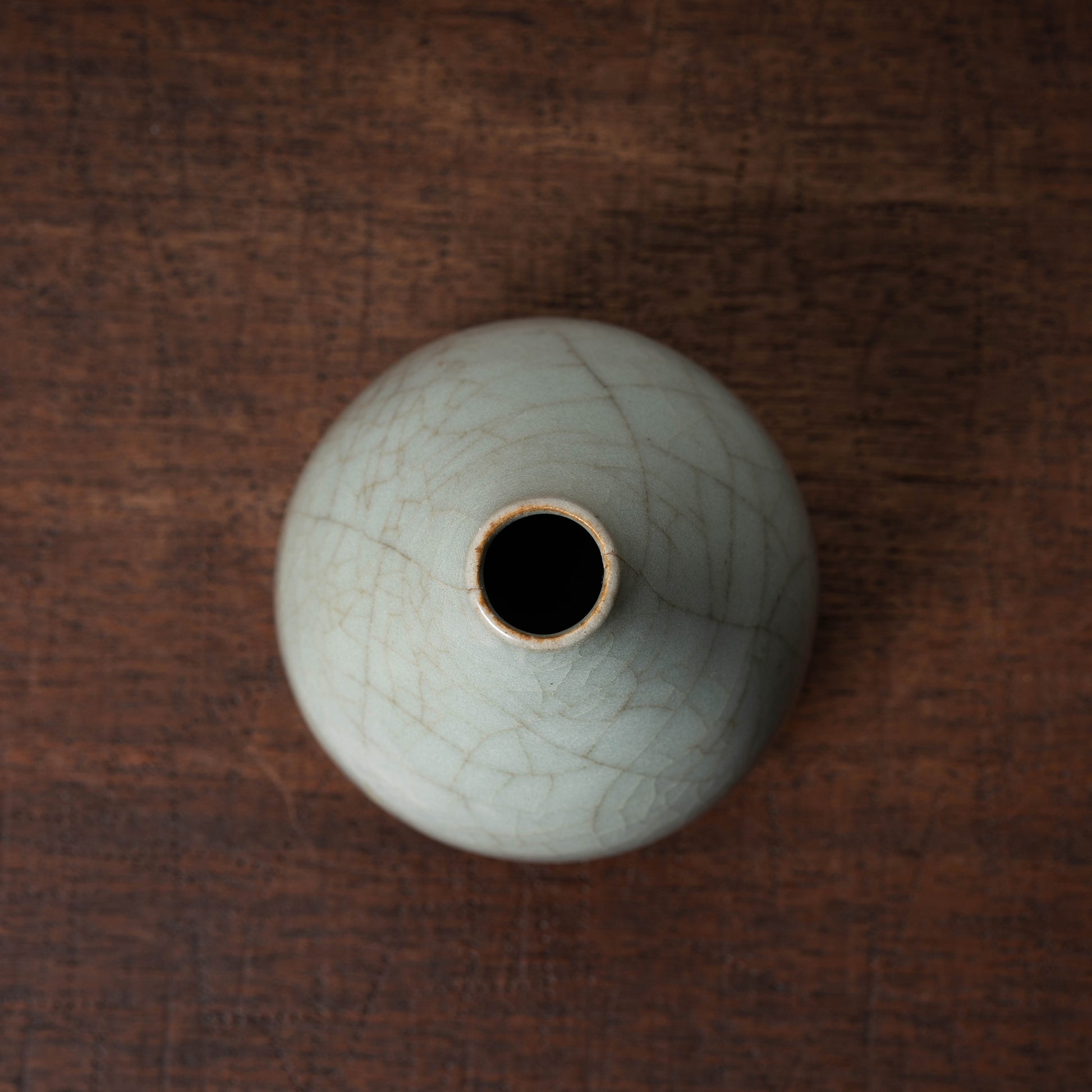 南宋から元代初期に官窯で焼かれた青磁の瓶。