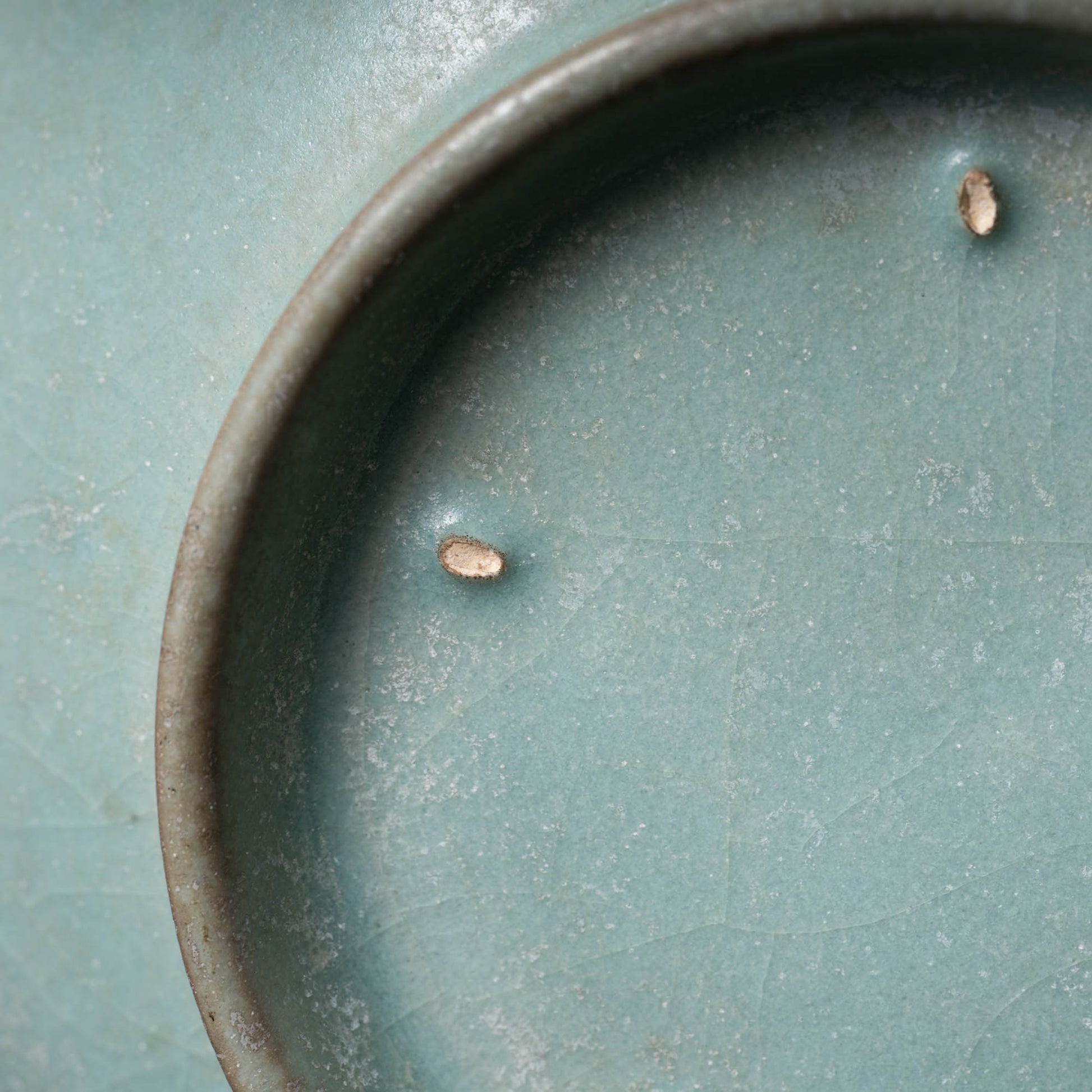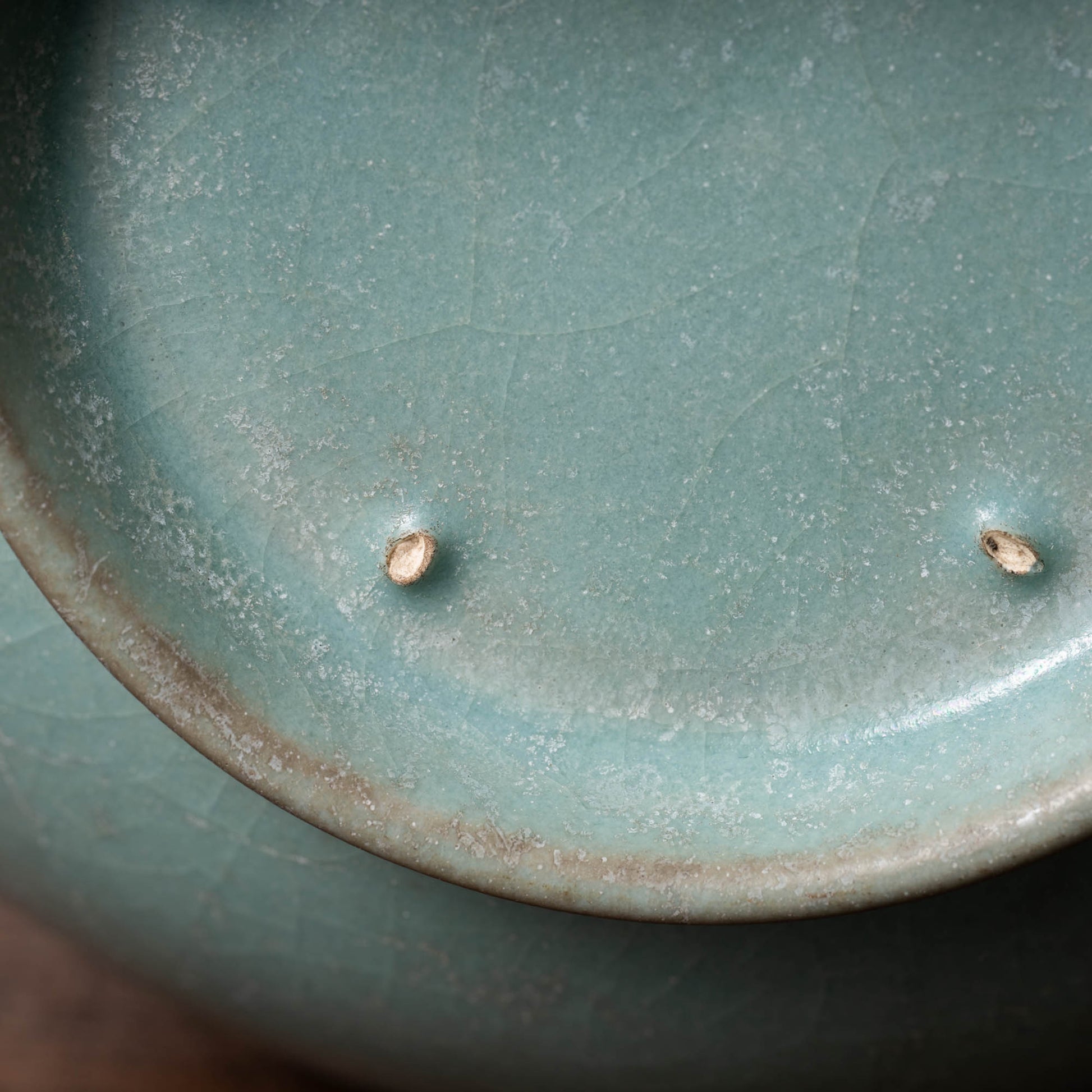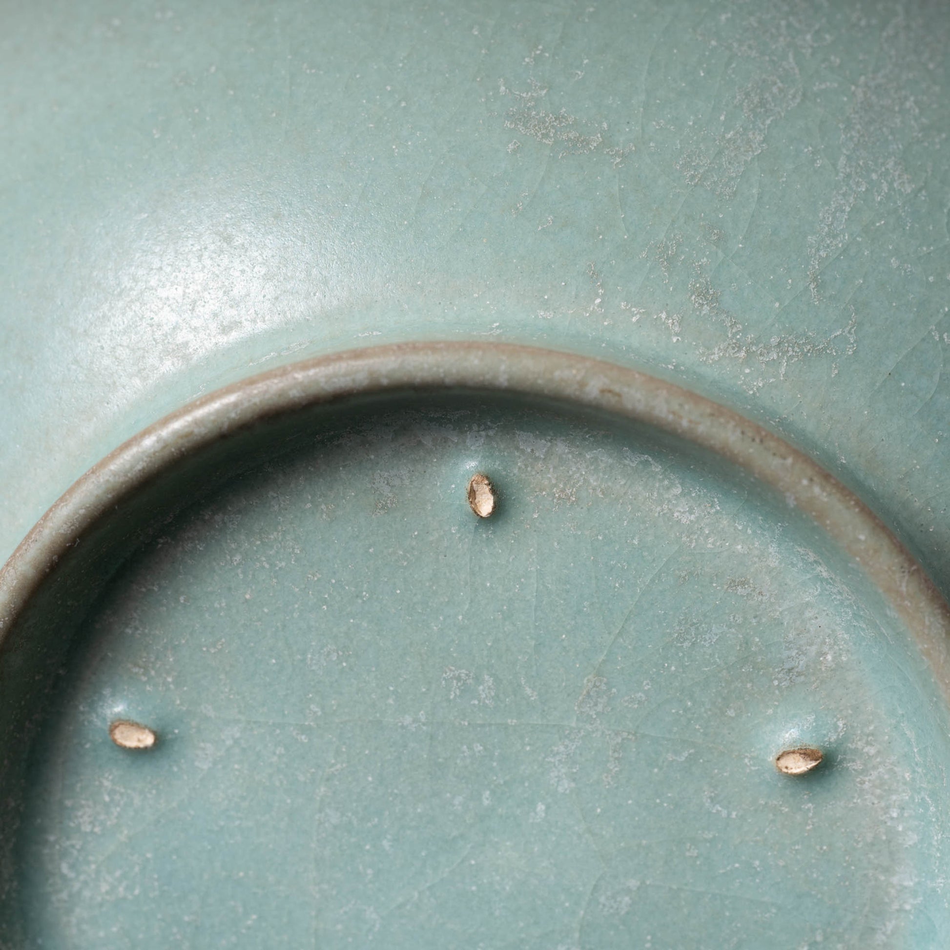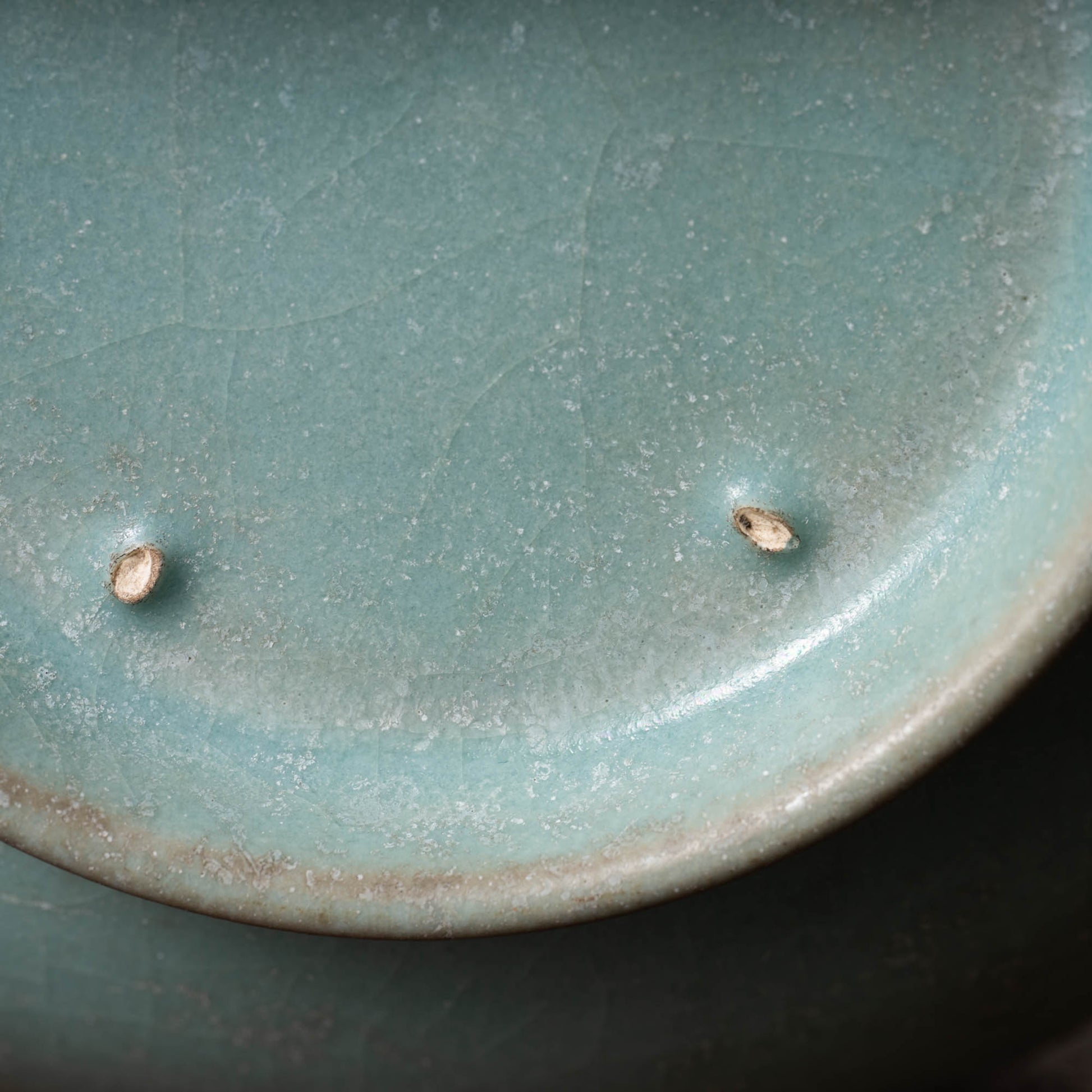 一部に白い粒のようなカセは釉薬の成分によるものと考えられ、汝窯青磁でよく見られる特徴です。