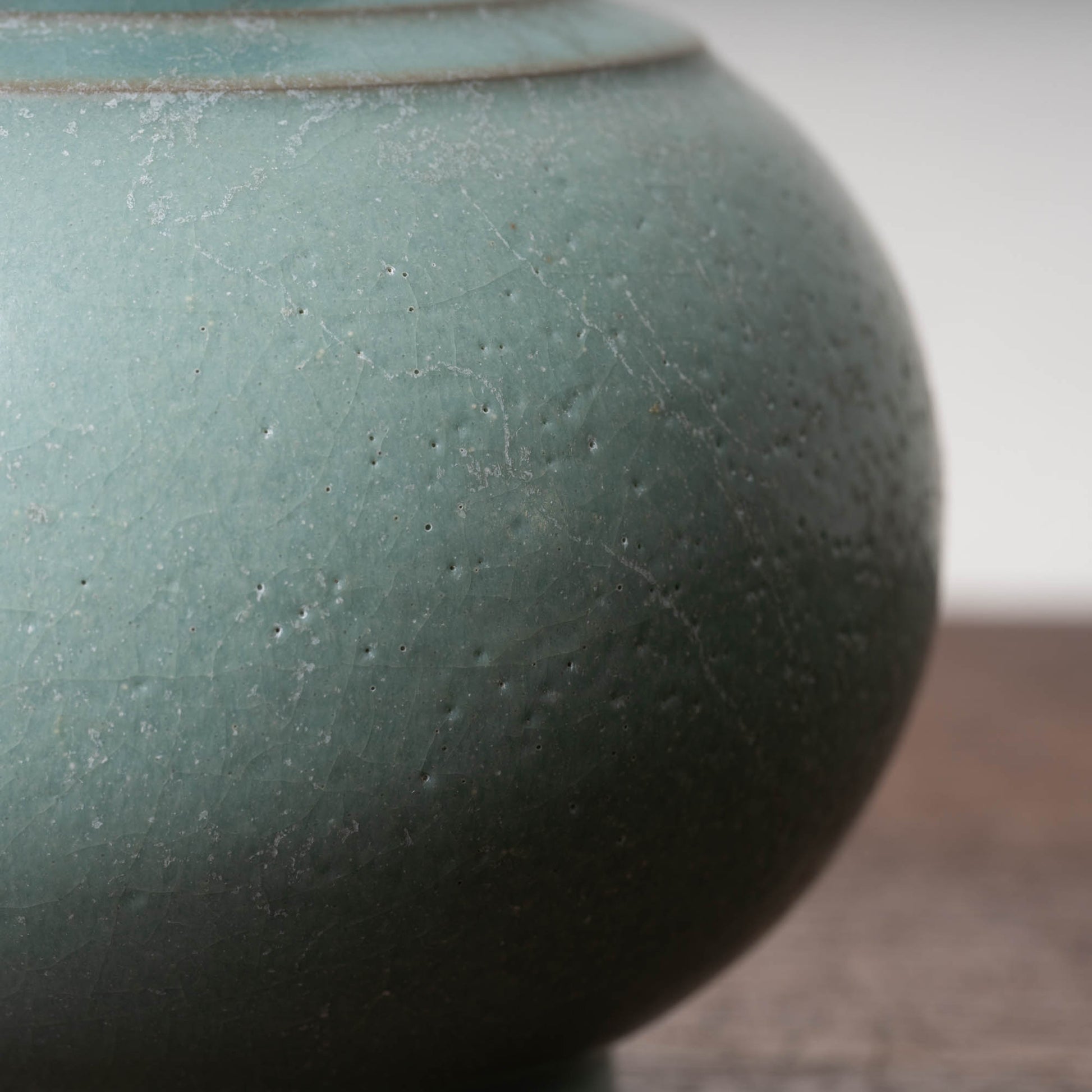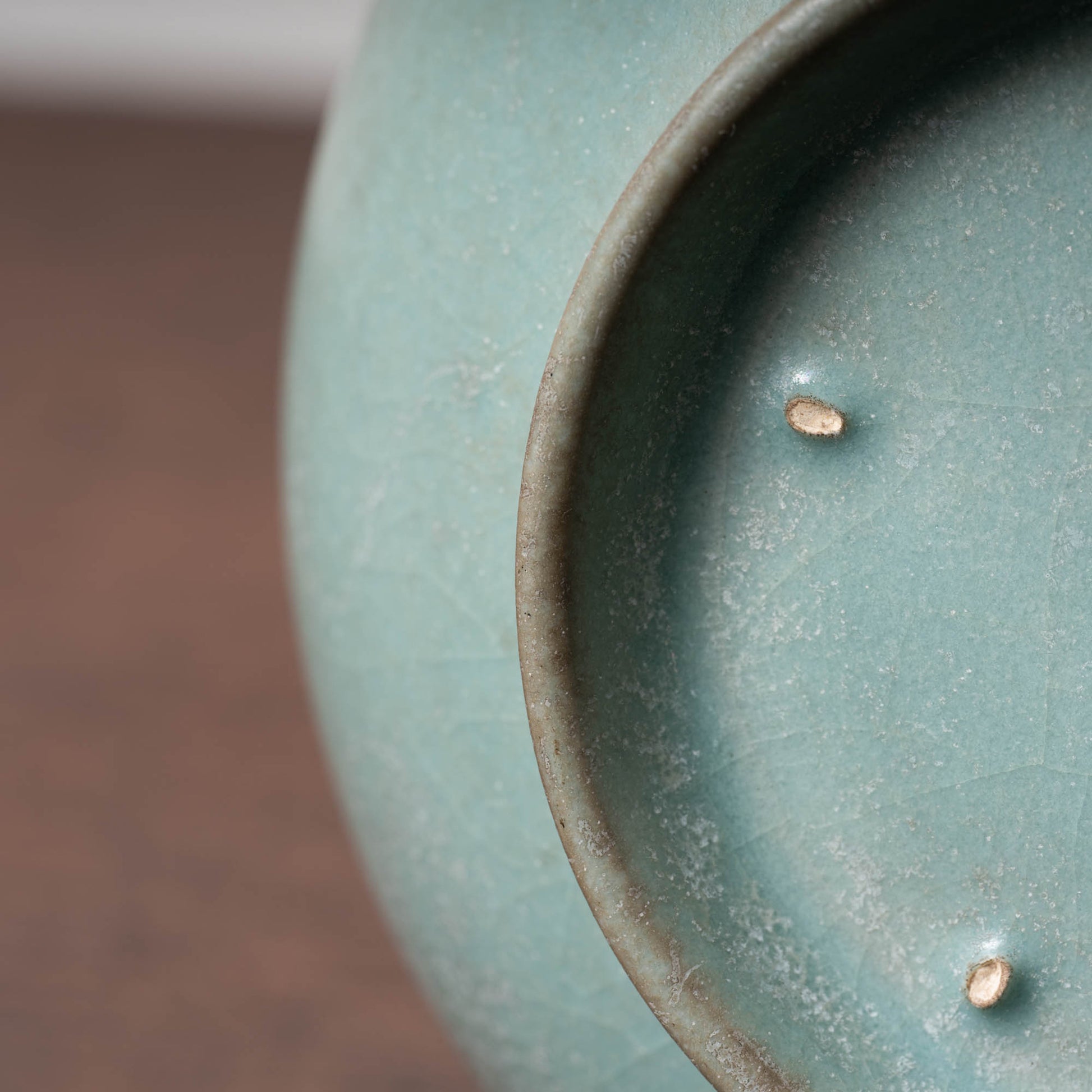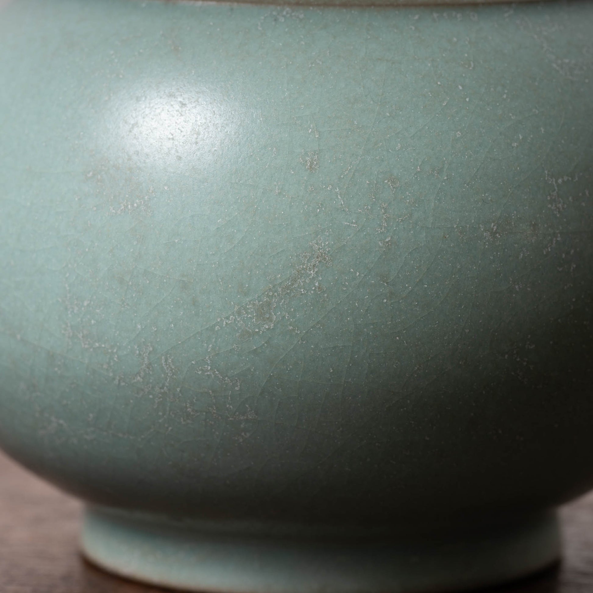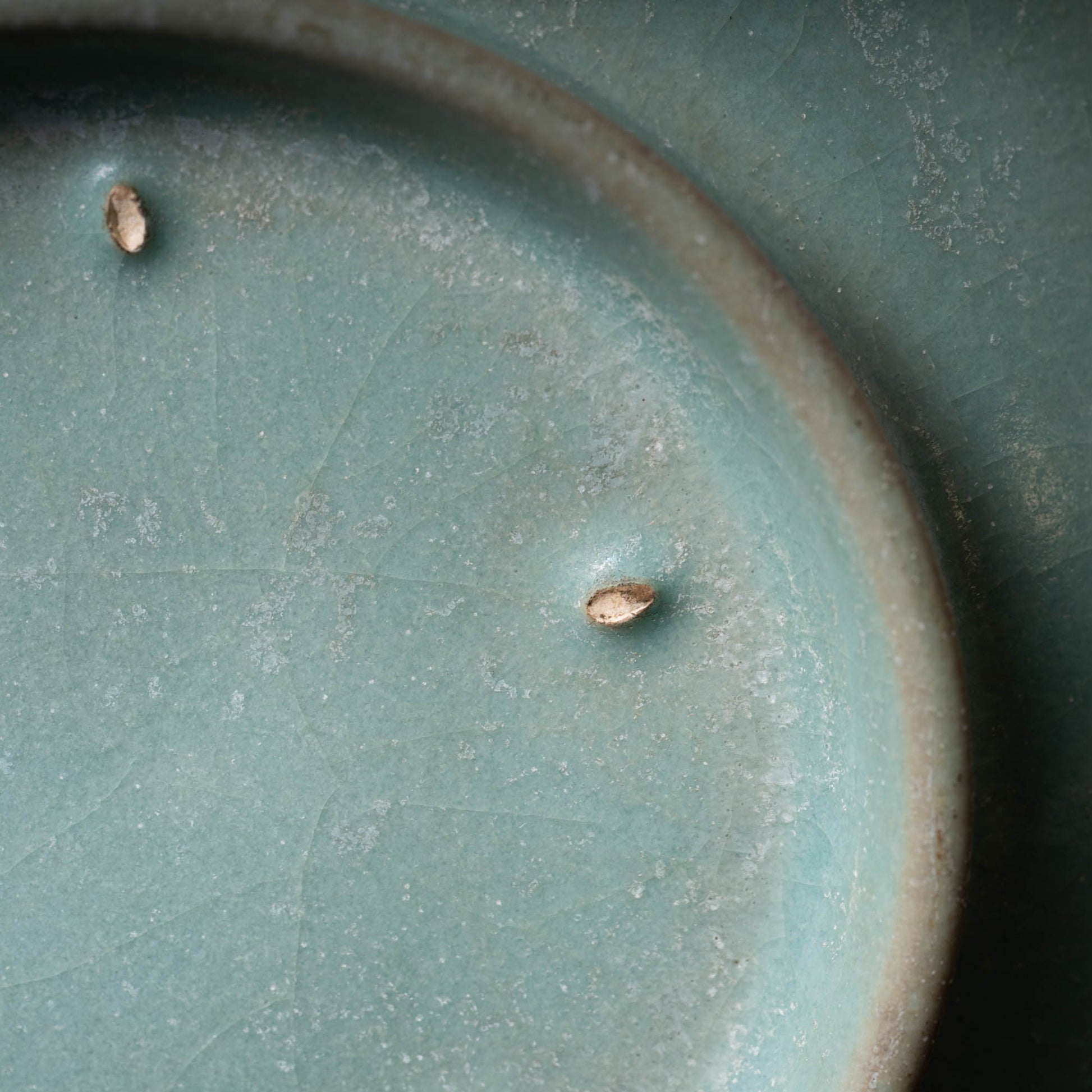 一部に白い粒のようなカセは釉薬の成分によるものと考えられ、汝窯青磁でよく見られる特徴です。