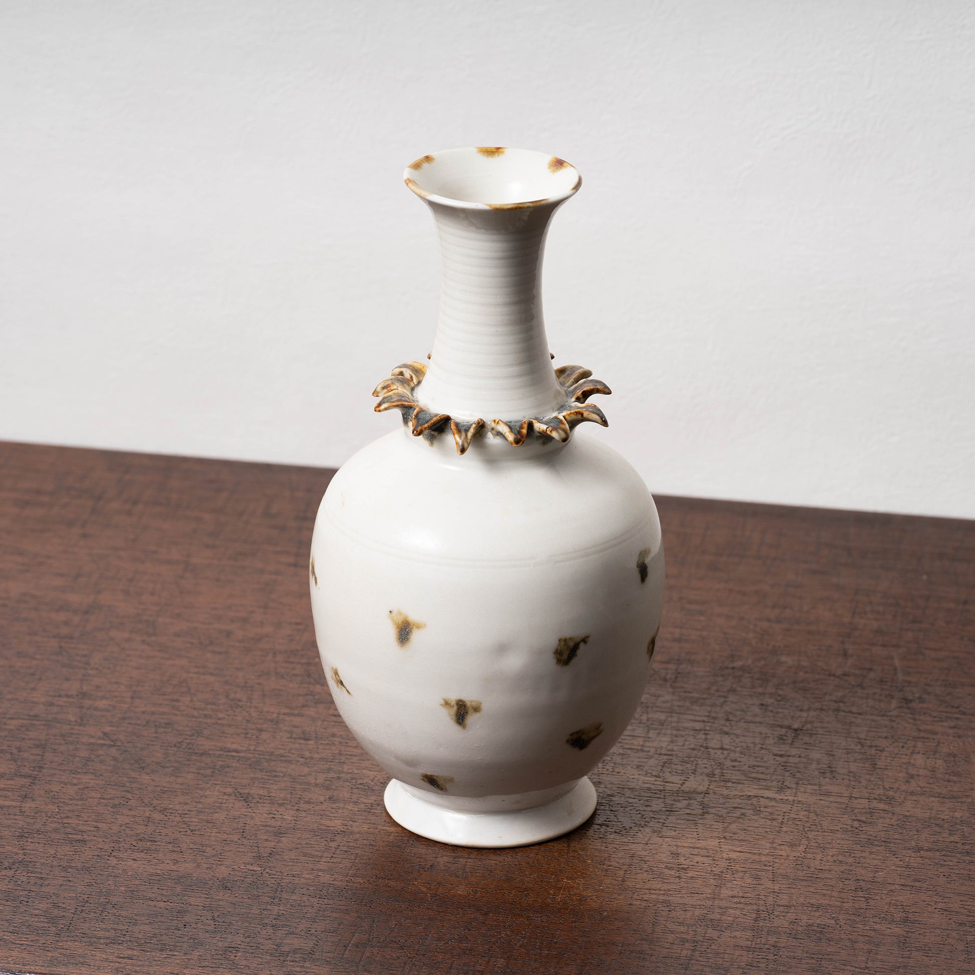 唐代 邢州窯 白釉鉄斑草飾瓶