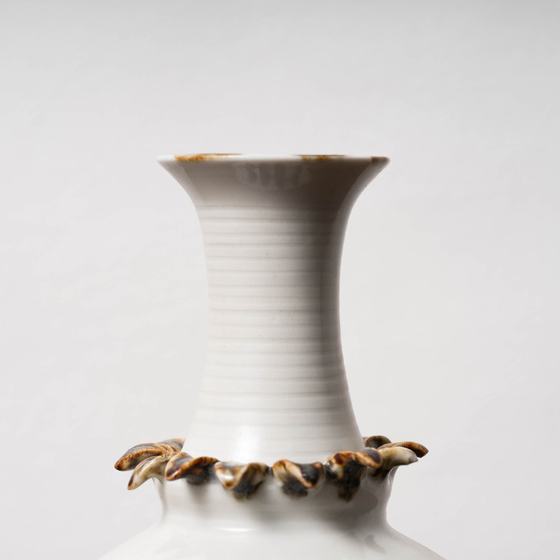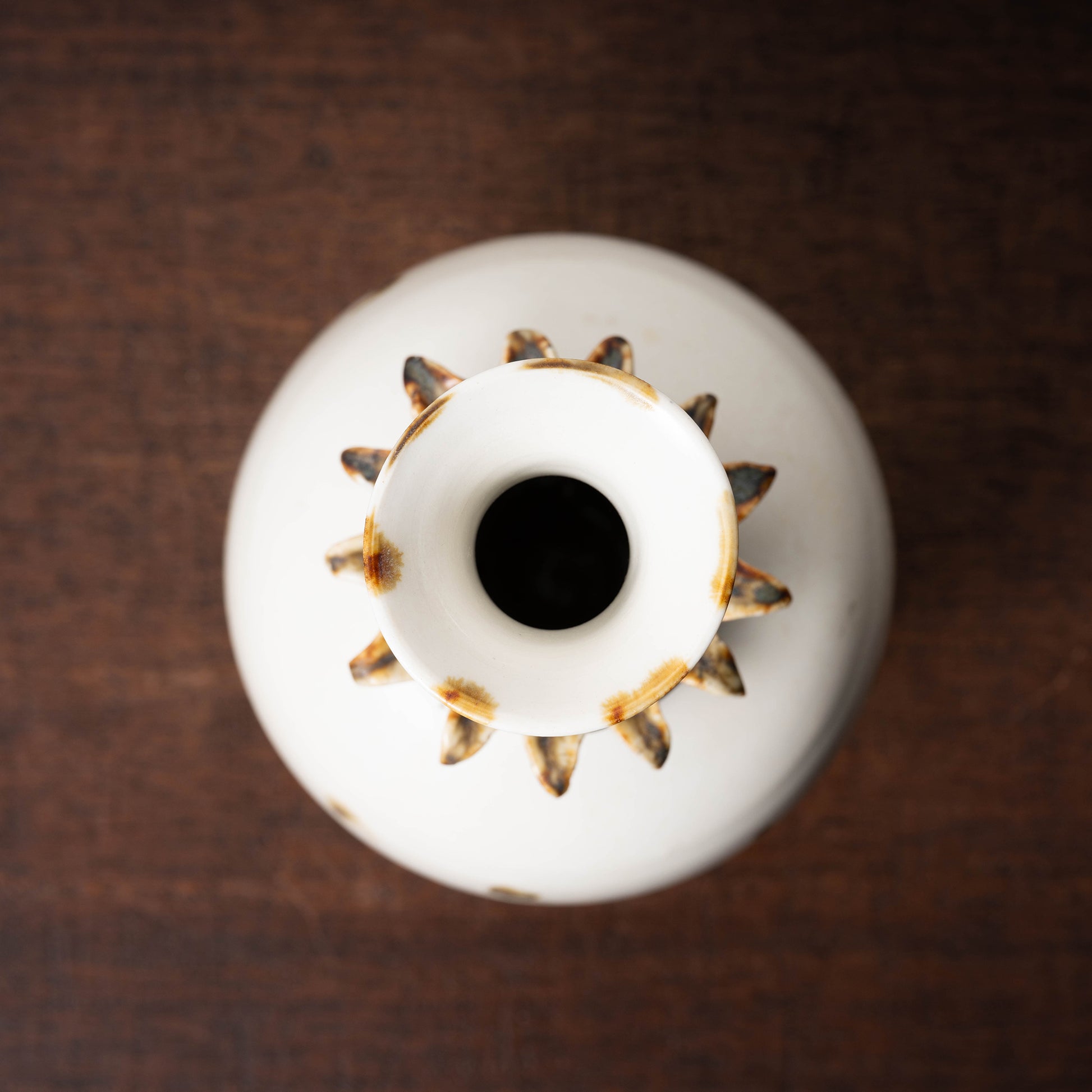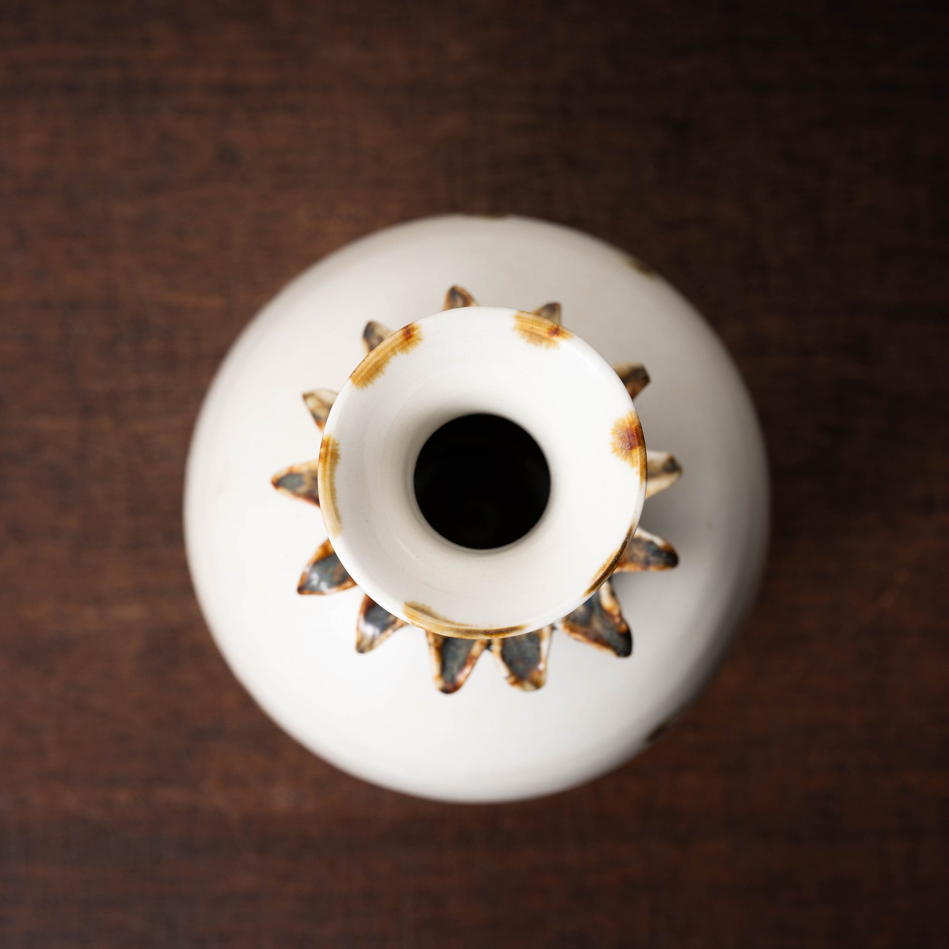 頸の根には13枚の葉のような装飾があり、鉄釉で染められます。