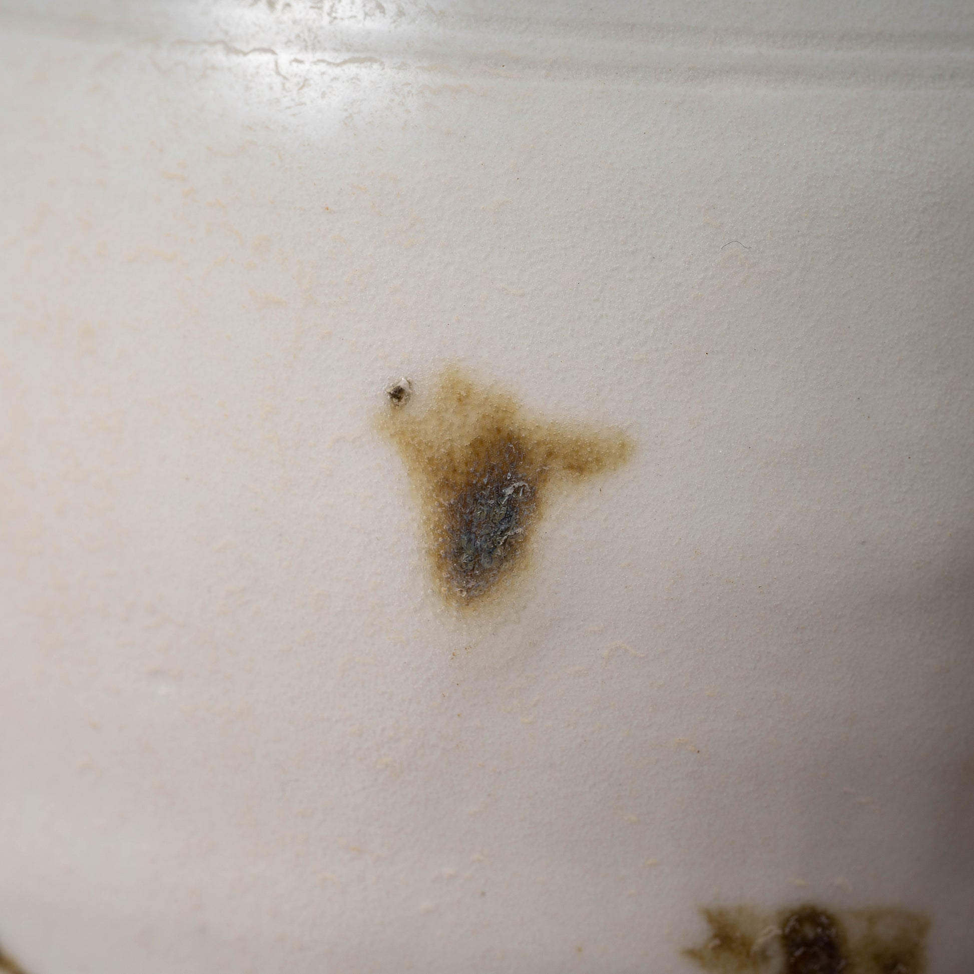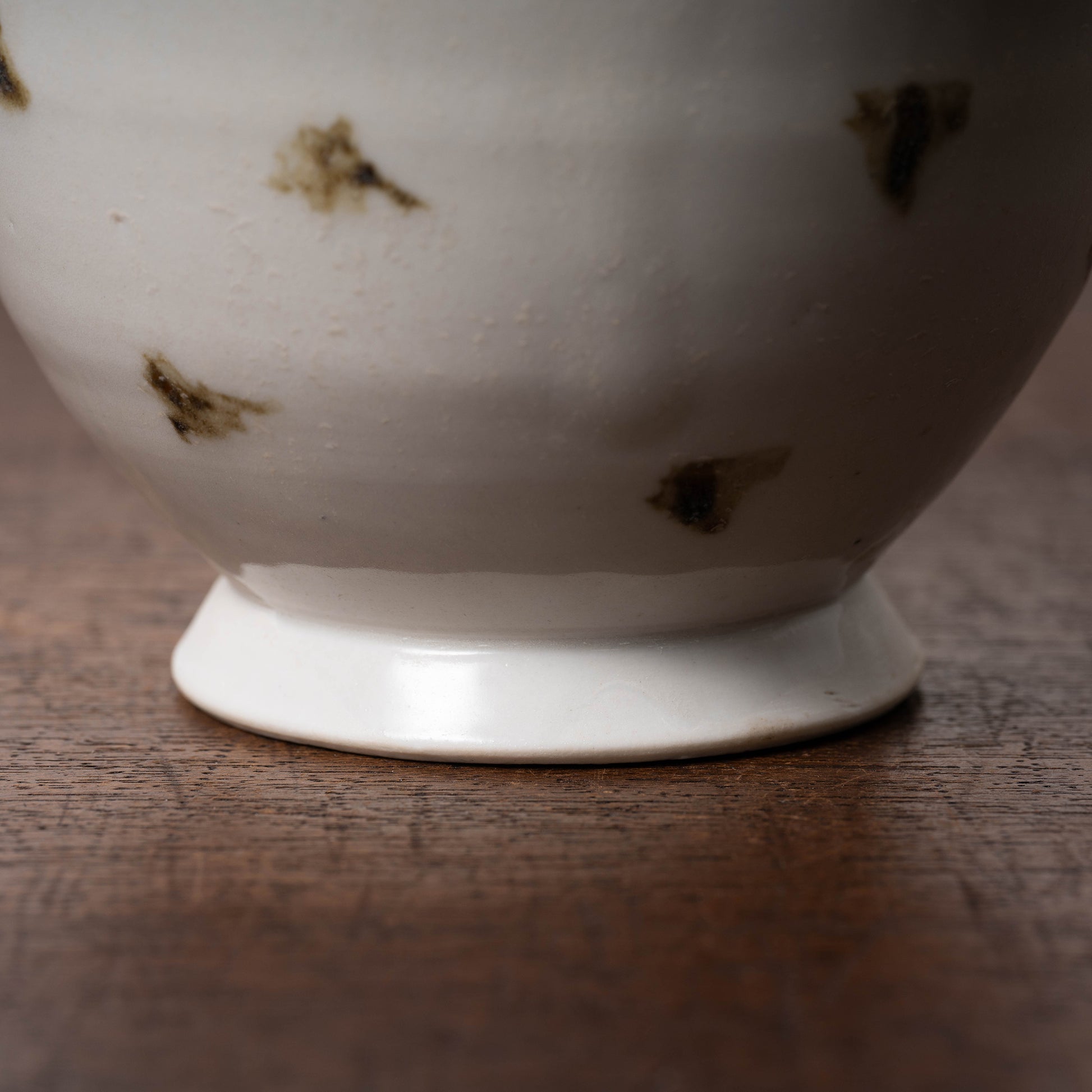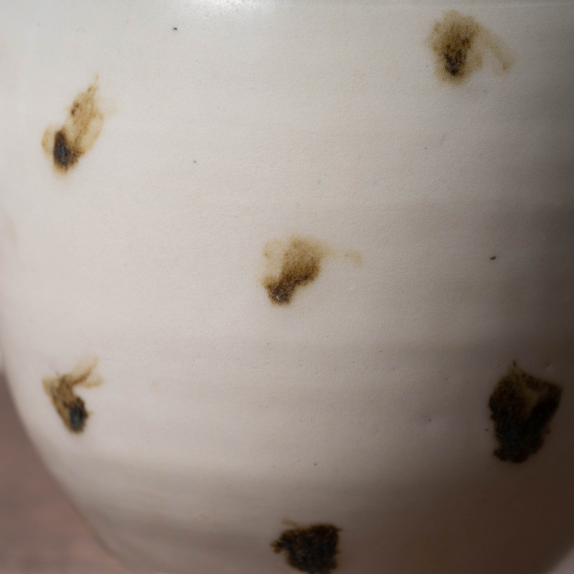 胴には鉄釉を垂らした無数の鉄斑紋が入り、大小形がさまざまなで角度により景色が変化します。