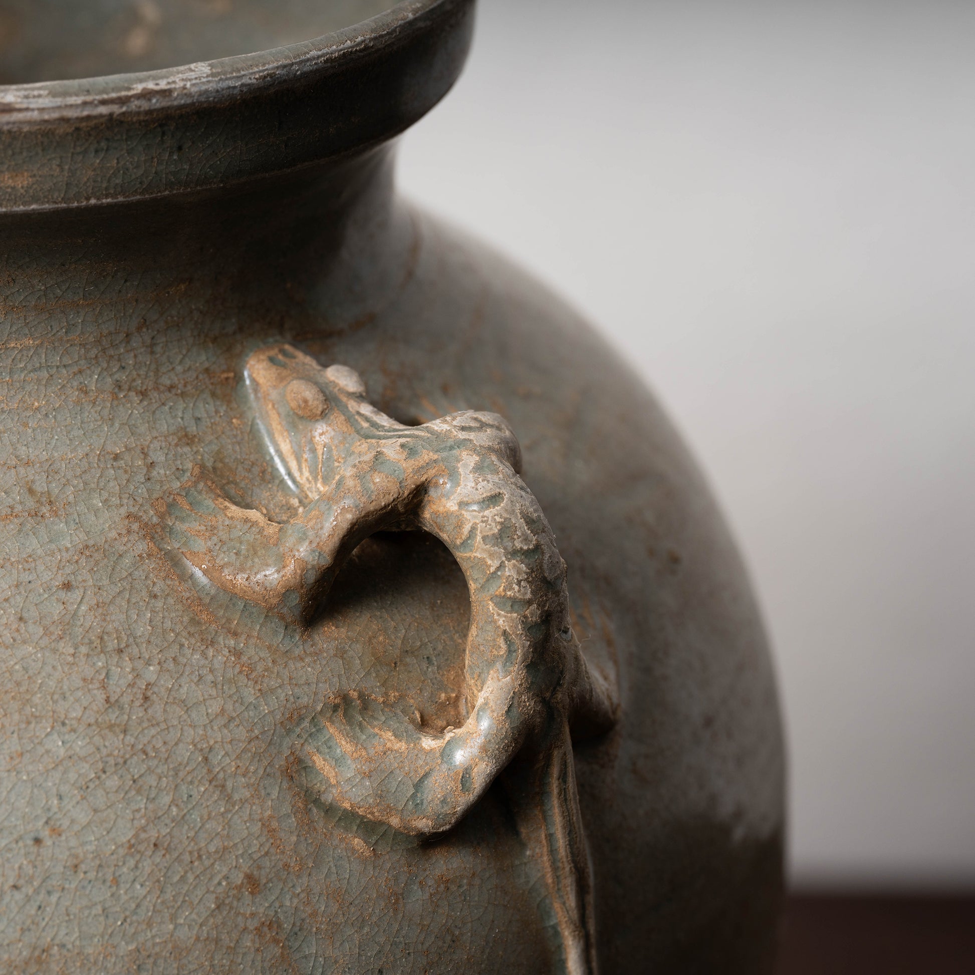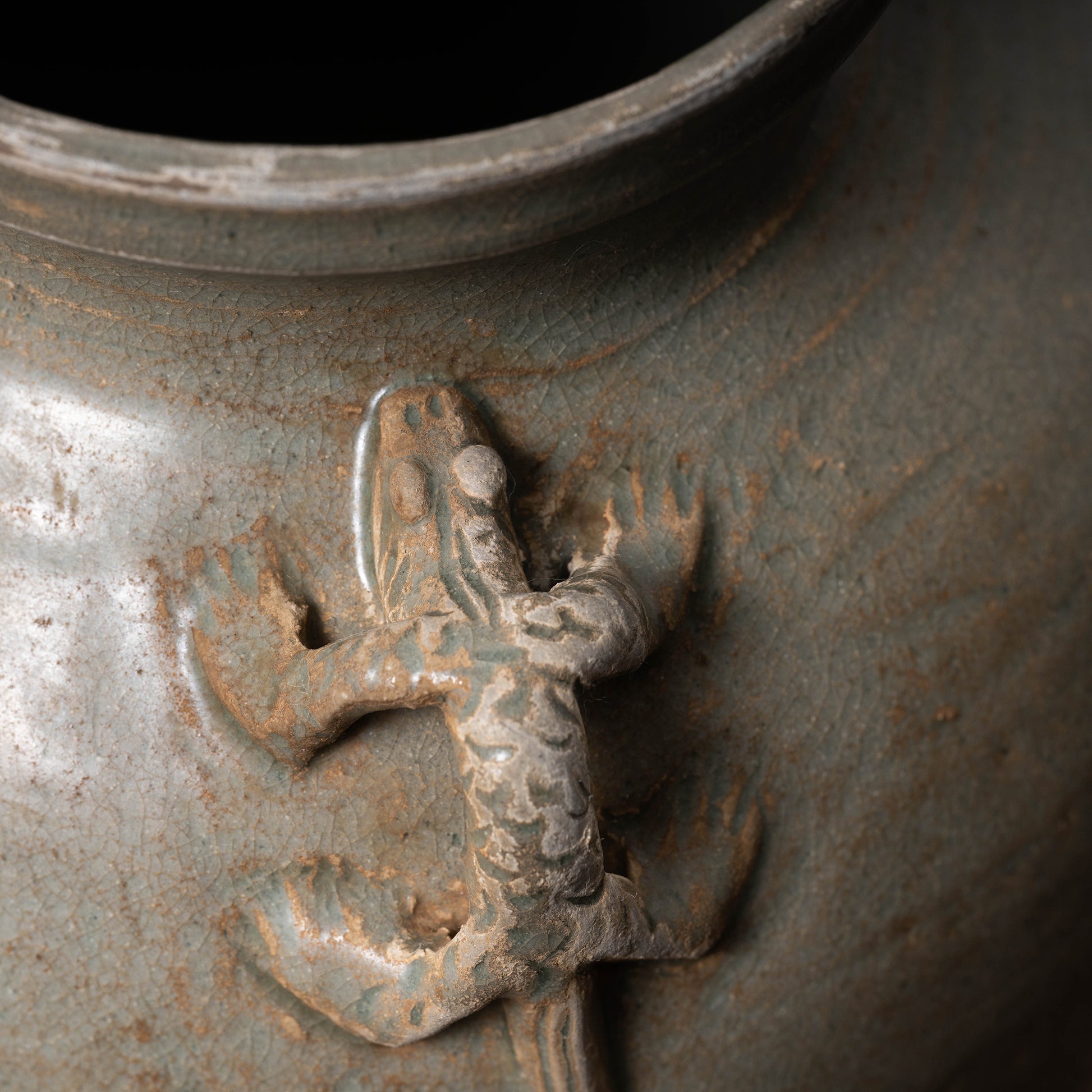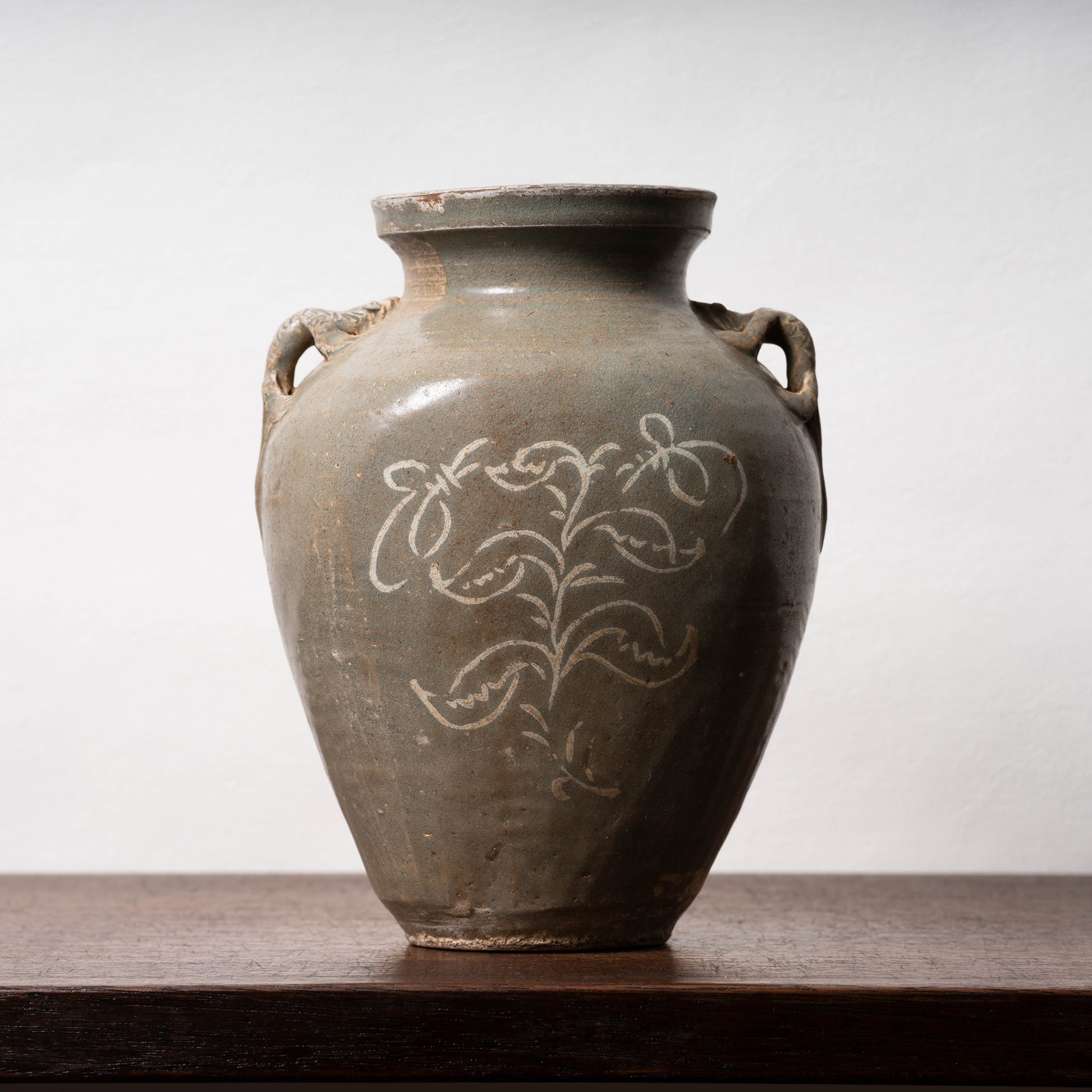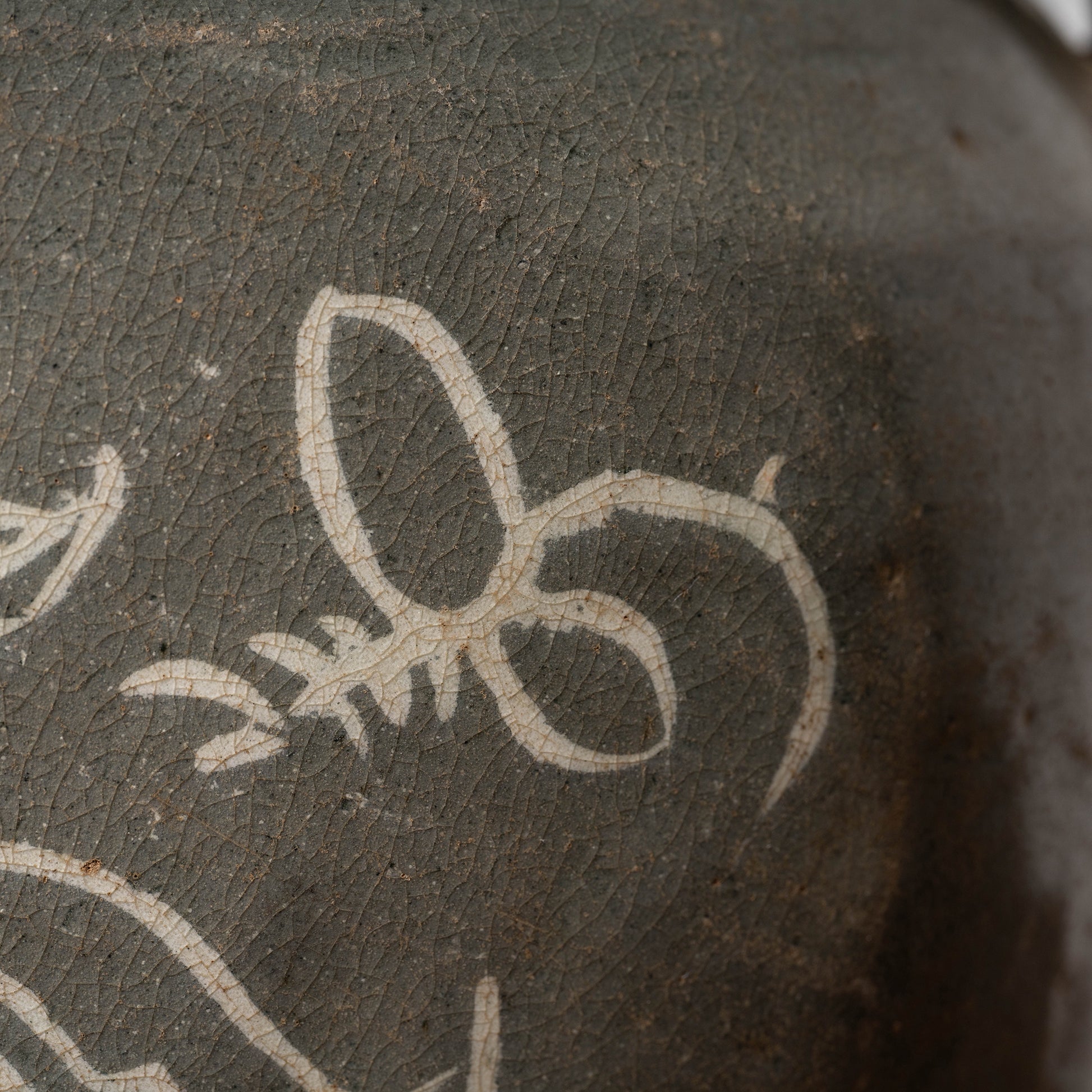 扁壺形状、獣耳、凛とした草花文がとてもバランスよく配置され、釉調も相まってとても高潔さを感じる品です。