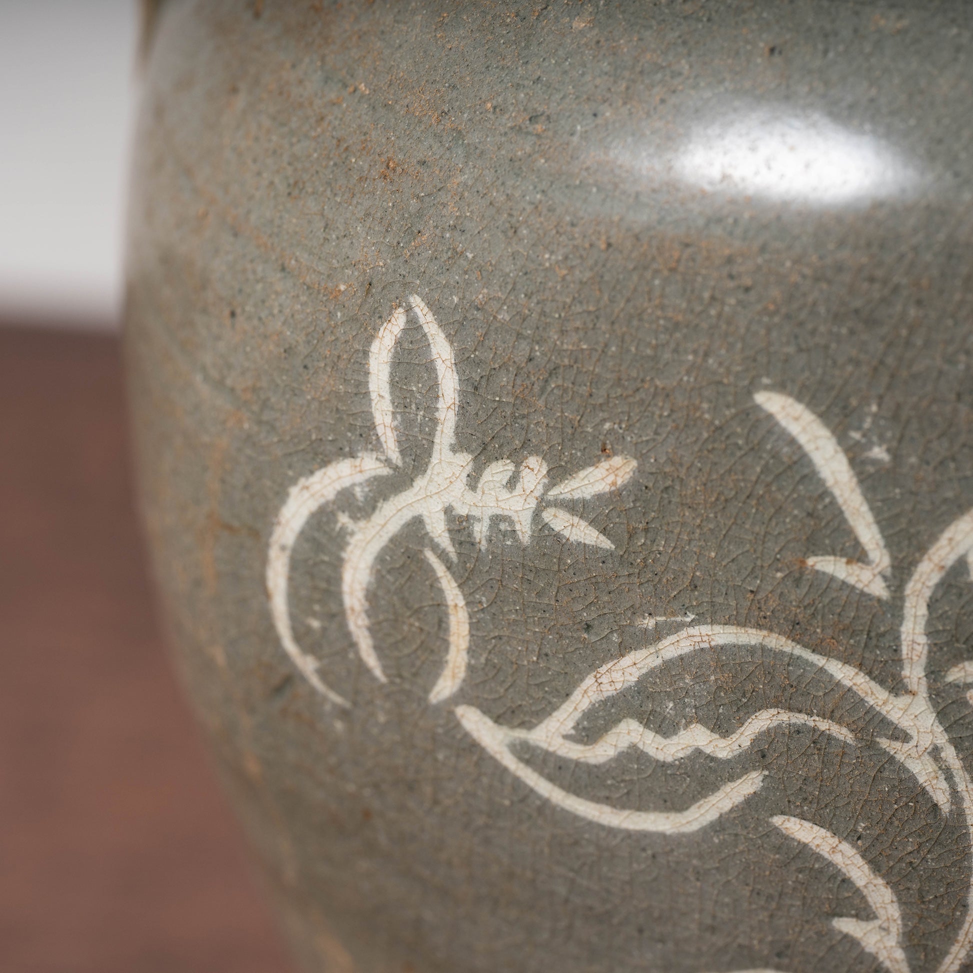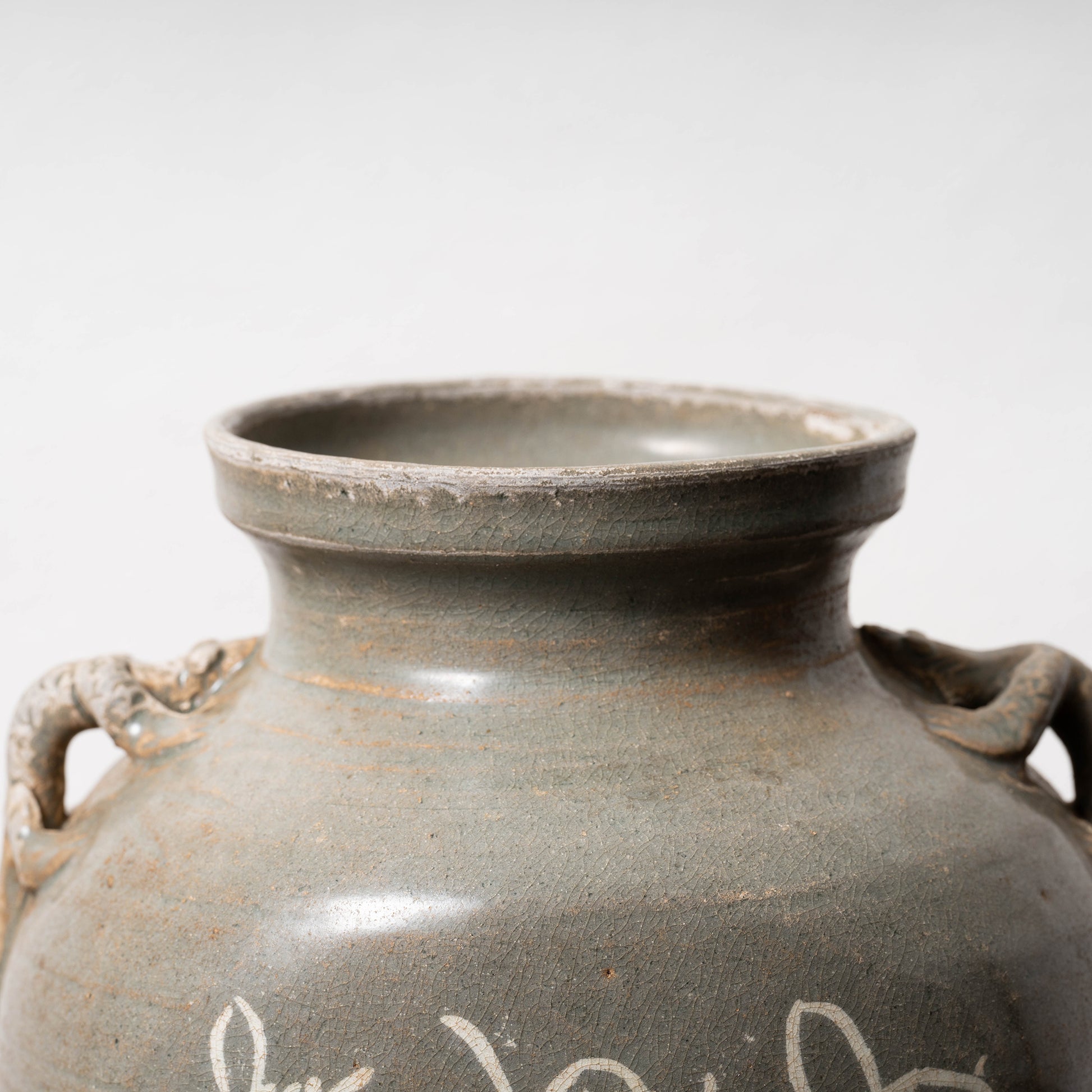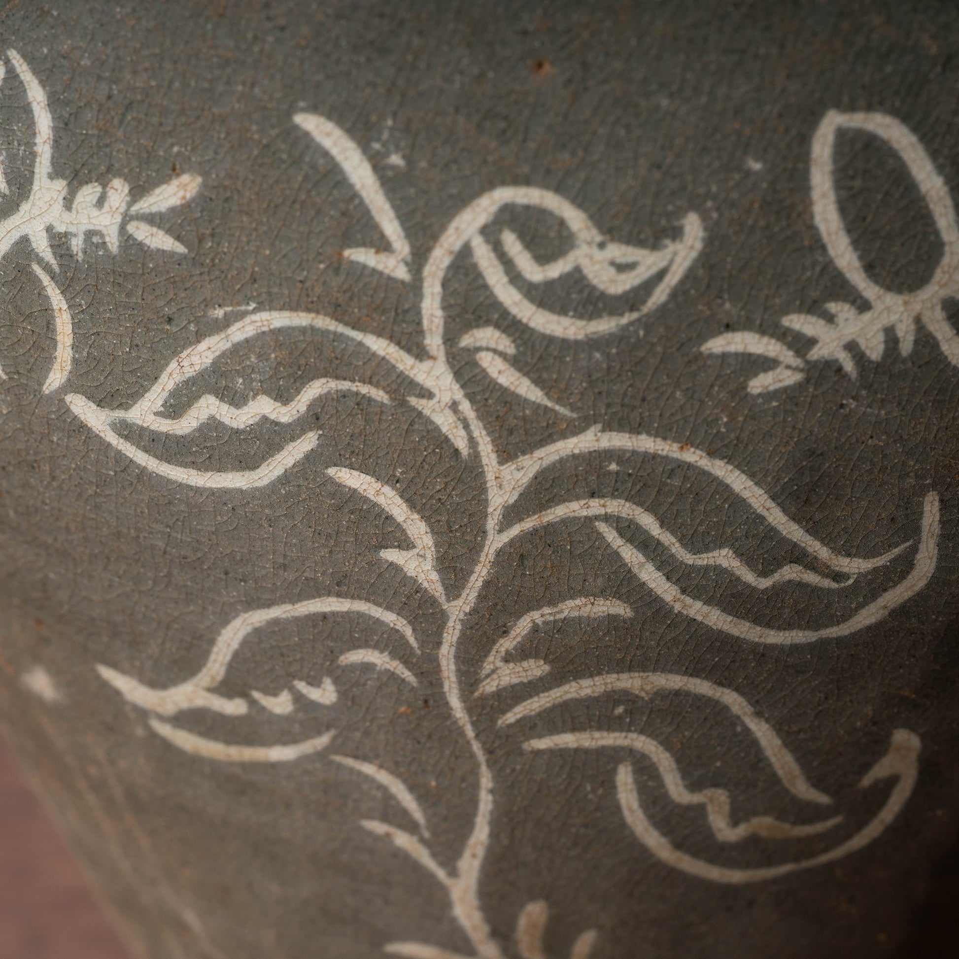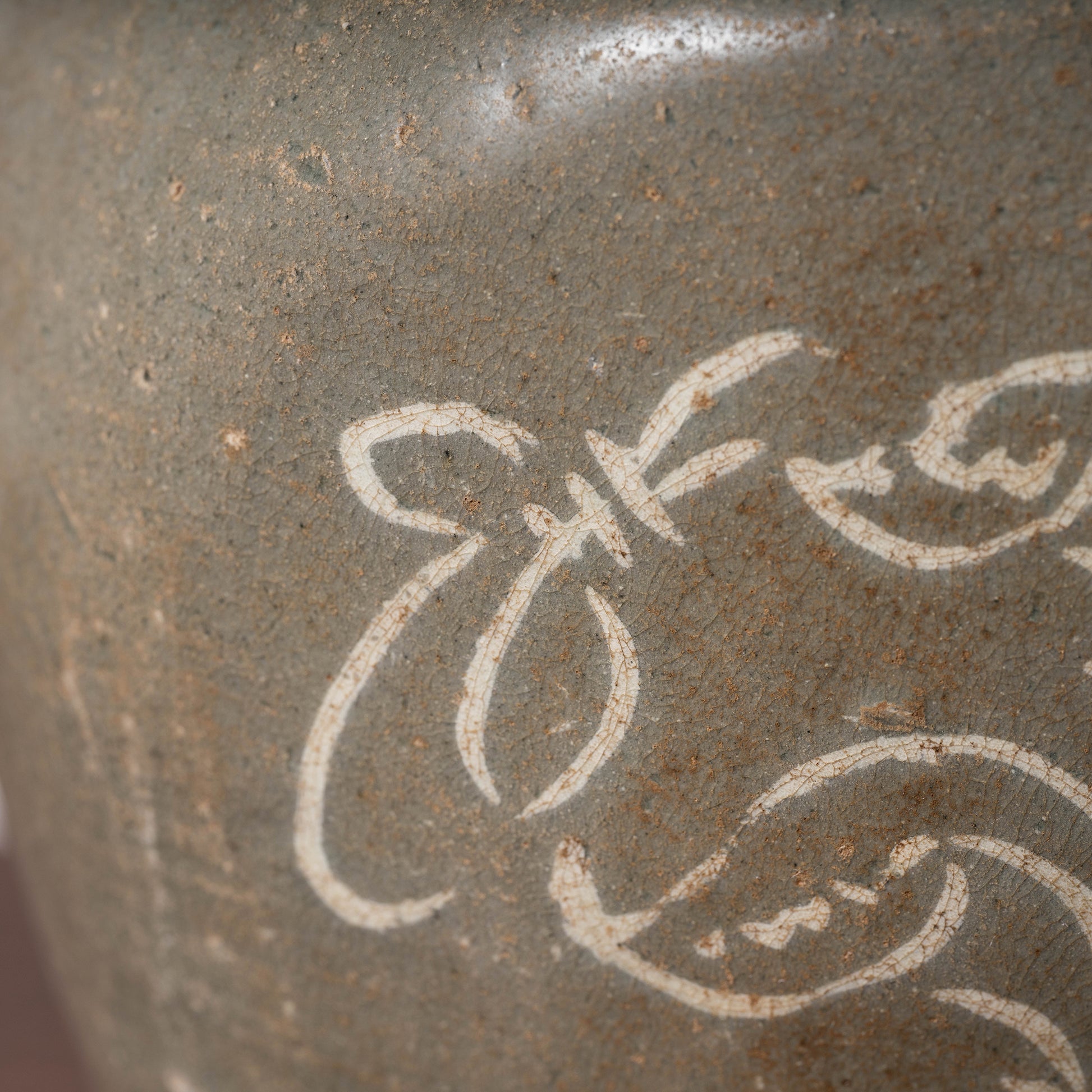 高麗時代中期に焼かれた青磁象嵌の瓶です。