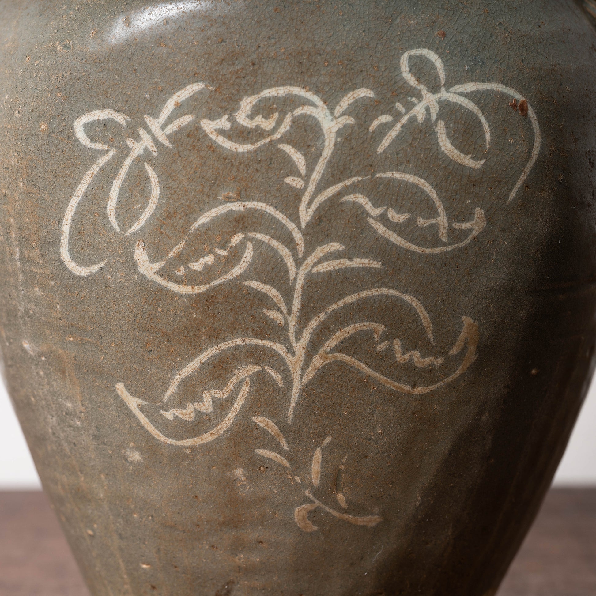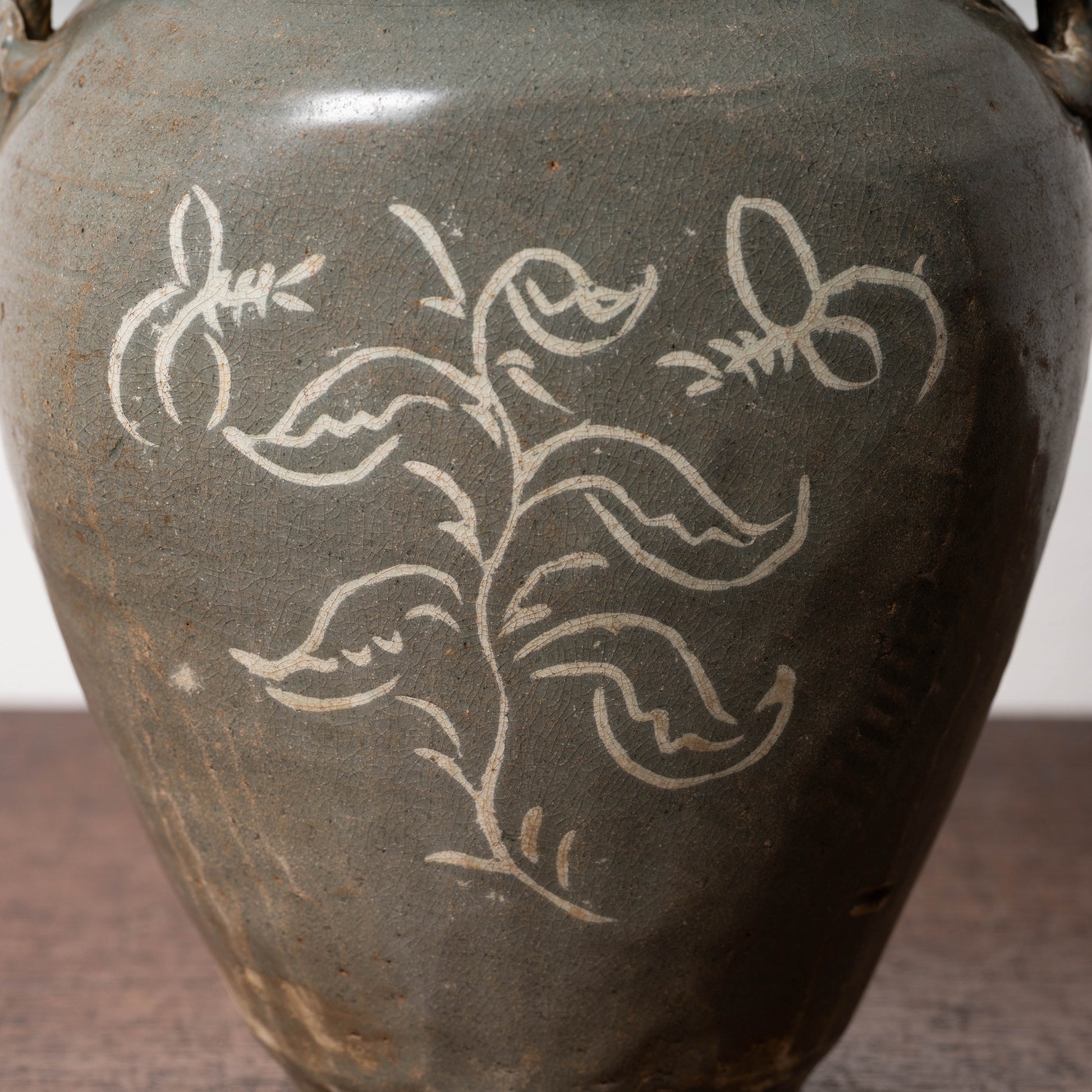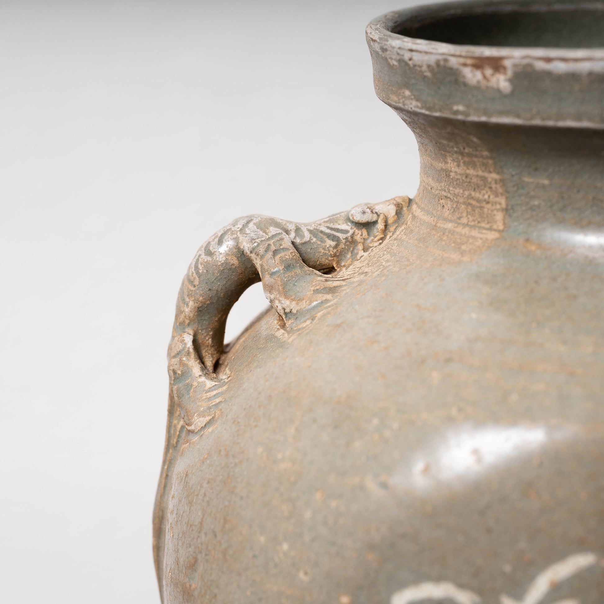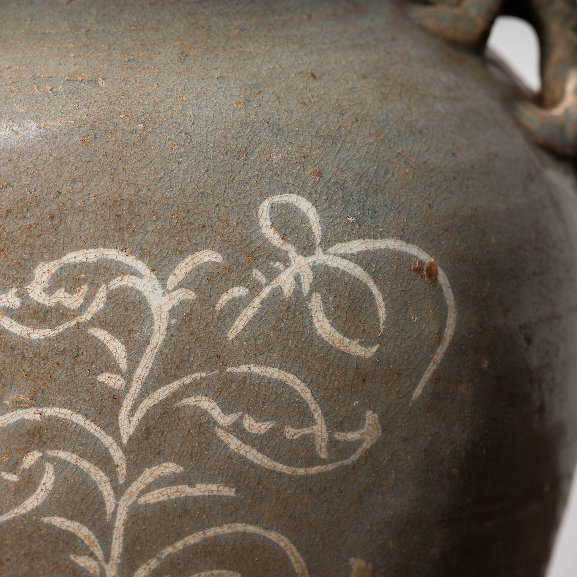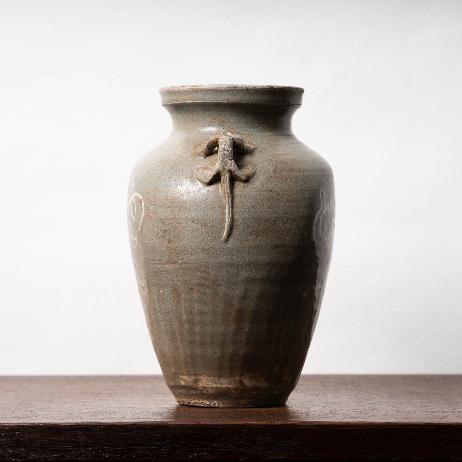 高麗時代中期に焼かれた青磁象嵌の瓶です。
