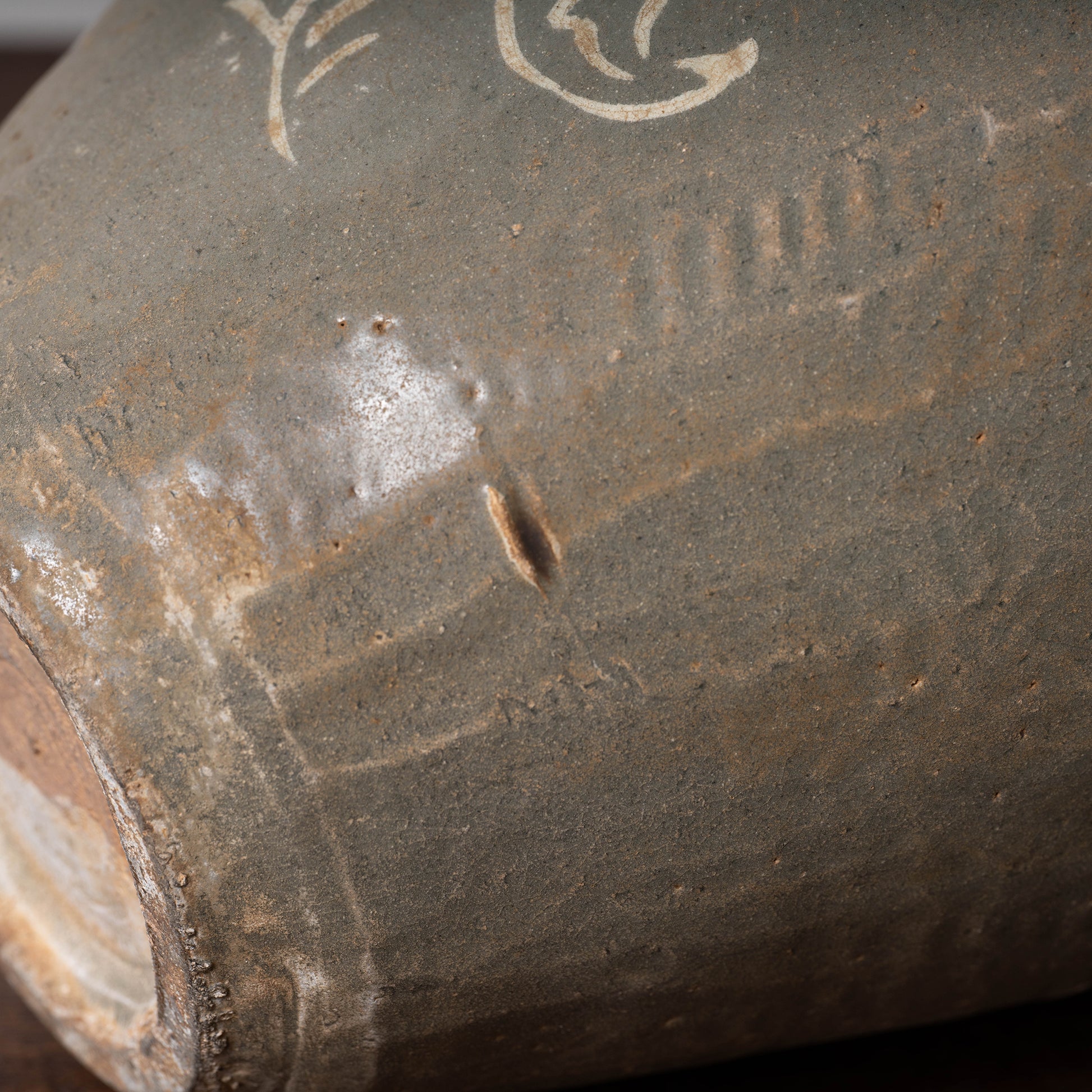 胴の平らな2面にはシンプルな凛とした草花とその周りを舞う蝶が白象嵌にて施されます。