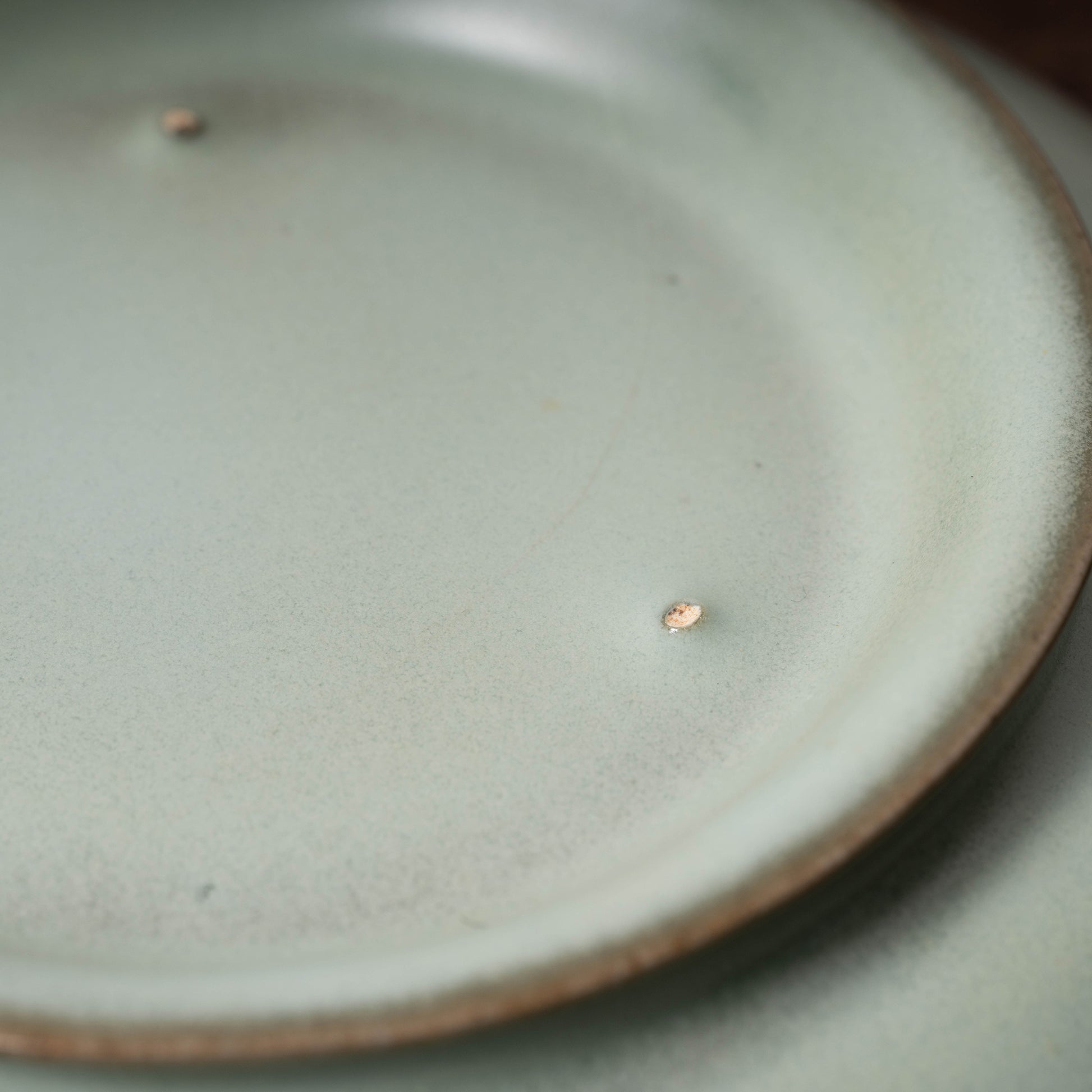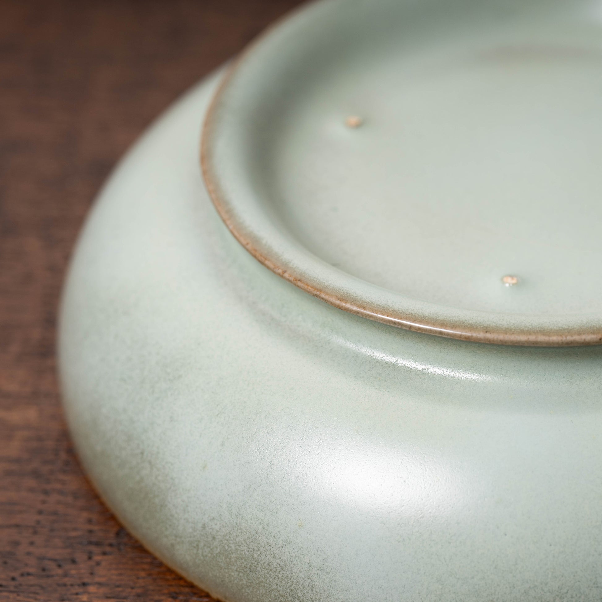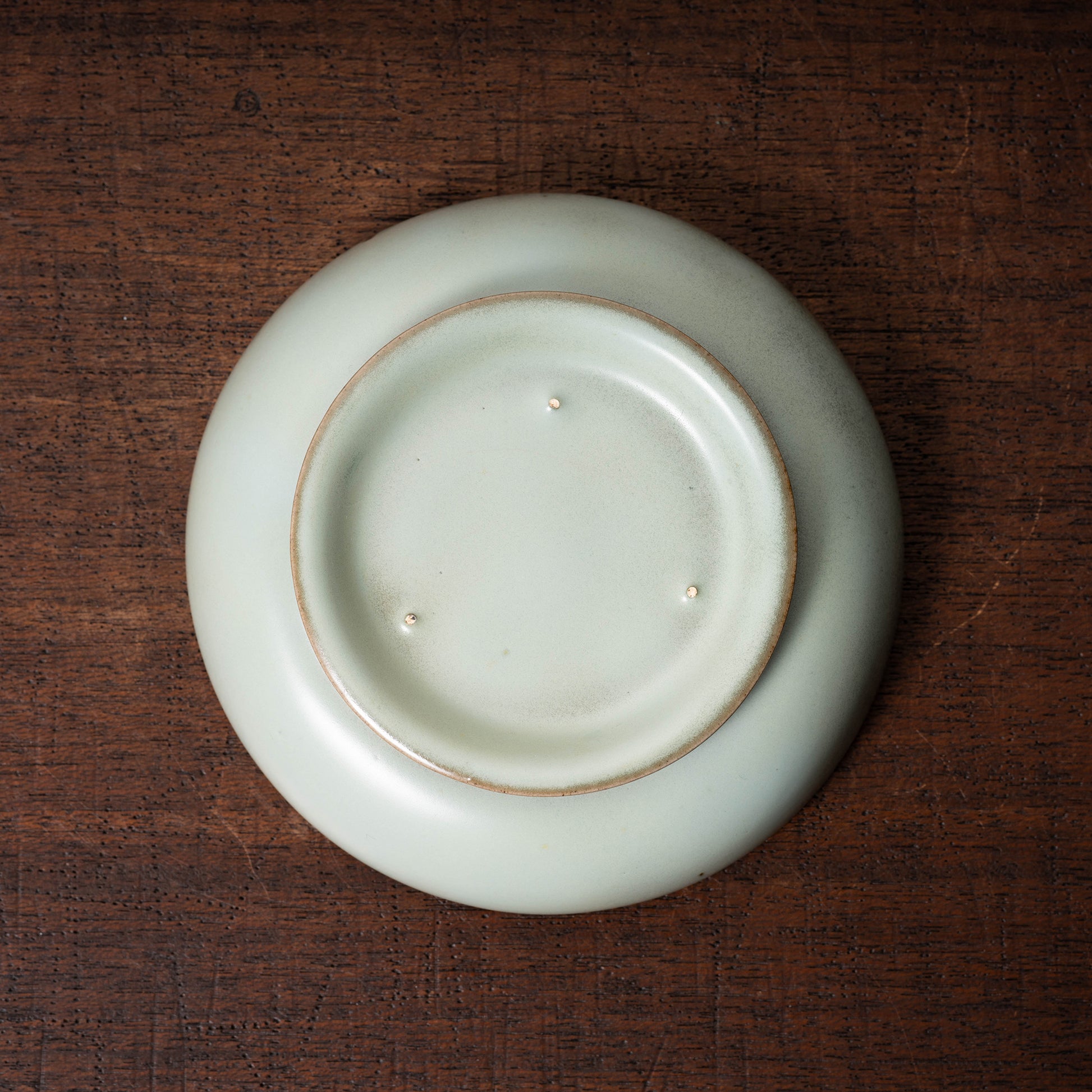 「月白釉」と呼ばれる鈞窯特有の失透性で白味がかかった淡青色の青磁釉がかかります。