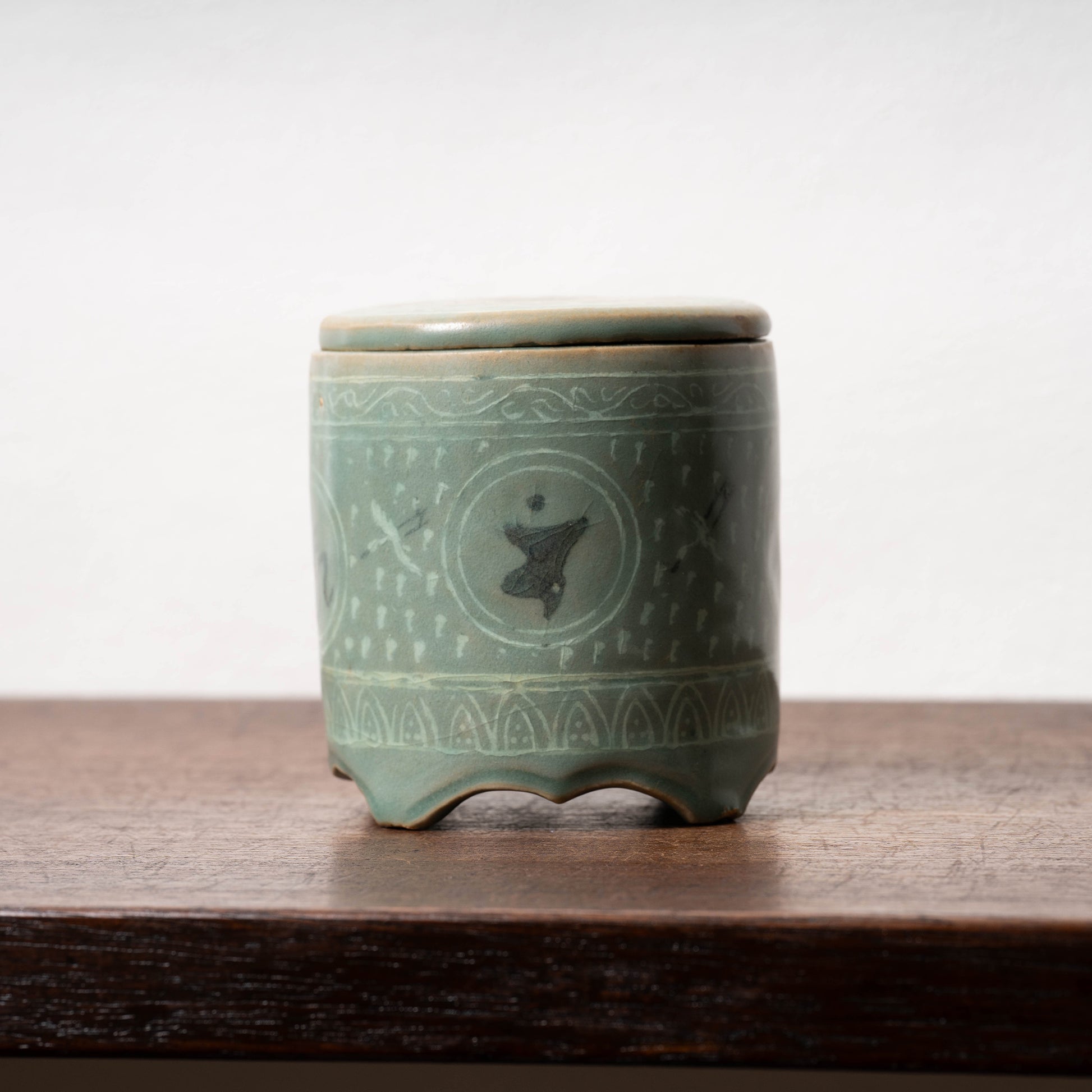 高麗時代に焼かれた青磁の蓋つき壺。
