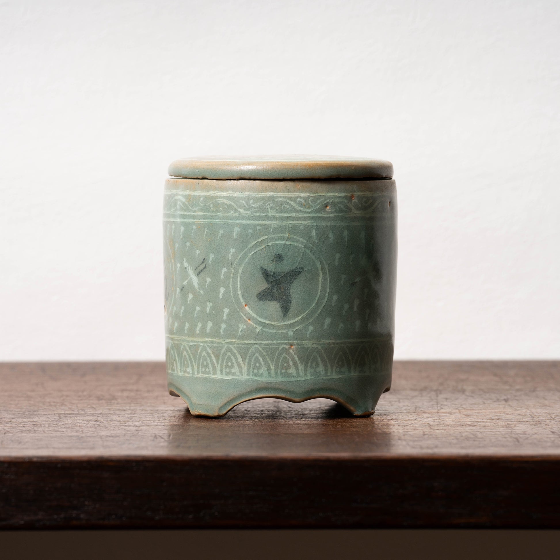 やや大ぶりであり、4つの足があることから蓋を開け香炉としても使用されたと考えらます。