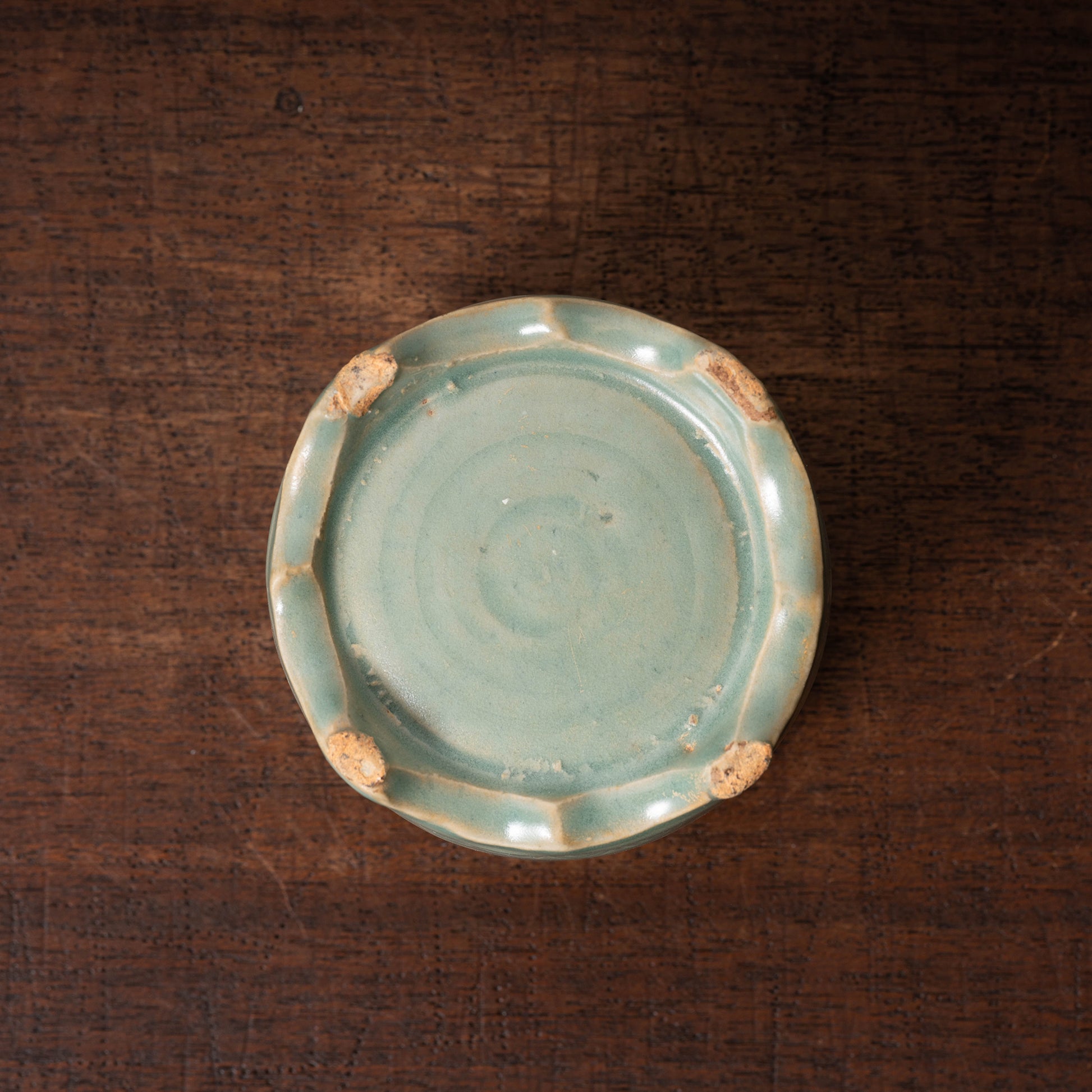 全体に掛かった釉薬は灰緑青色で、一部に貫入が入り良い風合いです。