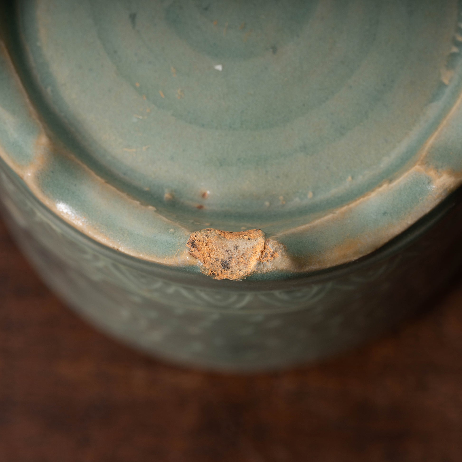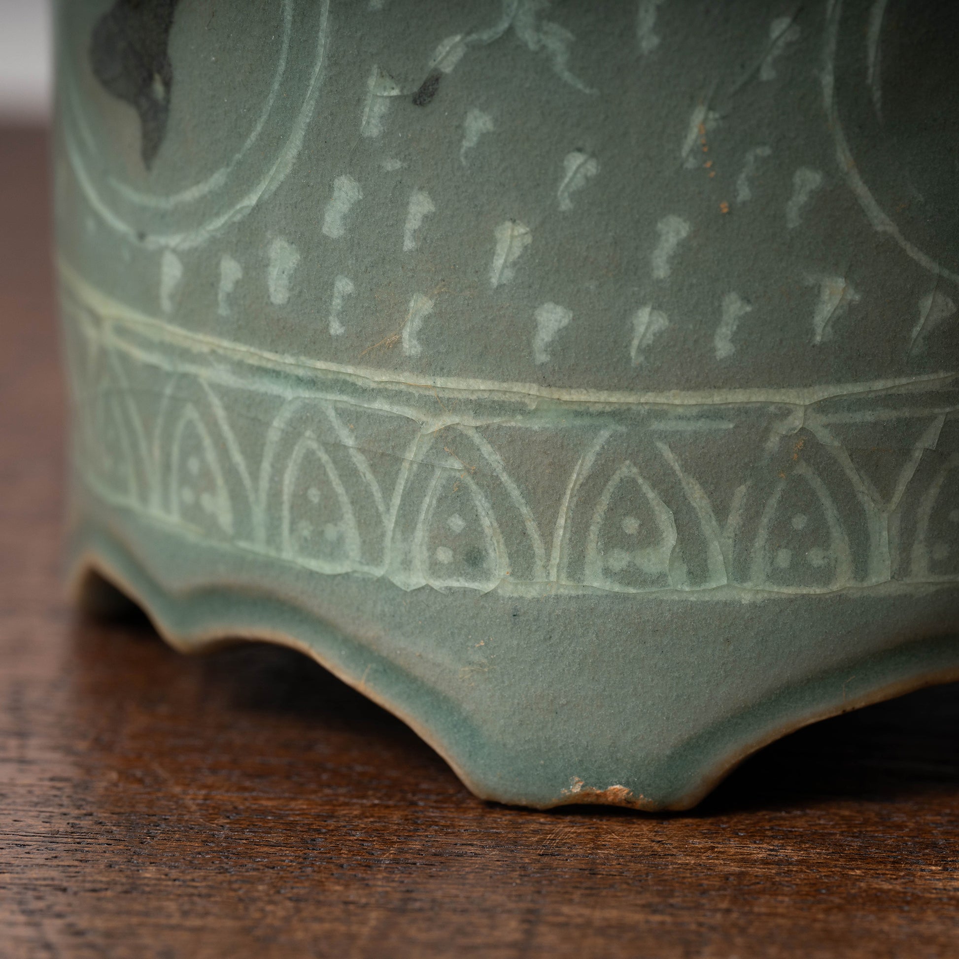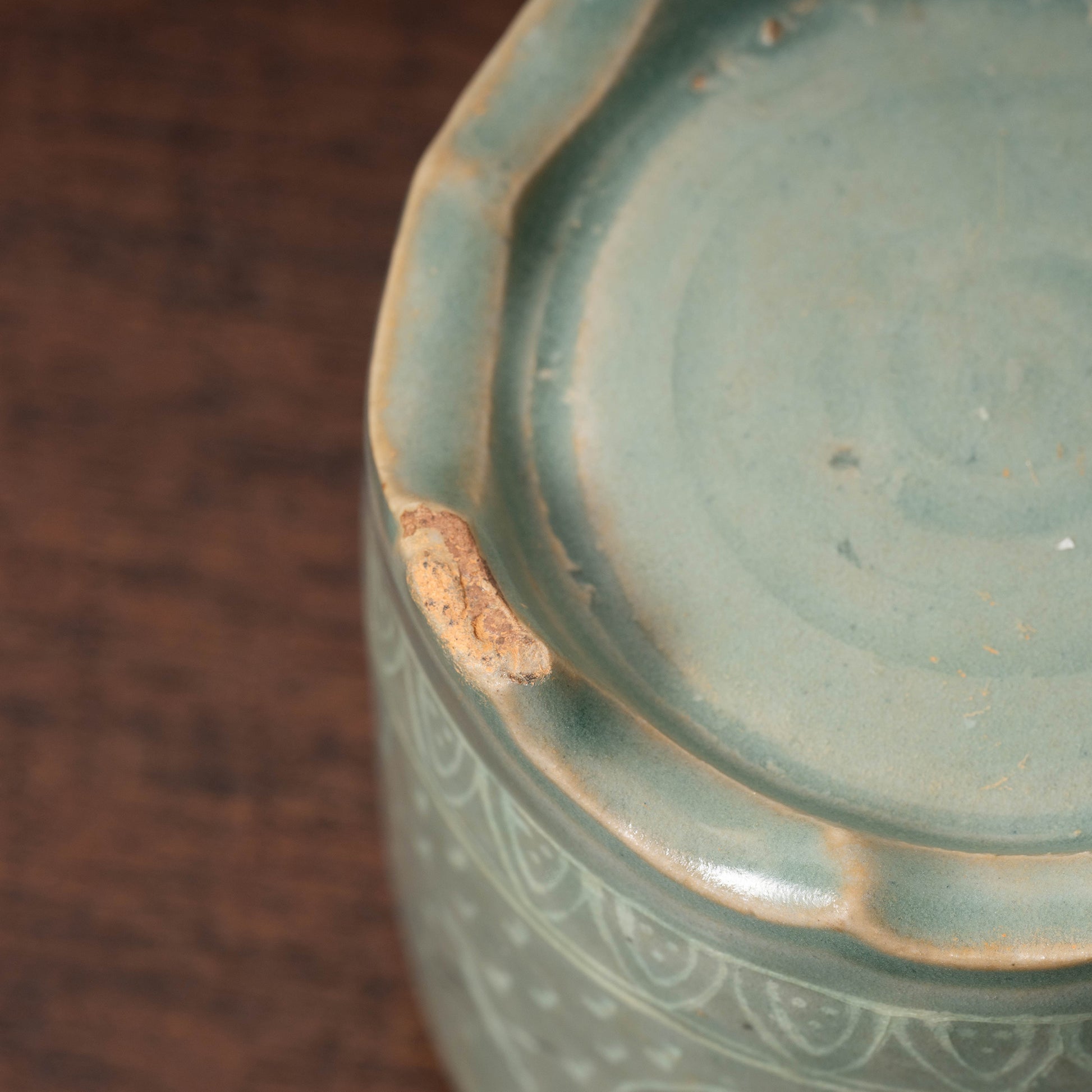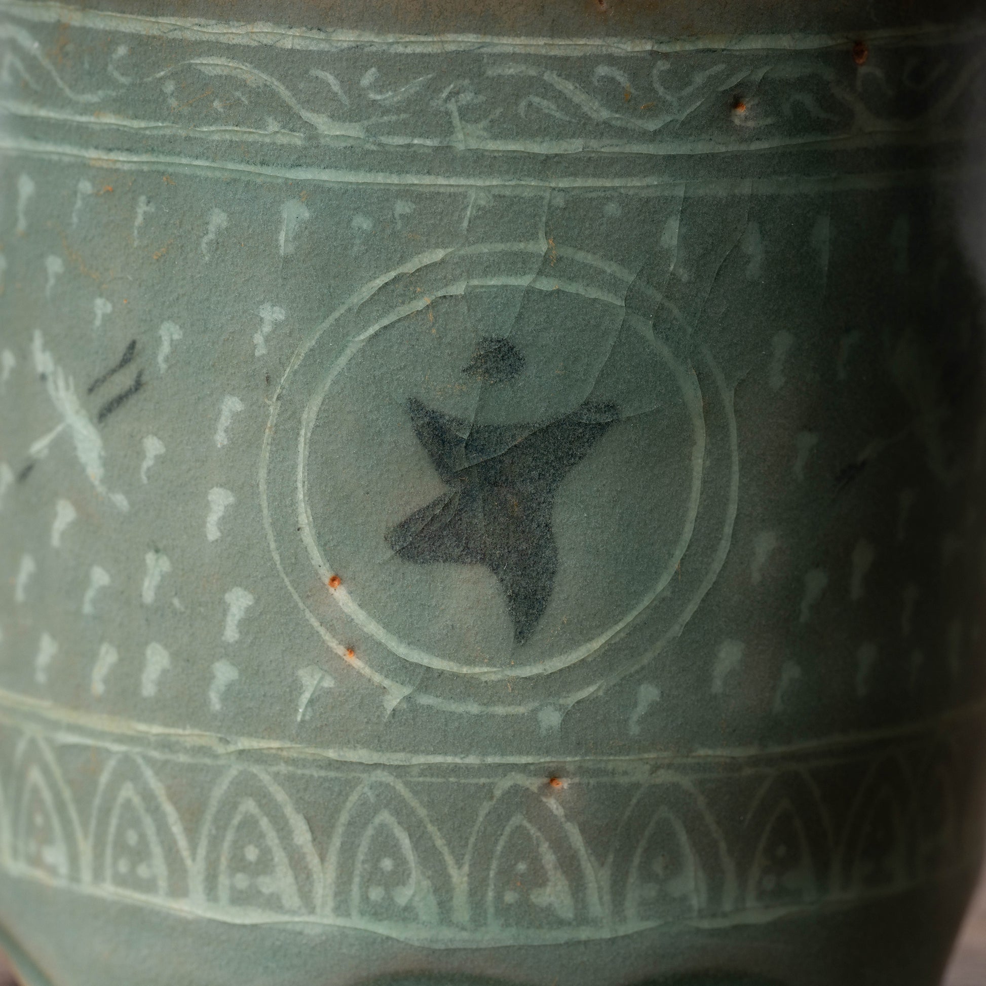 高麗時代には瓦や青銅器に使用された遺例はありますが、青磁象嵌に使用されるのは大変珍しいです。