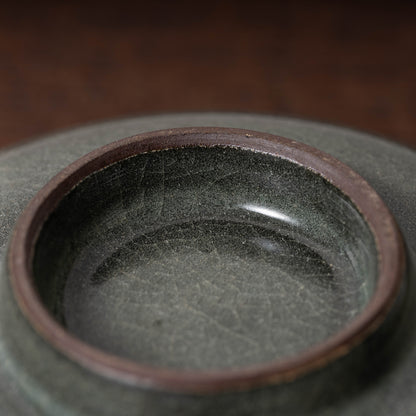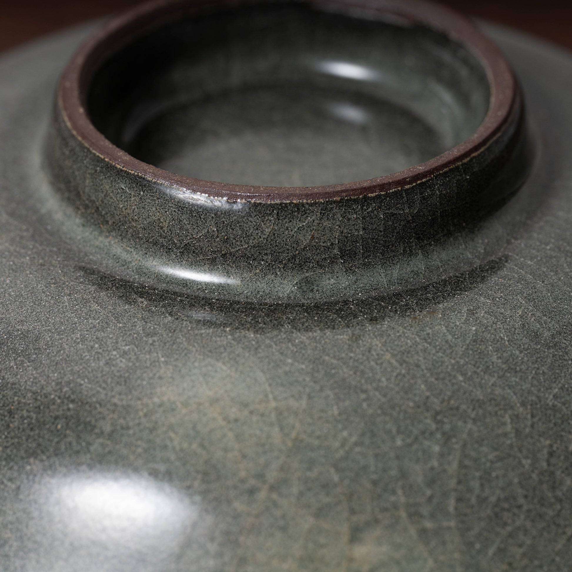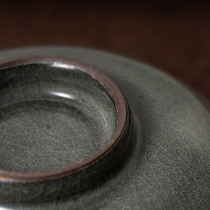 南宋官窯らしく黒い土を薄く形成し、高台畳付け1mm程度に斜めに薄く削り込まれ、口の端は釉薬を含めても2mm程度のいわです。