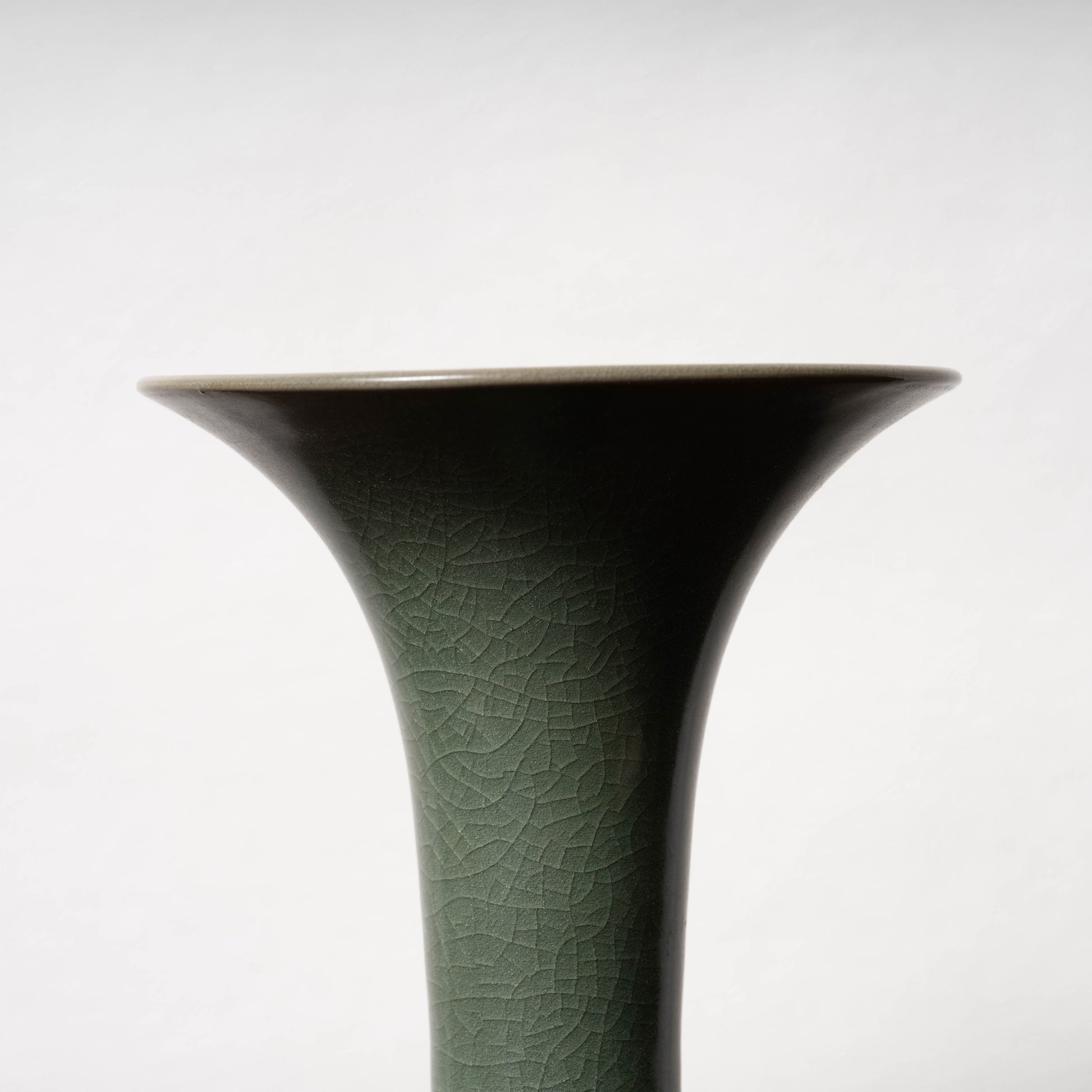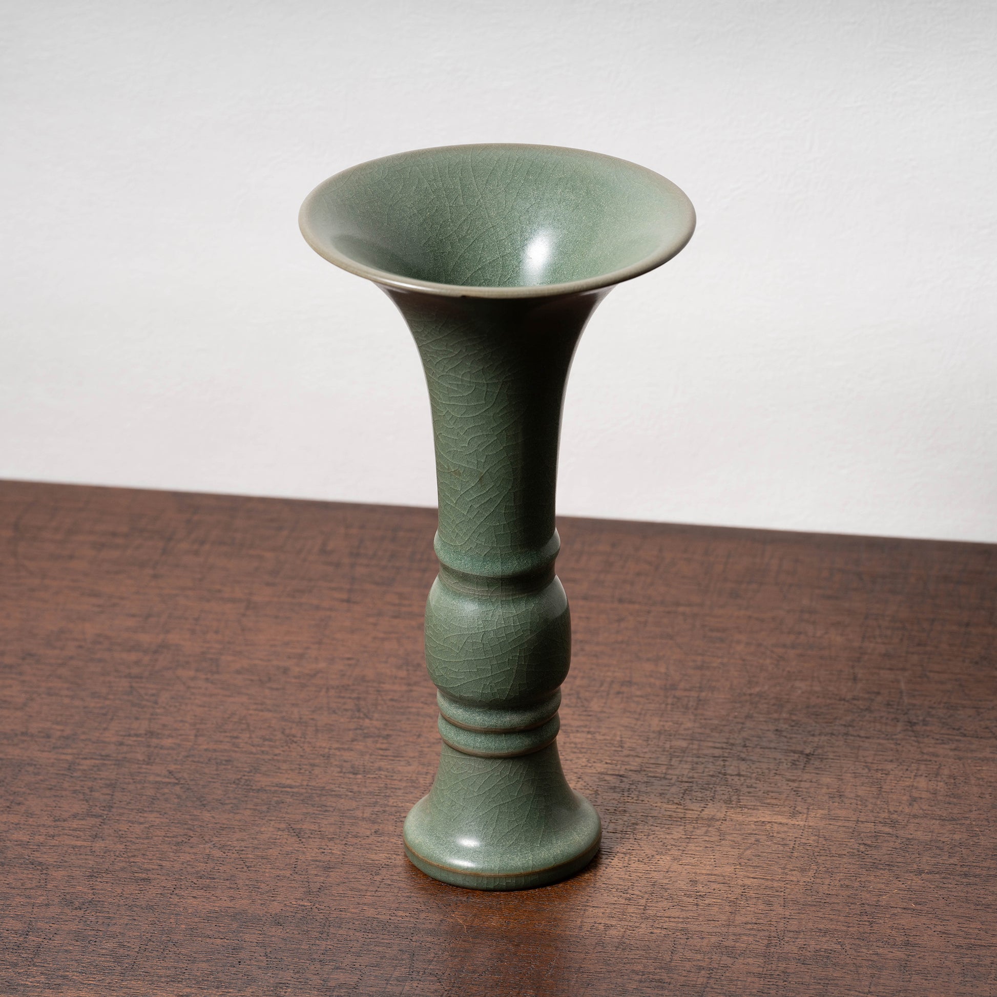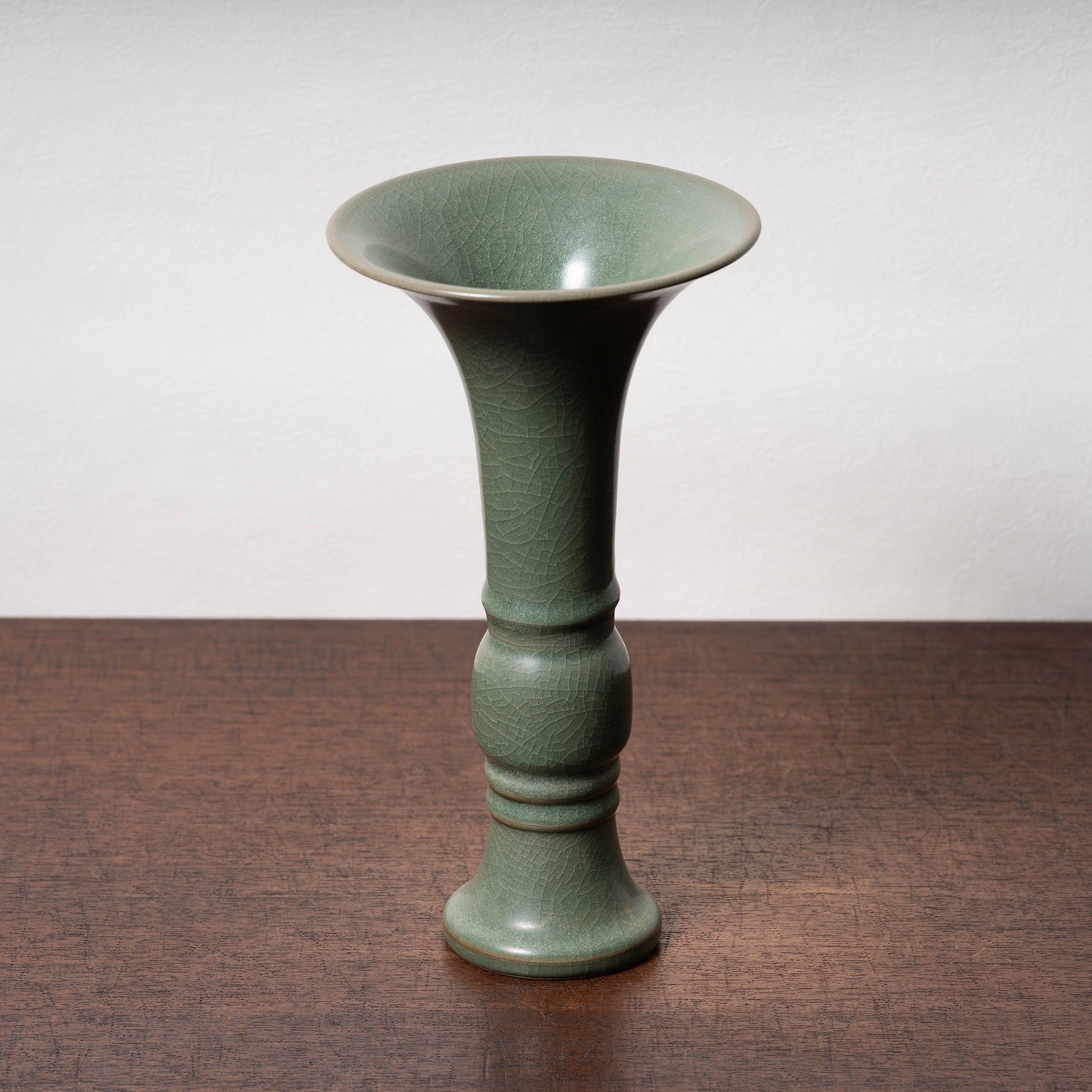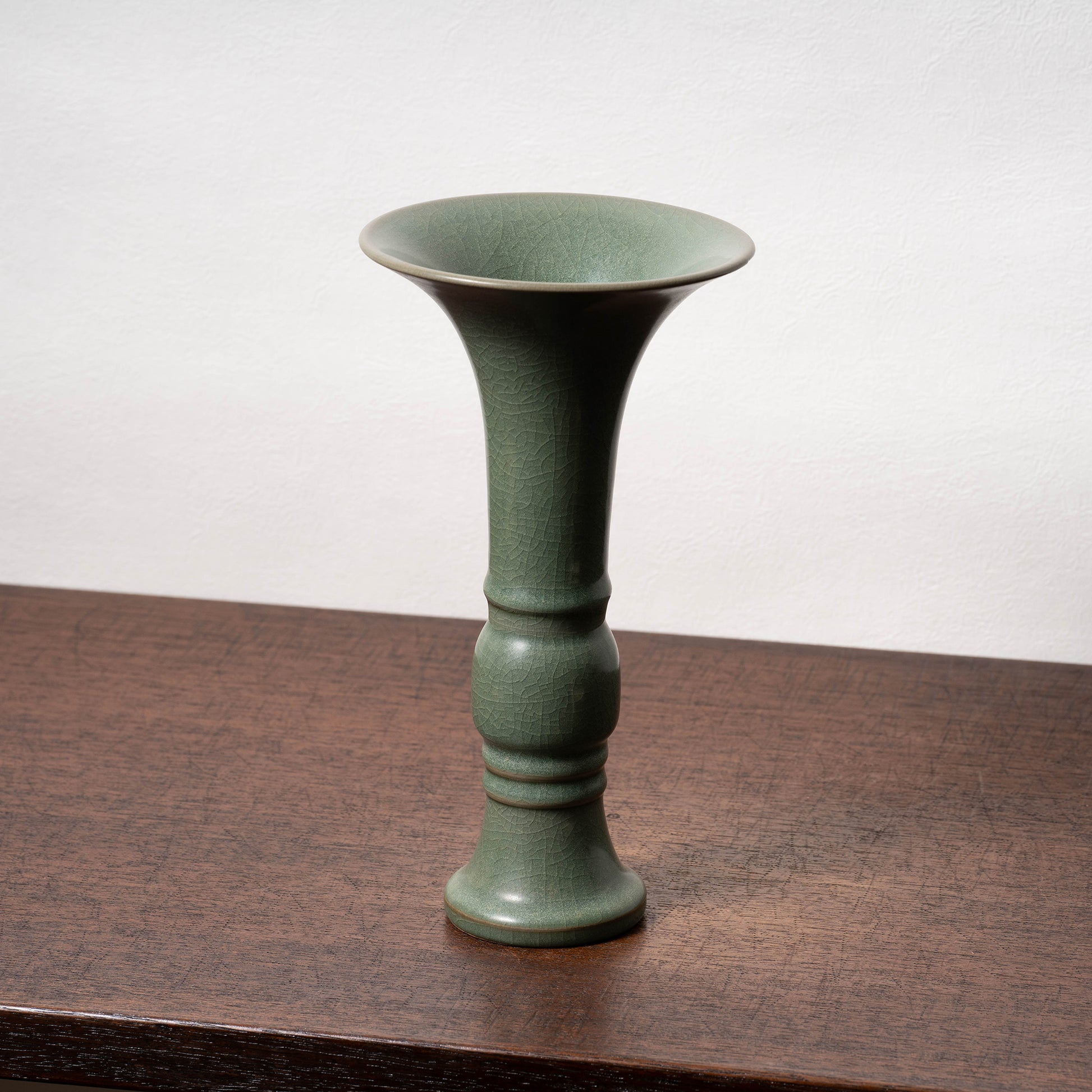陶磁器製の觚式瓶といて背が高くこれほどに胴が細い品はあまり見られません。