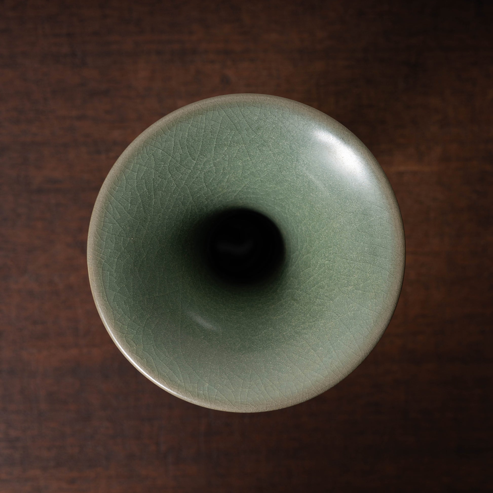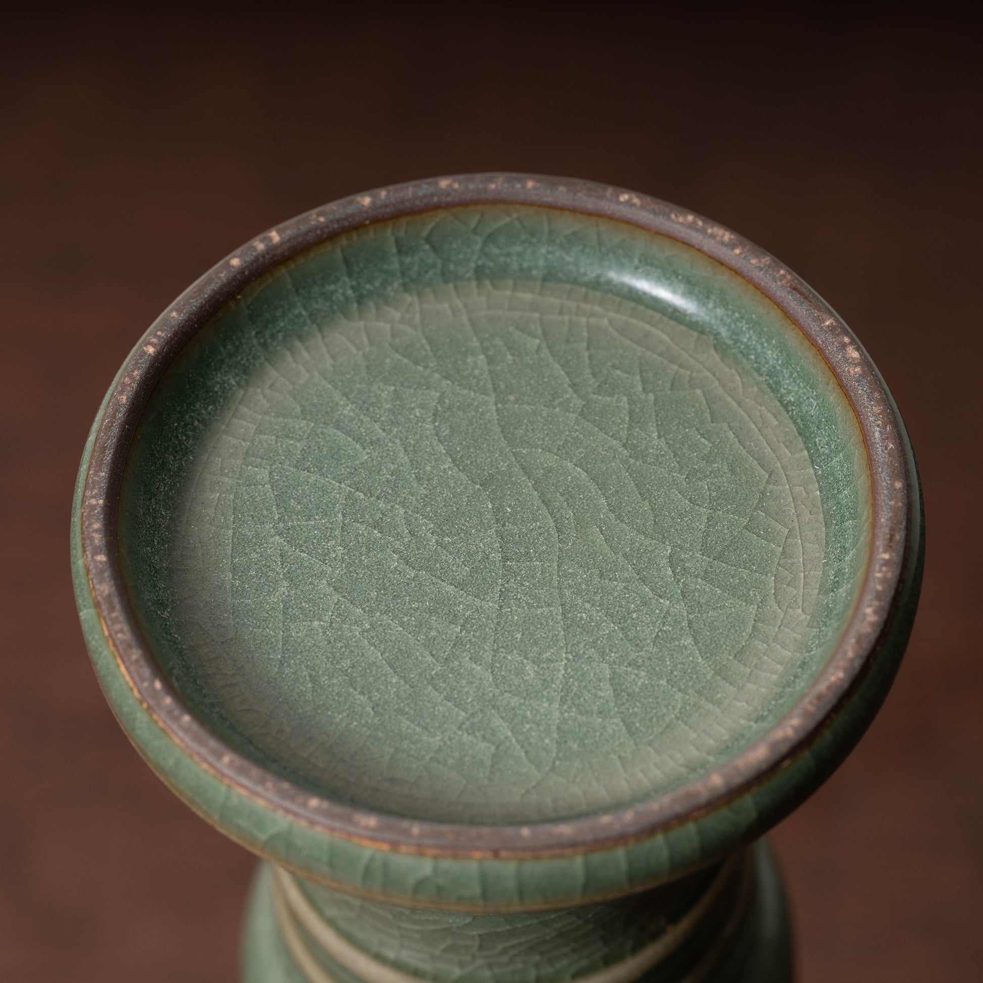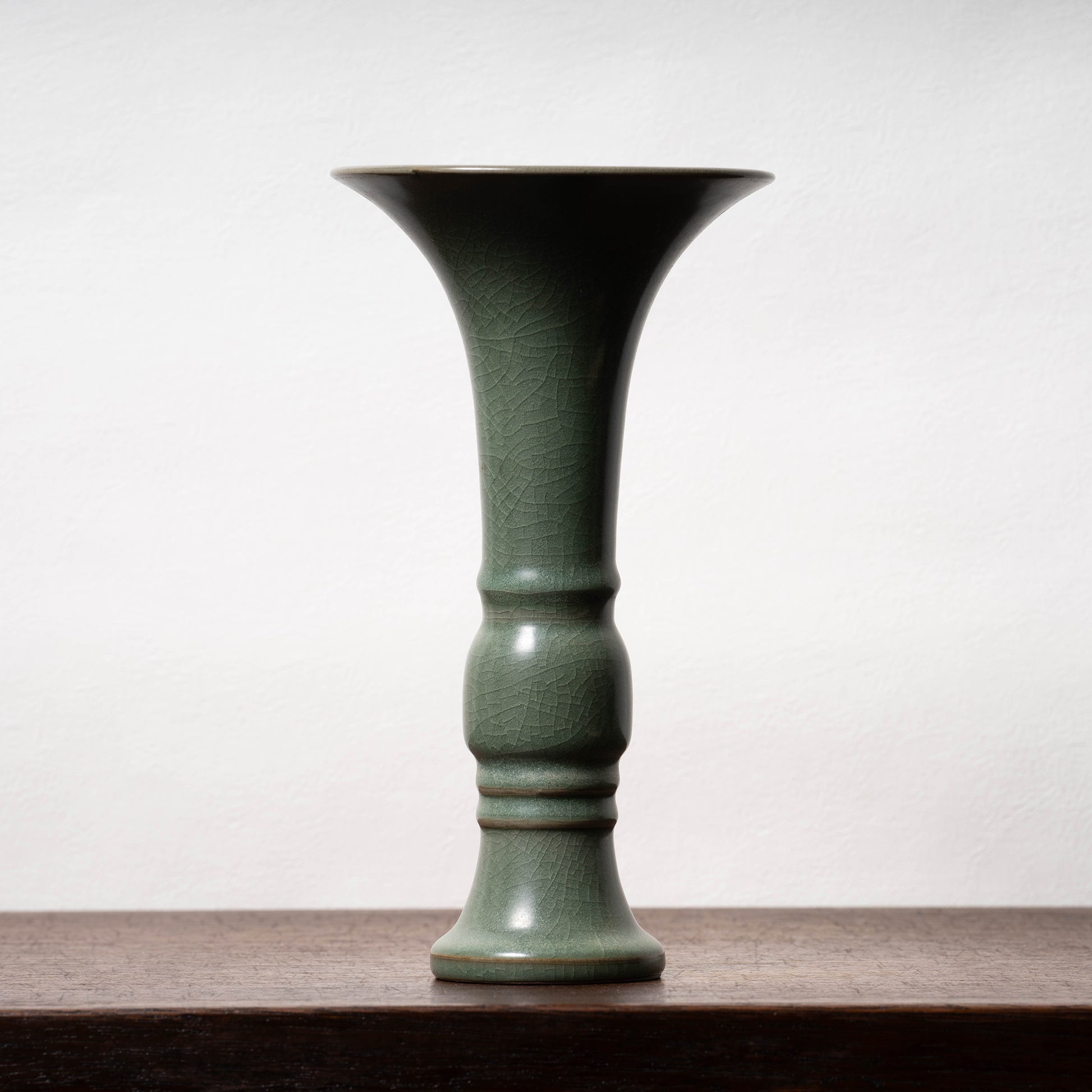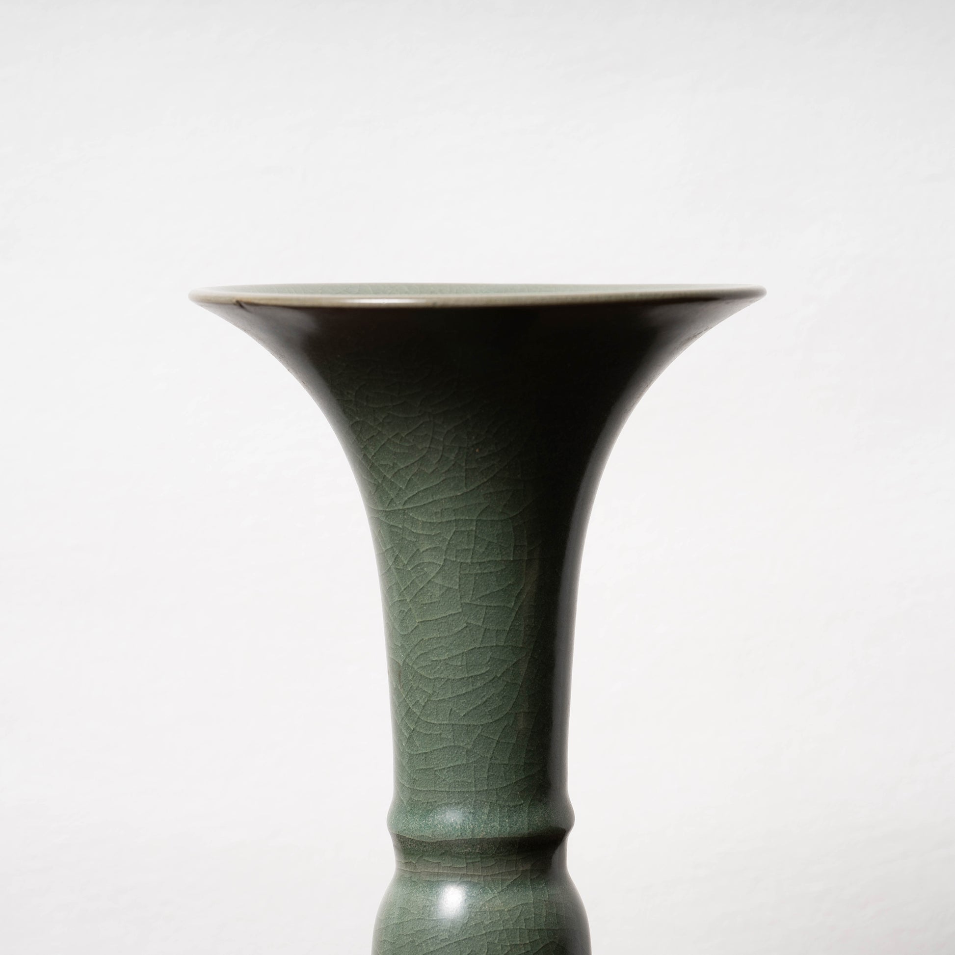 陶磁器製の觚式瓶といて背が高くこれほどに胴が細い品はあまり見られません。