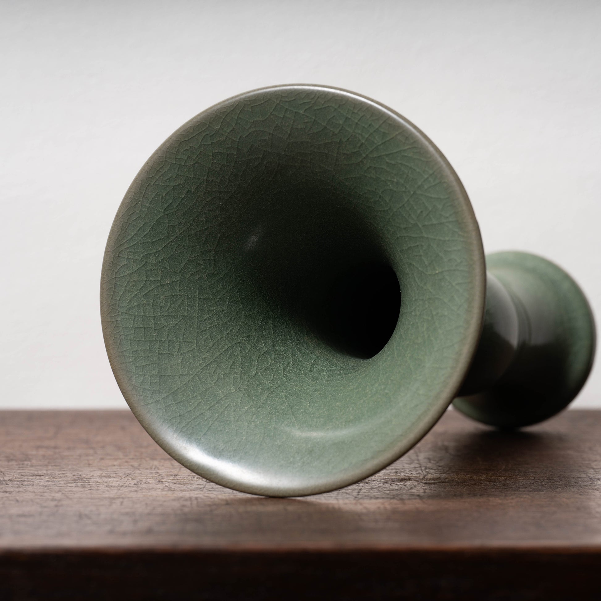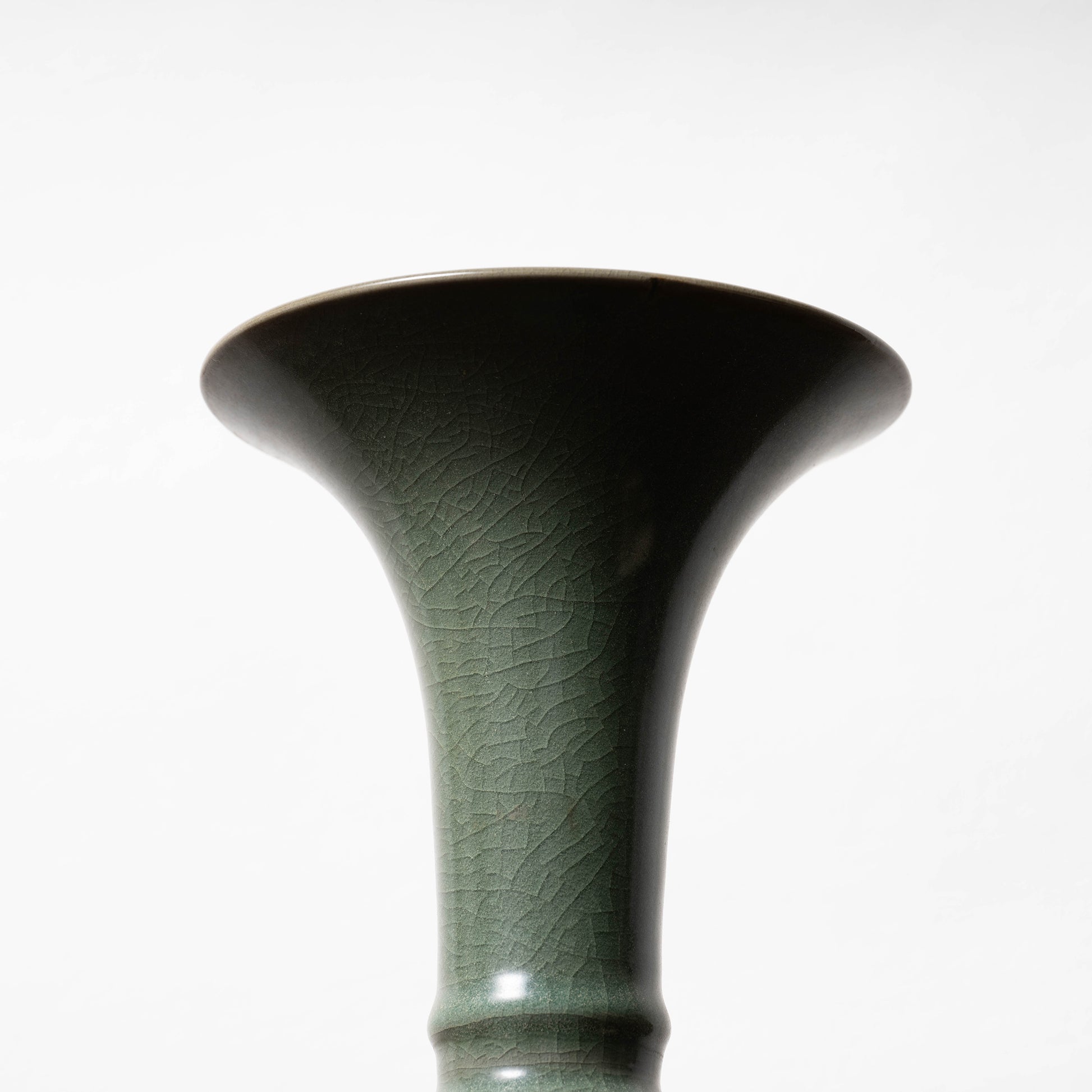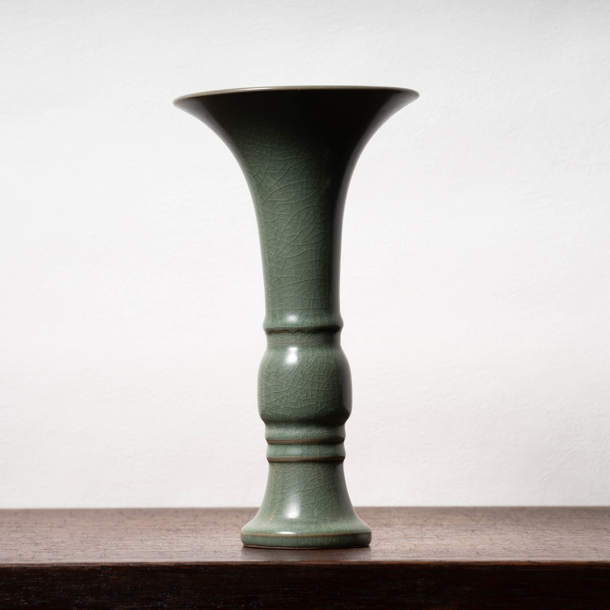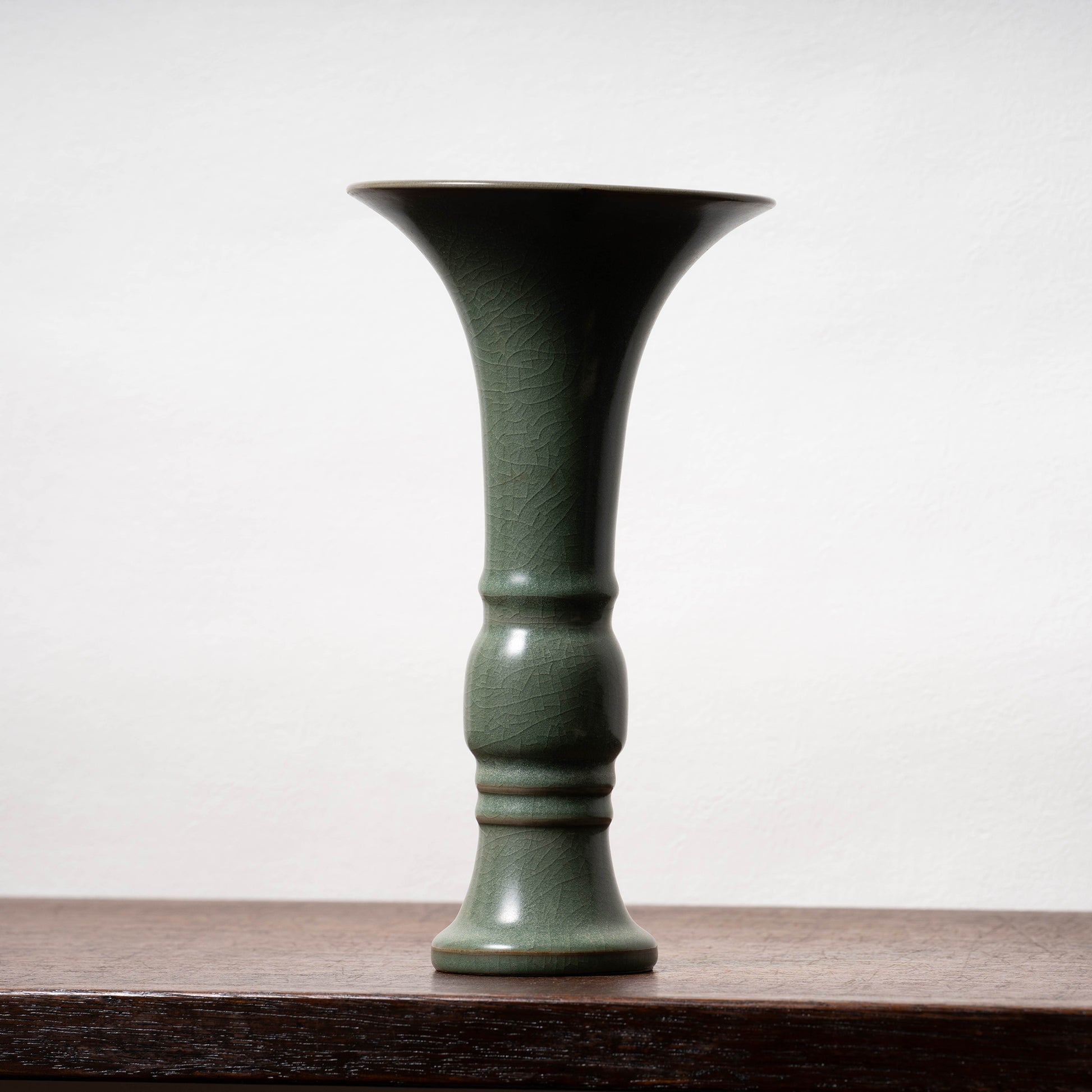 陶磁器製の觚式瓶といて背が高くこれほどに胴が細い品はあまり見られません。