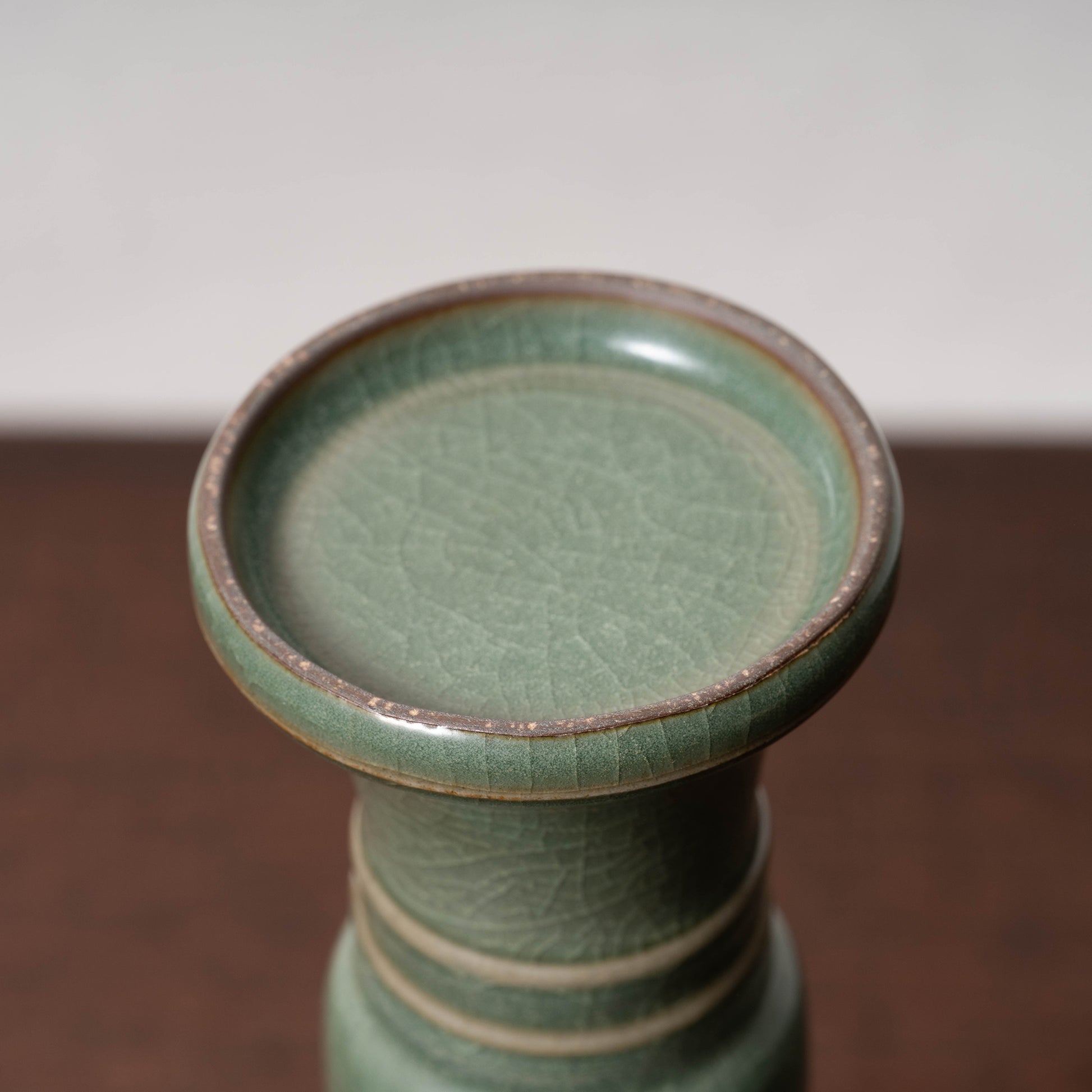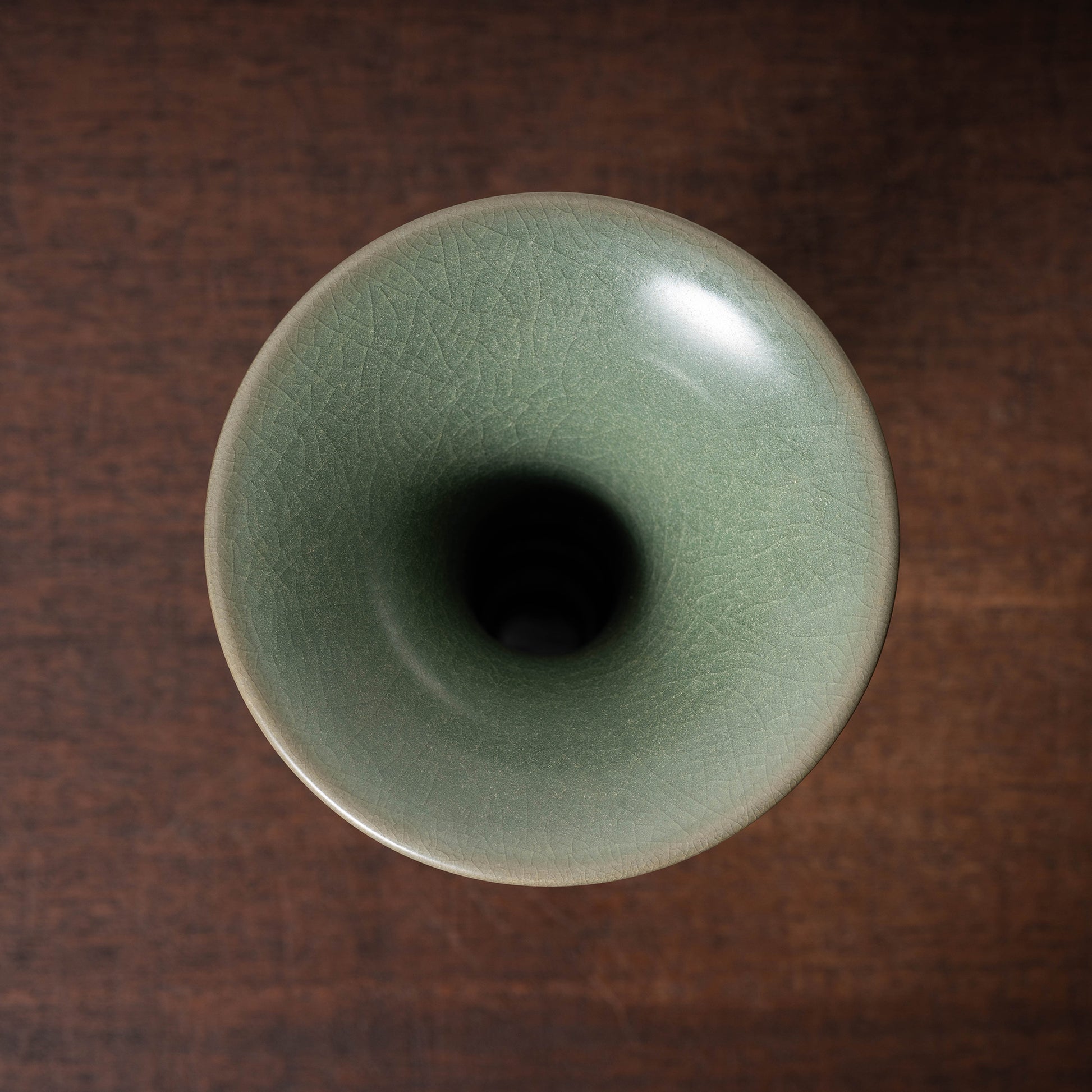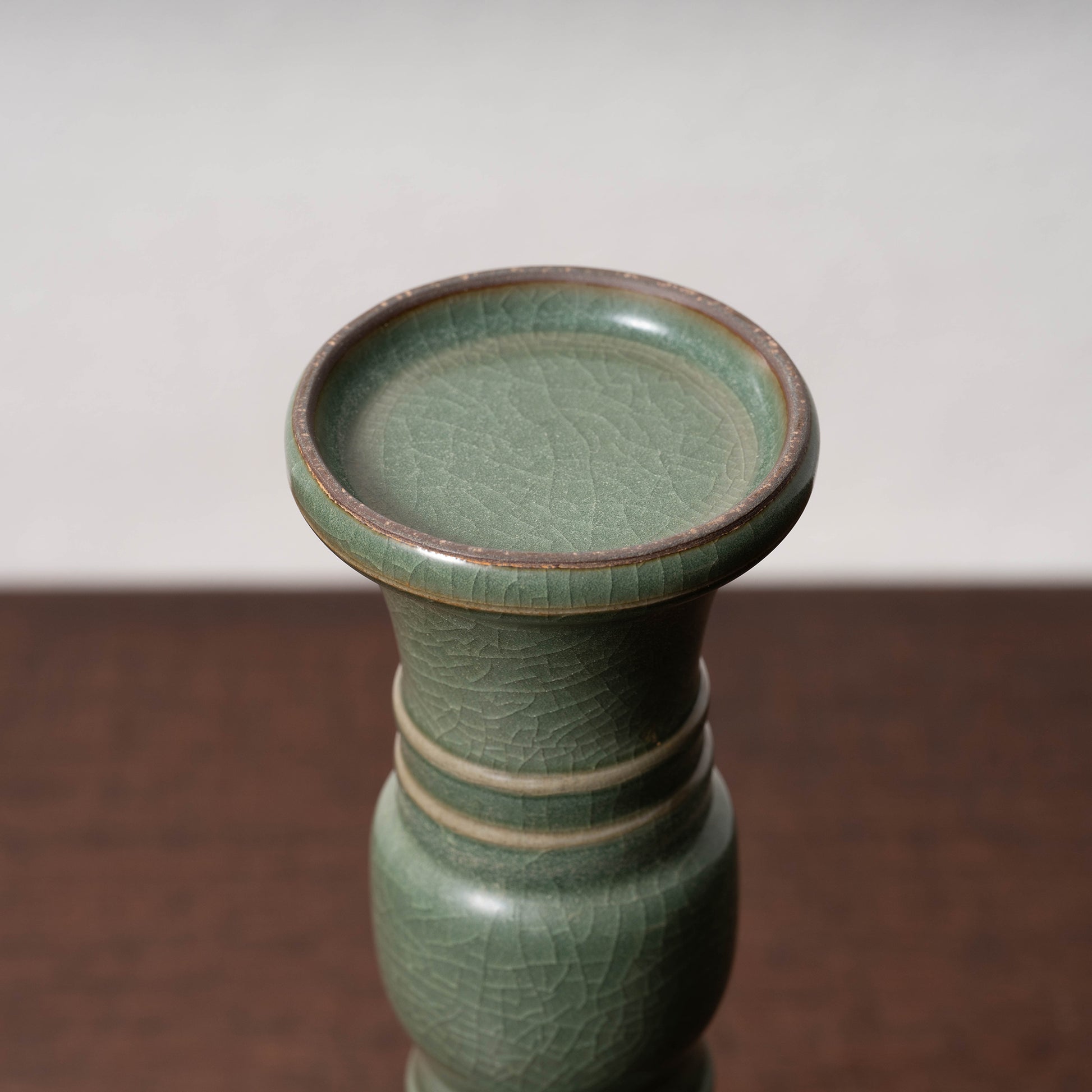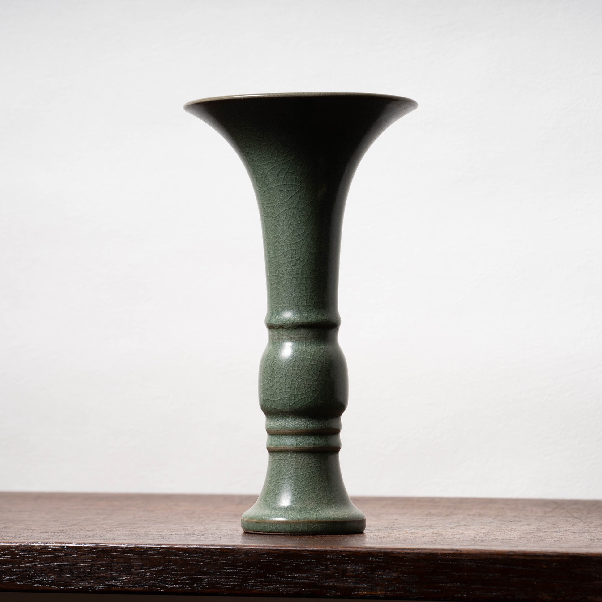 陶磁器製の觚式瓶といて背が高くこれほどに胴が細い品はあまり見られません。