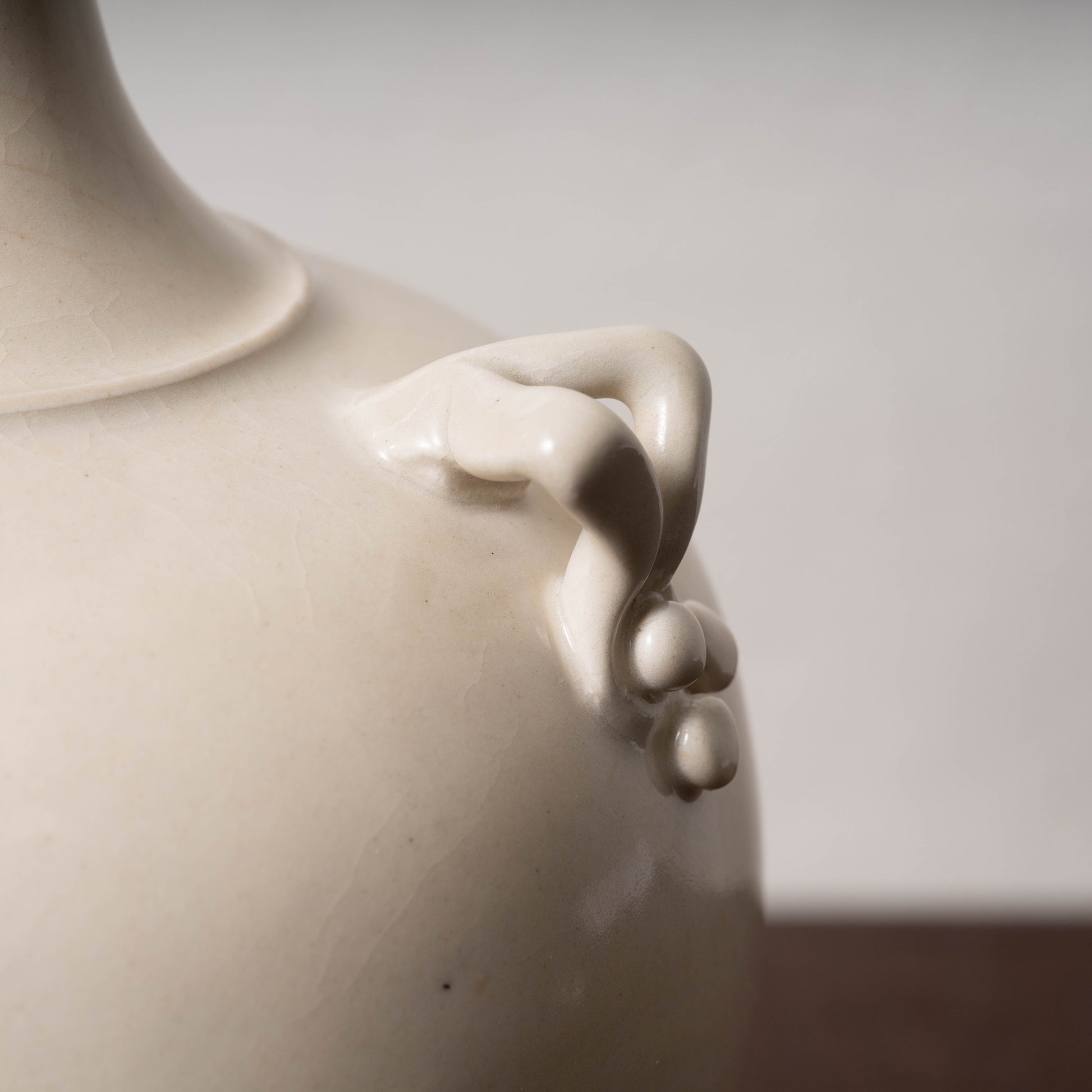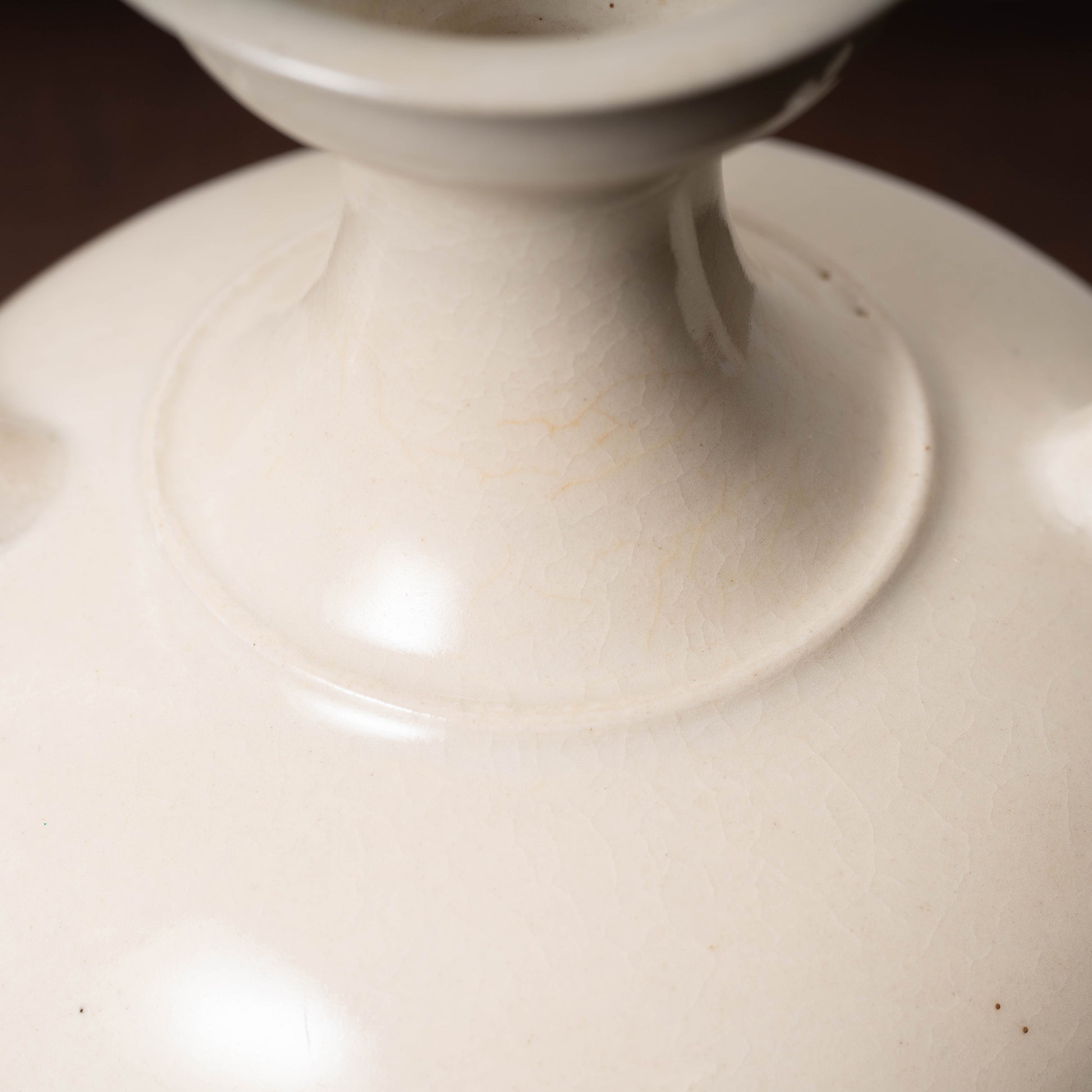 肩の張ったどっしりとした胴から、首の根本に段差をもち、力強くくびれます。