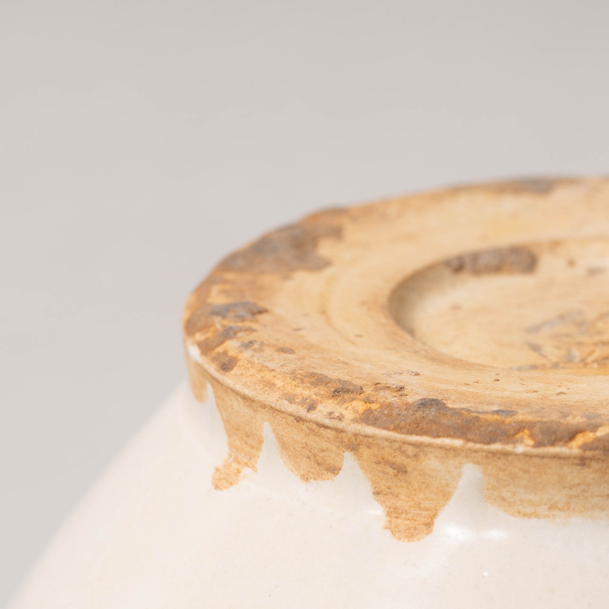 半透明の釉薬を外側全体に丁寧に掛け、内面は無釉で土の様子を見ることができます。