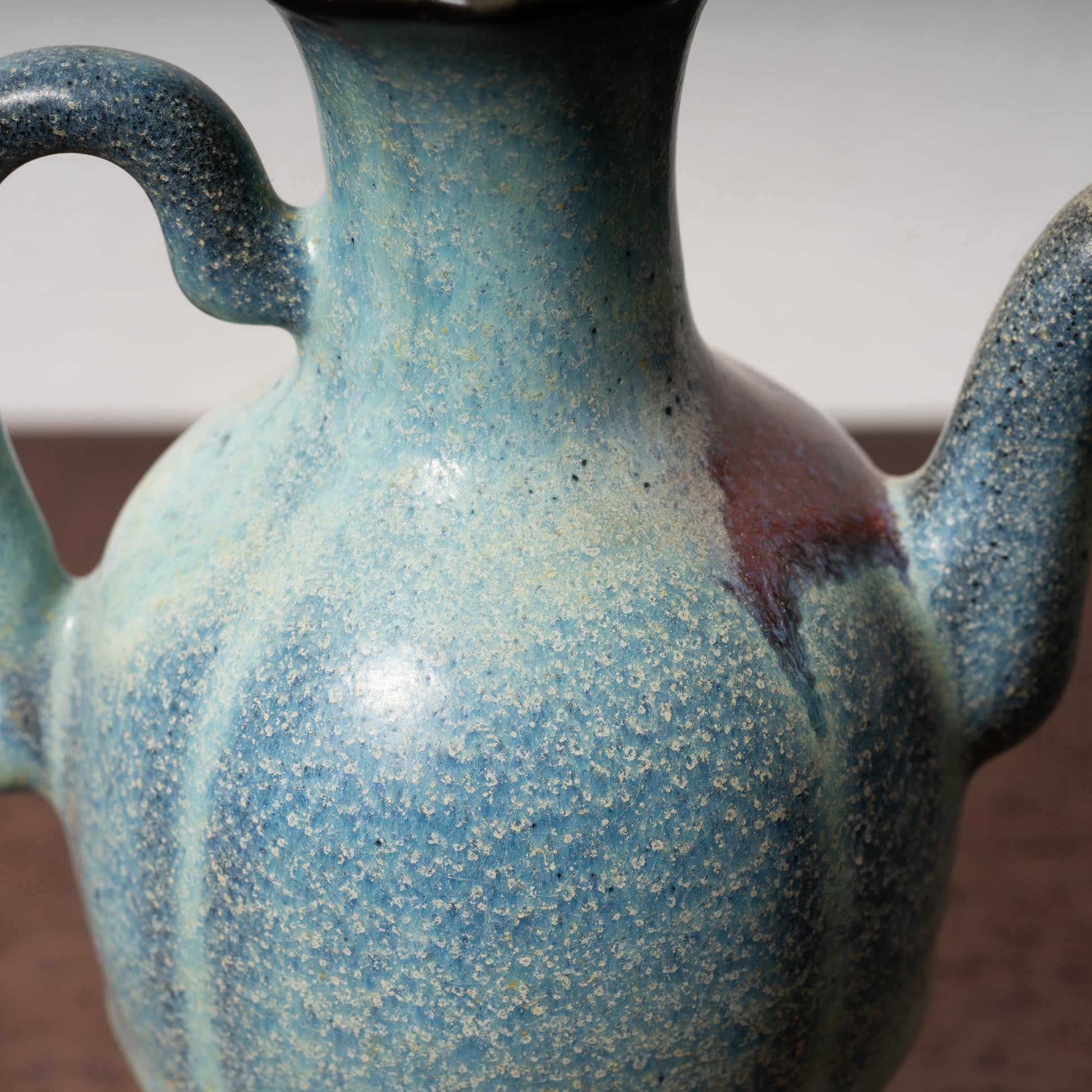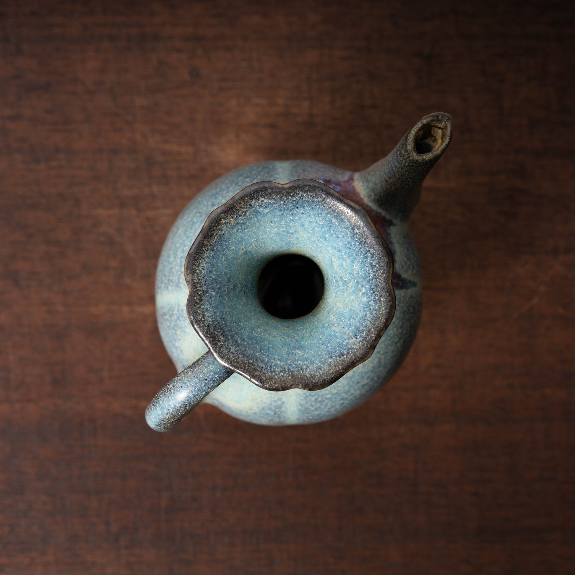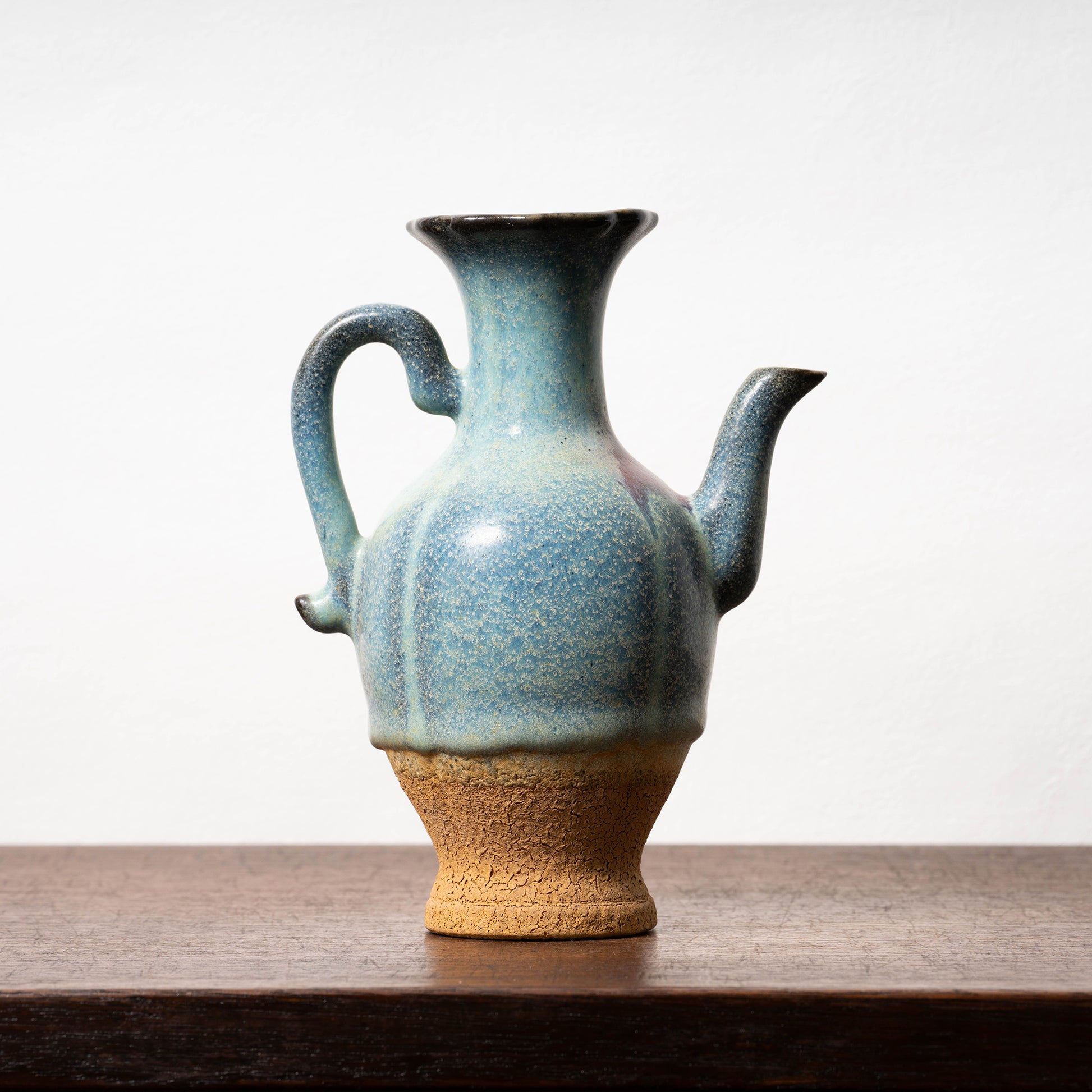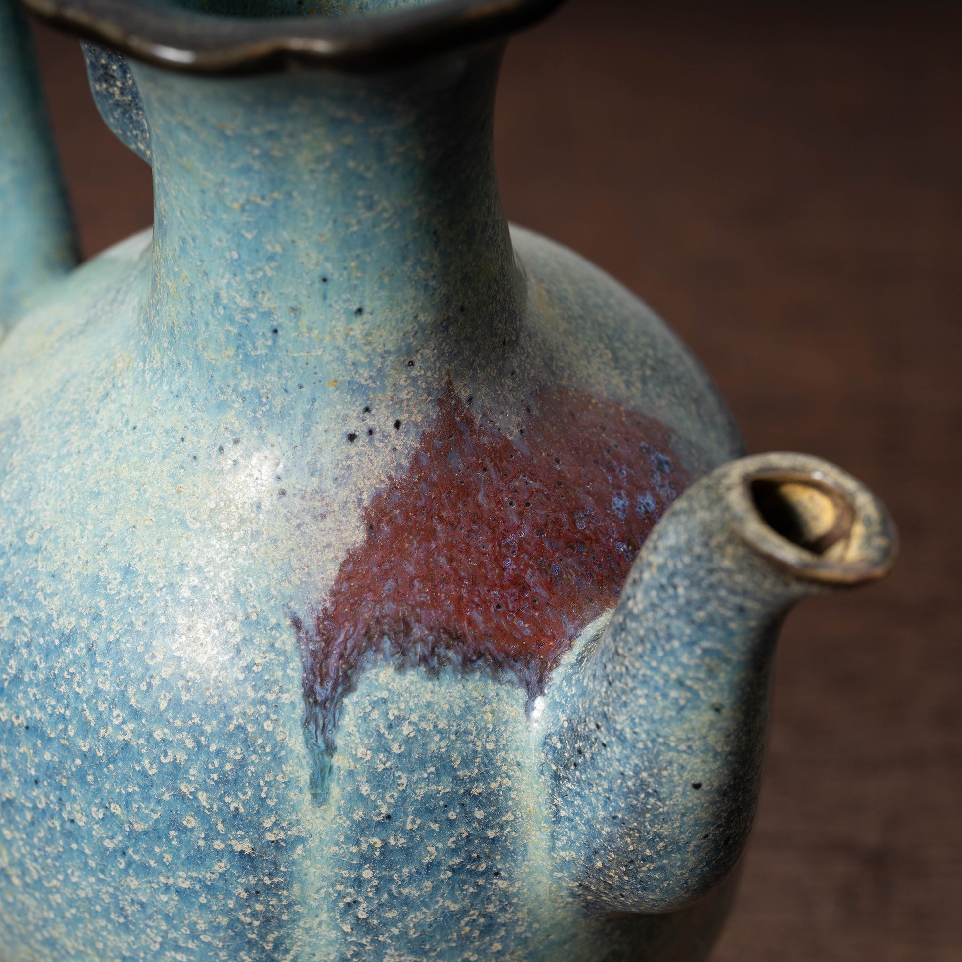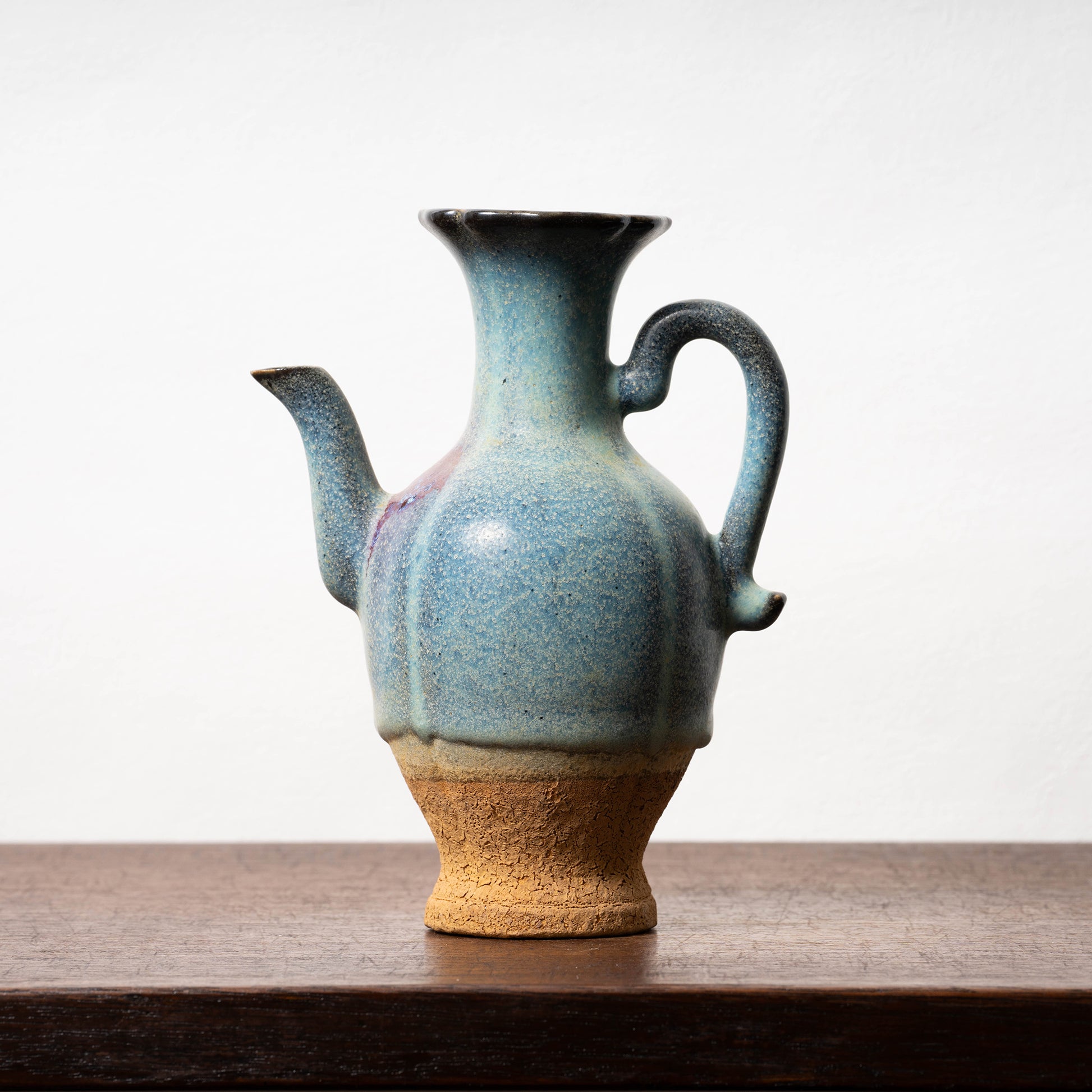 北宋 鈞窯 澱青釉紫斑瓜棱花口水注