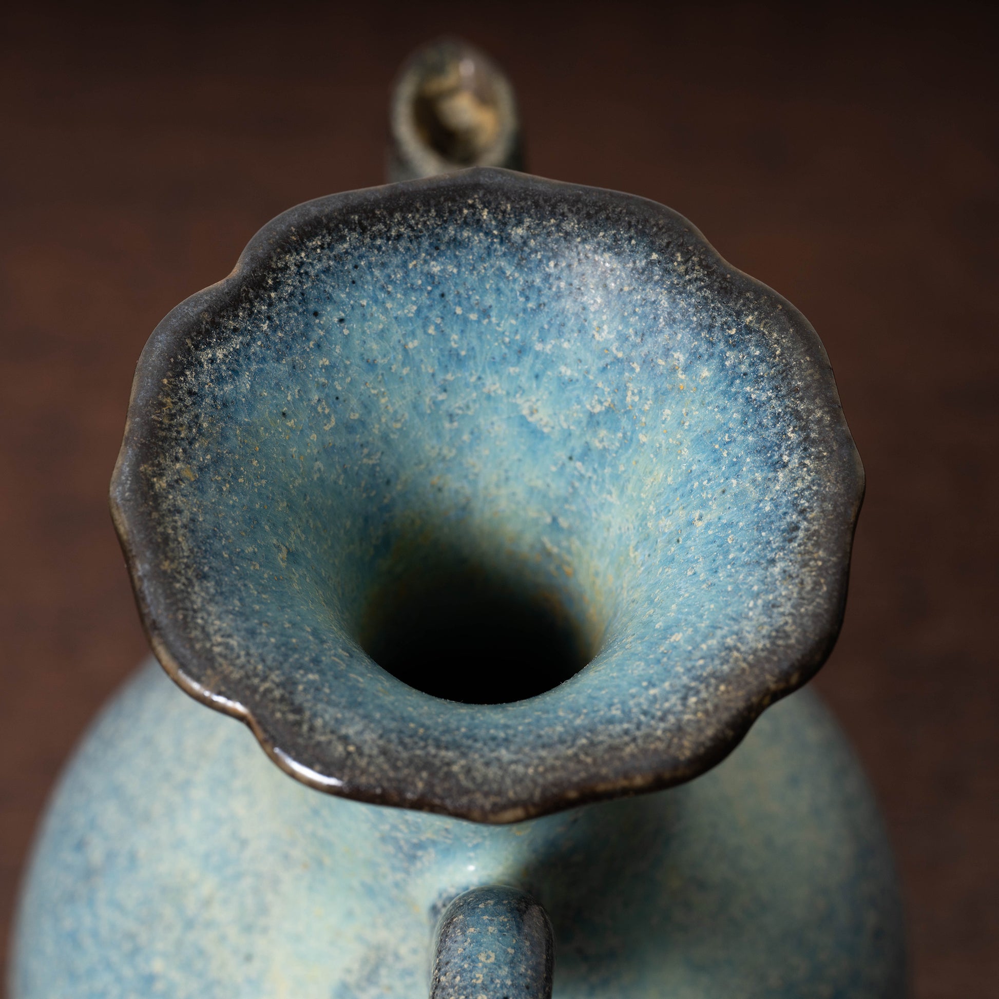 鈞窯の澱青釉の品の中でも比較的初期の品であり、釉薬の表面は全体的にカセがございます。しかし古い時代を感じれるとても良い風合いです。