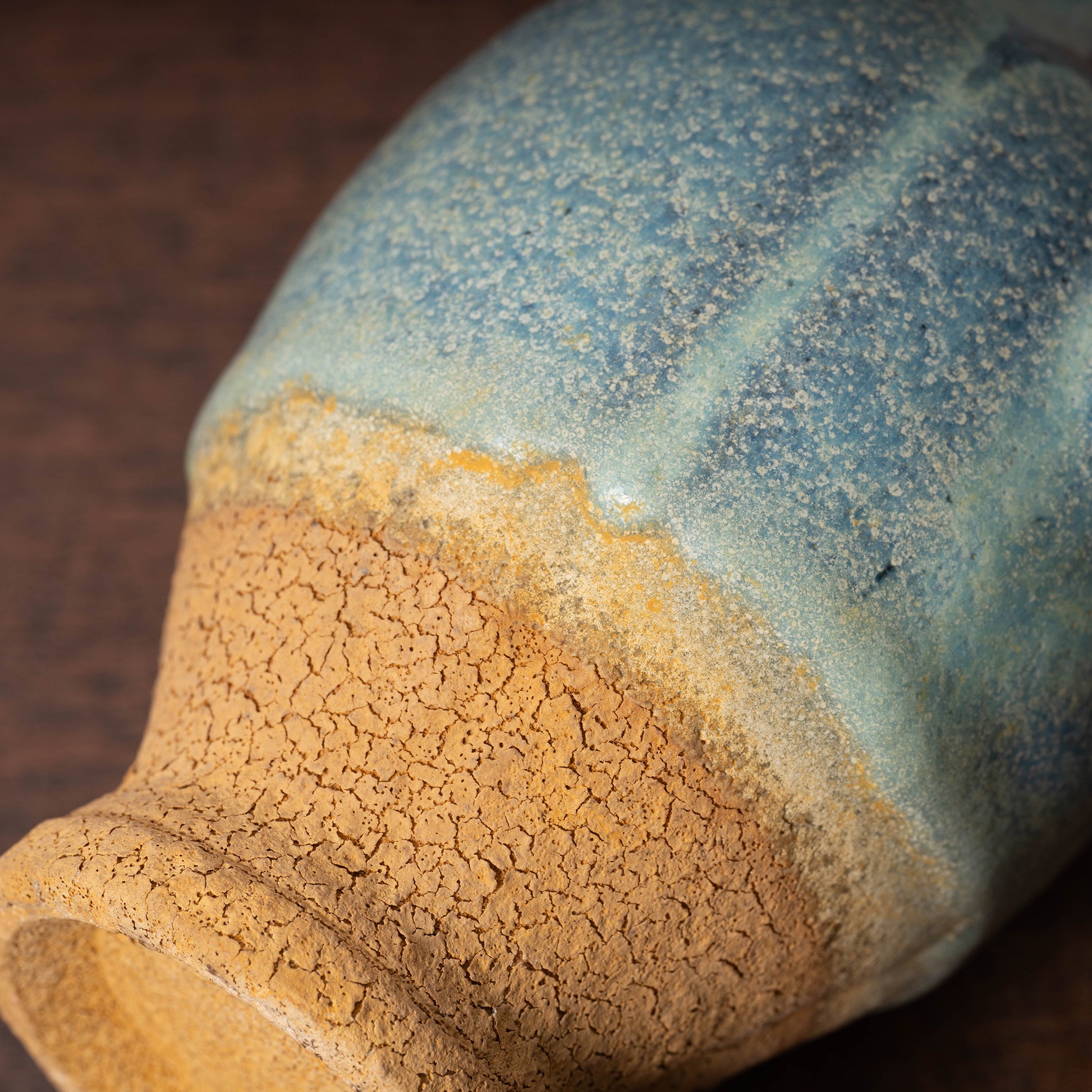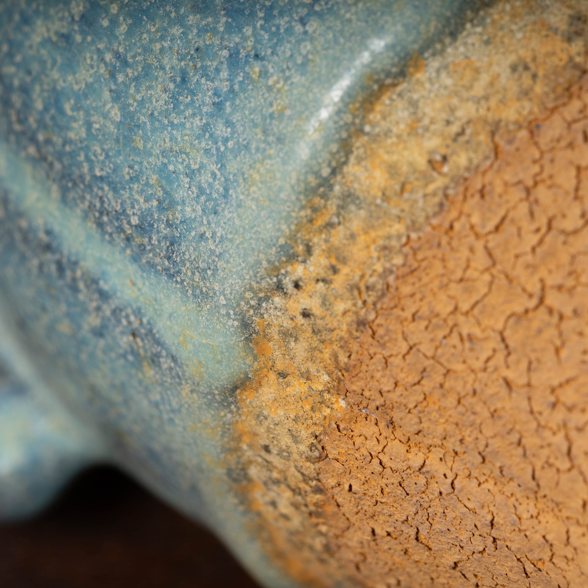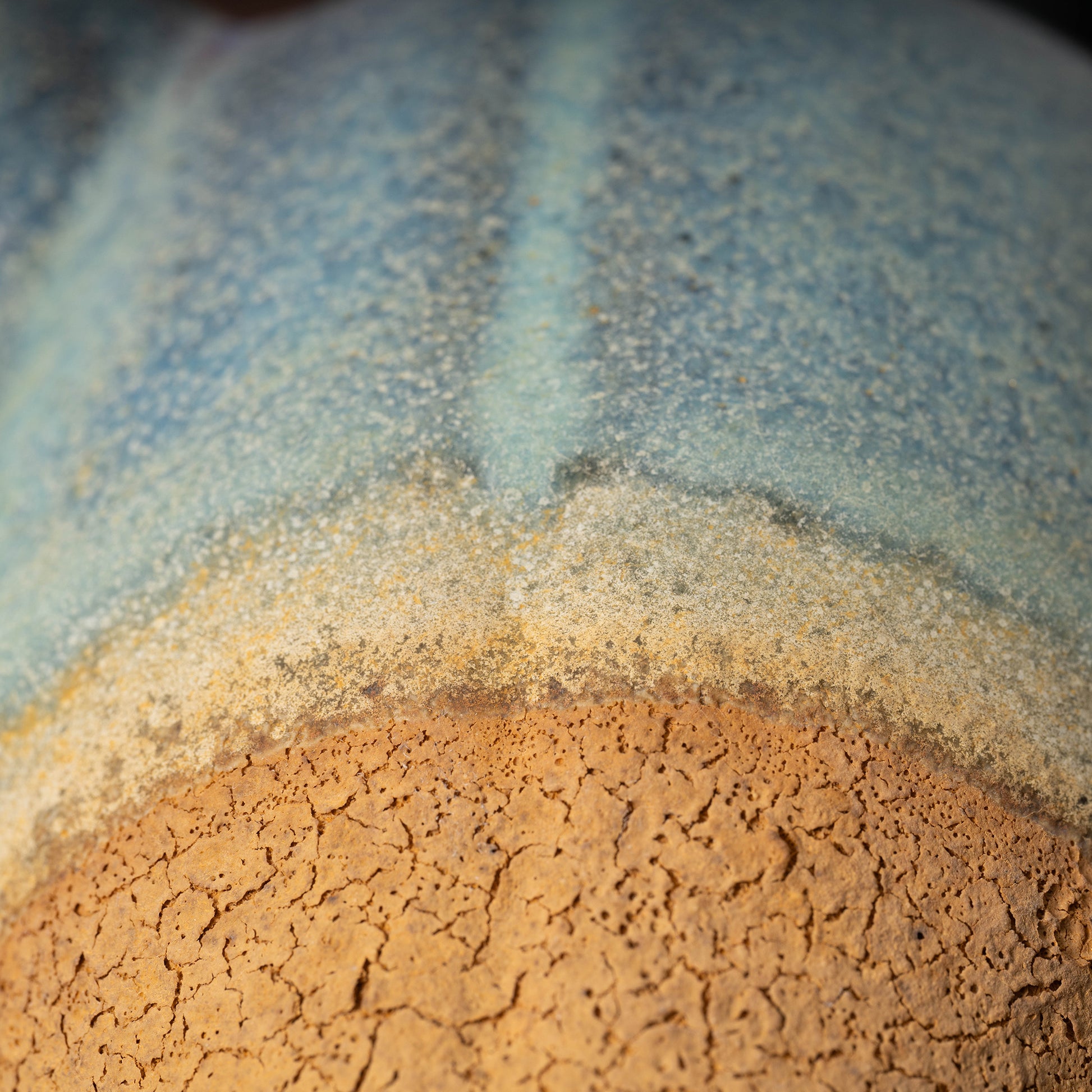 それに加え温度の少しの違いで、箇所により微妙な色の変化が生じ、青釉に多彩な表情が生まれます。