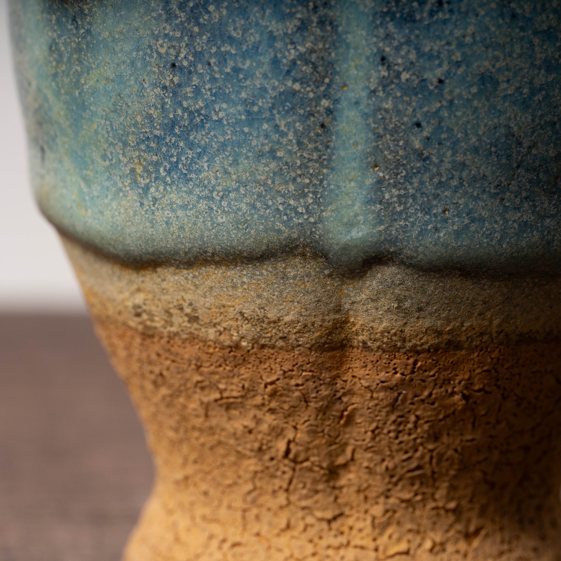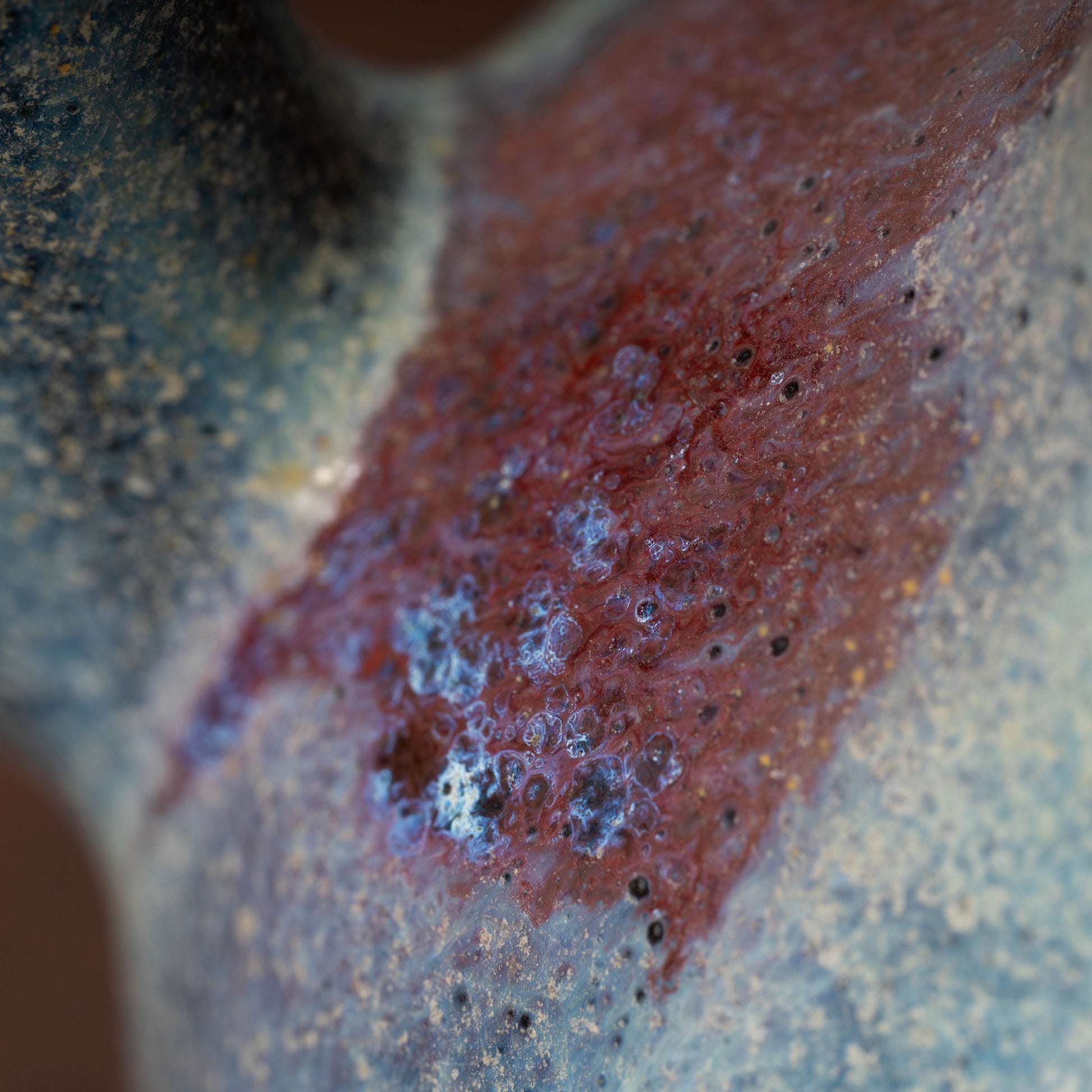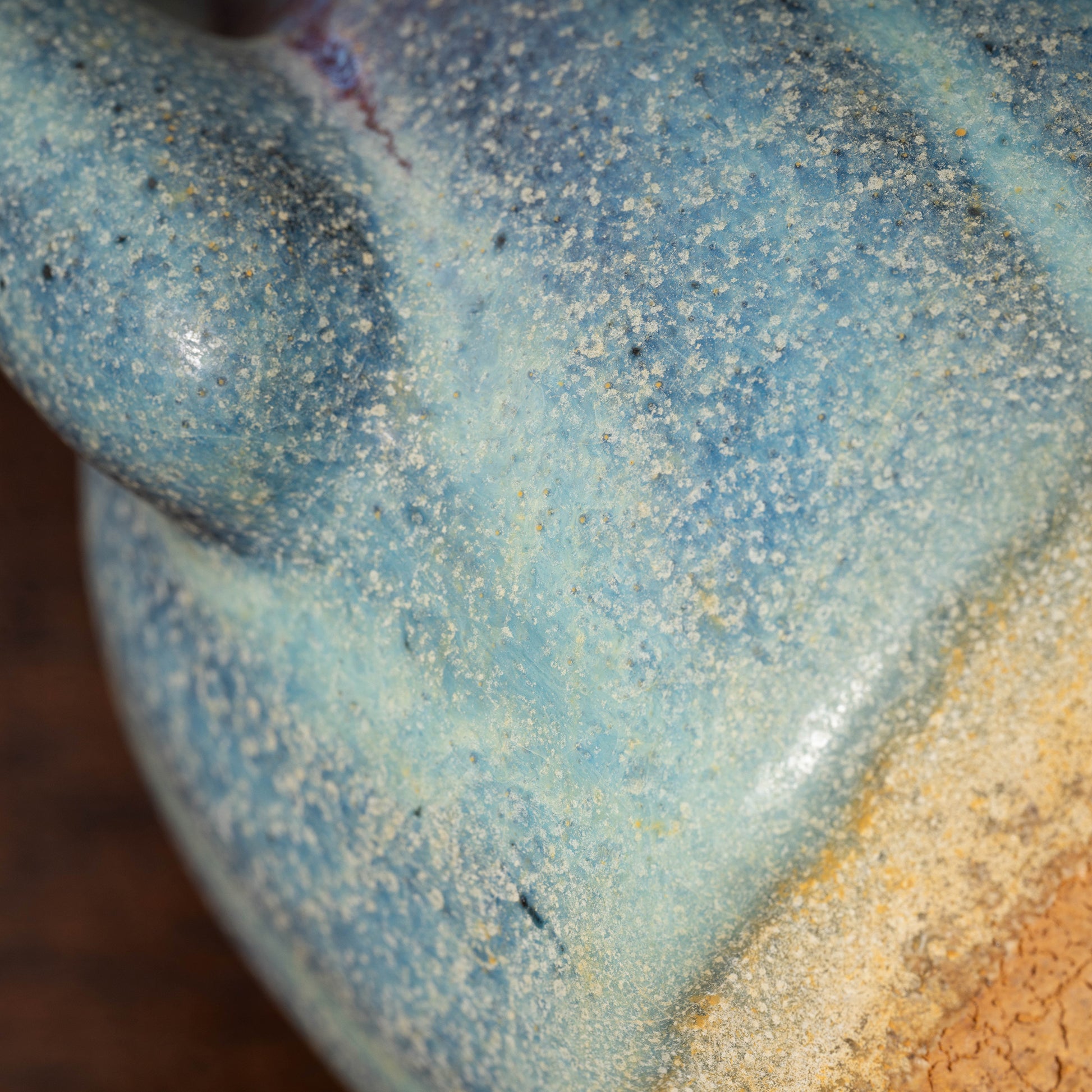 それに加え温度の少しの違いで、箇所により微妙な色の変化が生じ、青釉に多彩な表情が生まれます。