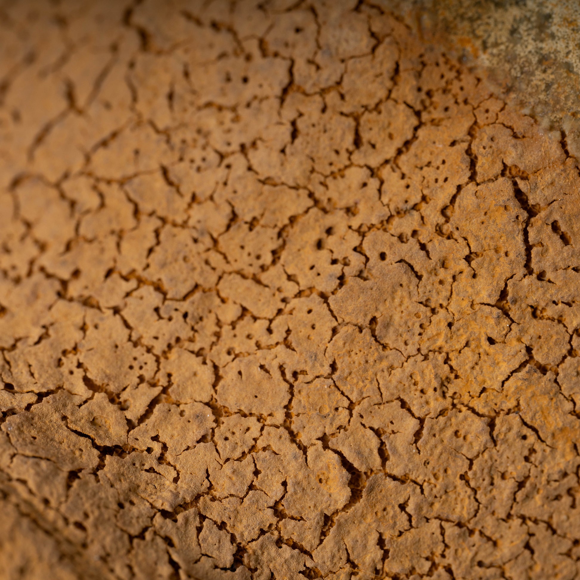 土はよく乾き、表面は収縮したことによるひび割れがあり、とておも味わい深い質感です。